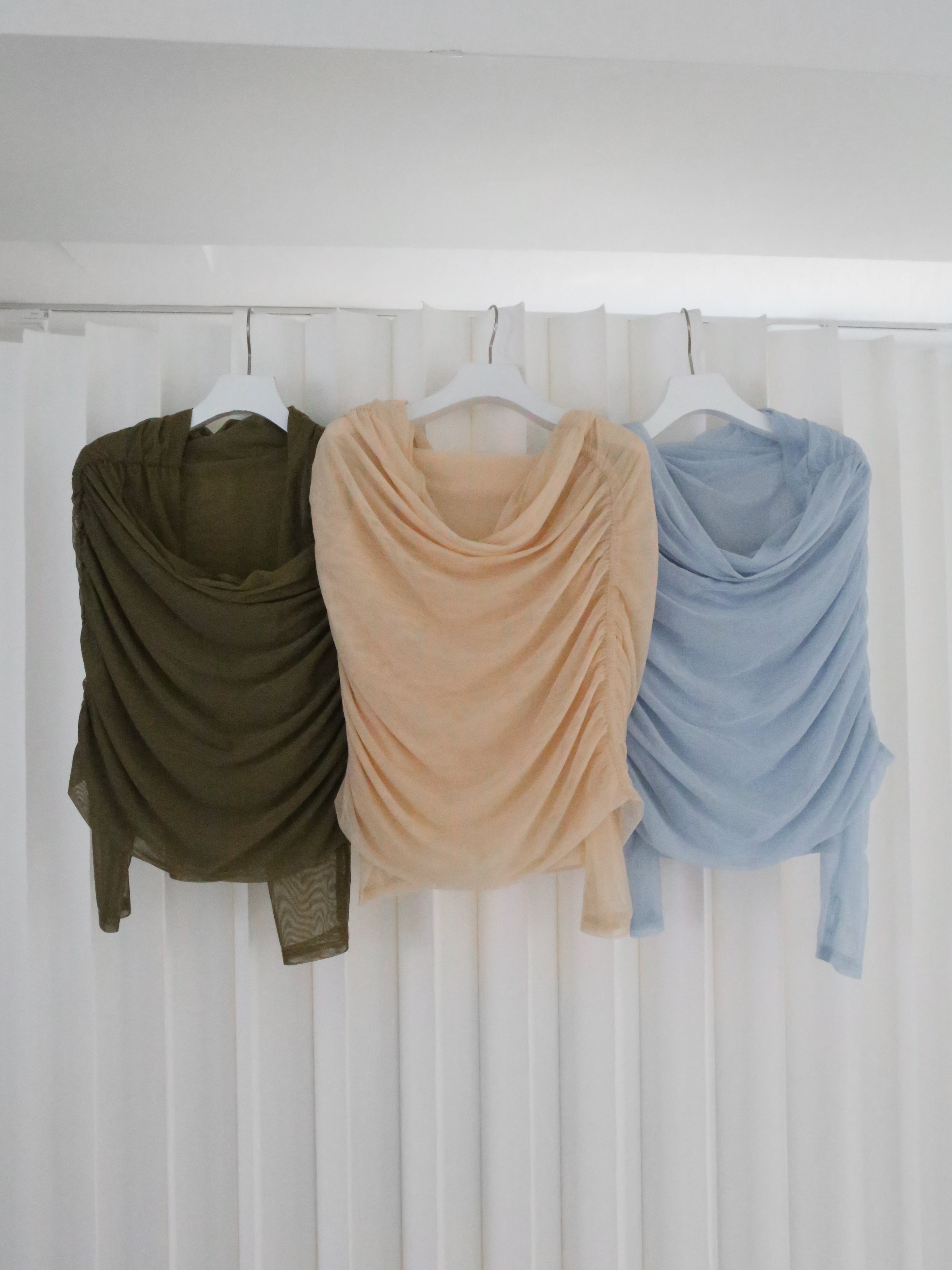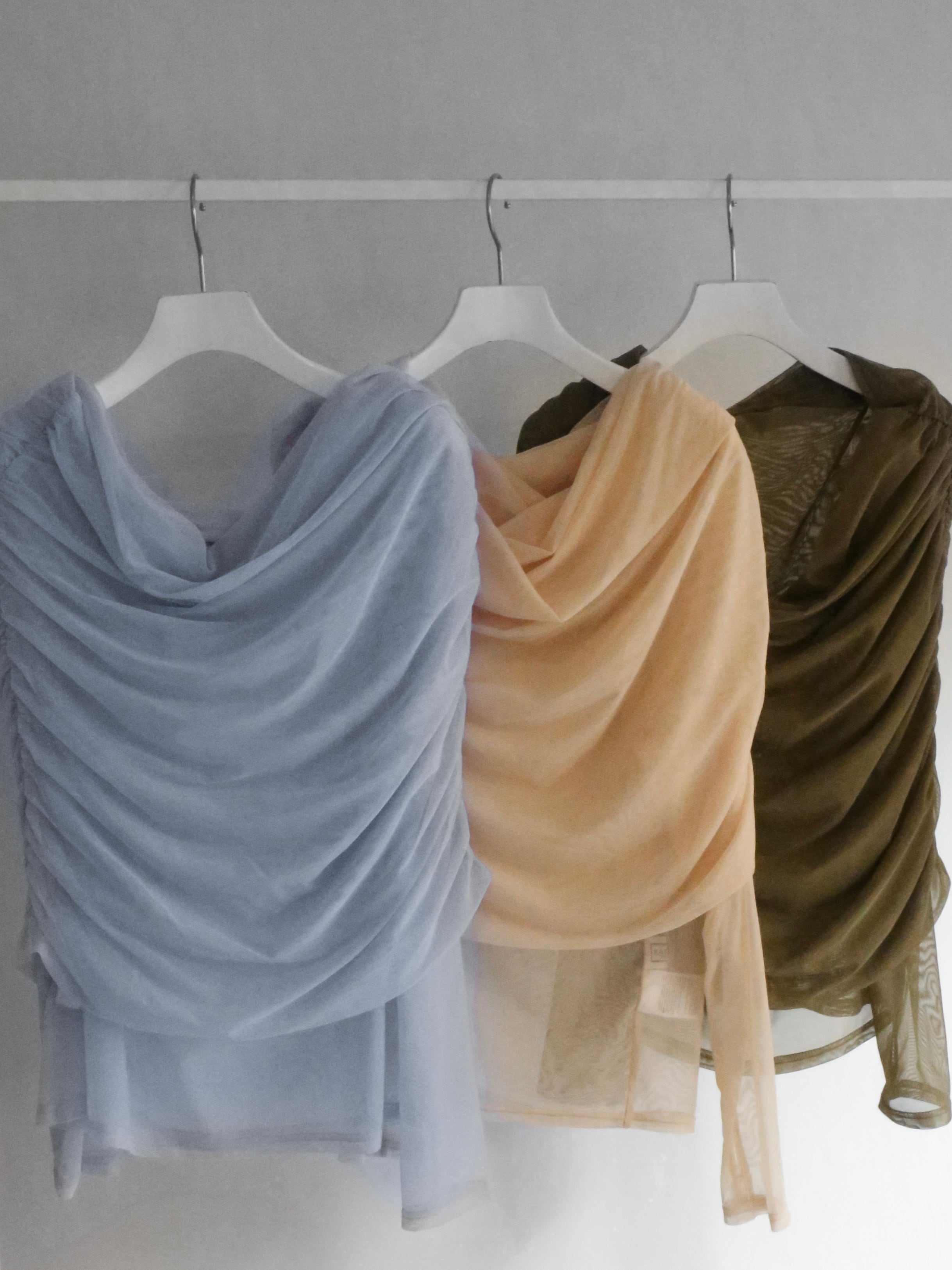 ・blue:春を感じるような明るいペールトーンで、1番シアーの素材とマッチしているカラー。大人のカラーコーデが楽しめます。