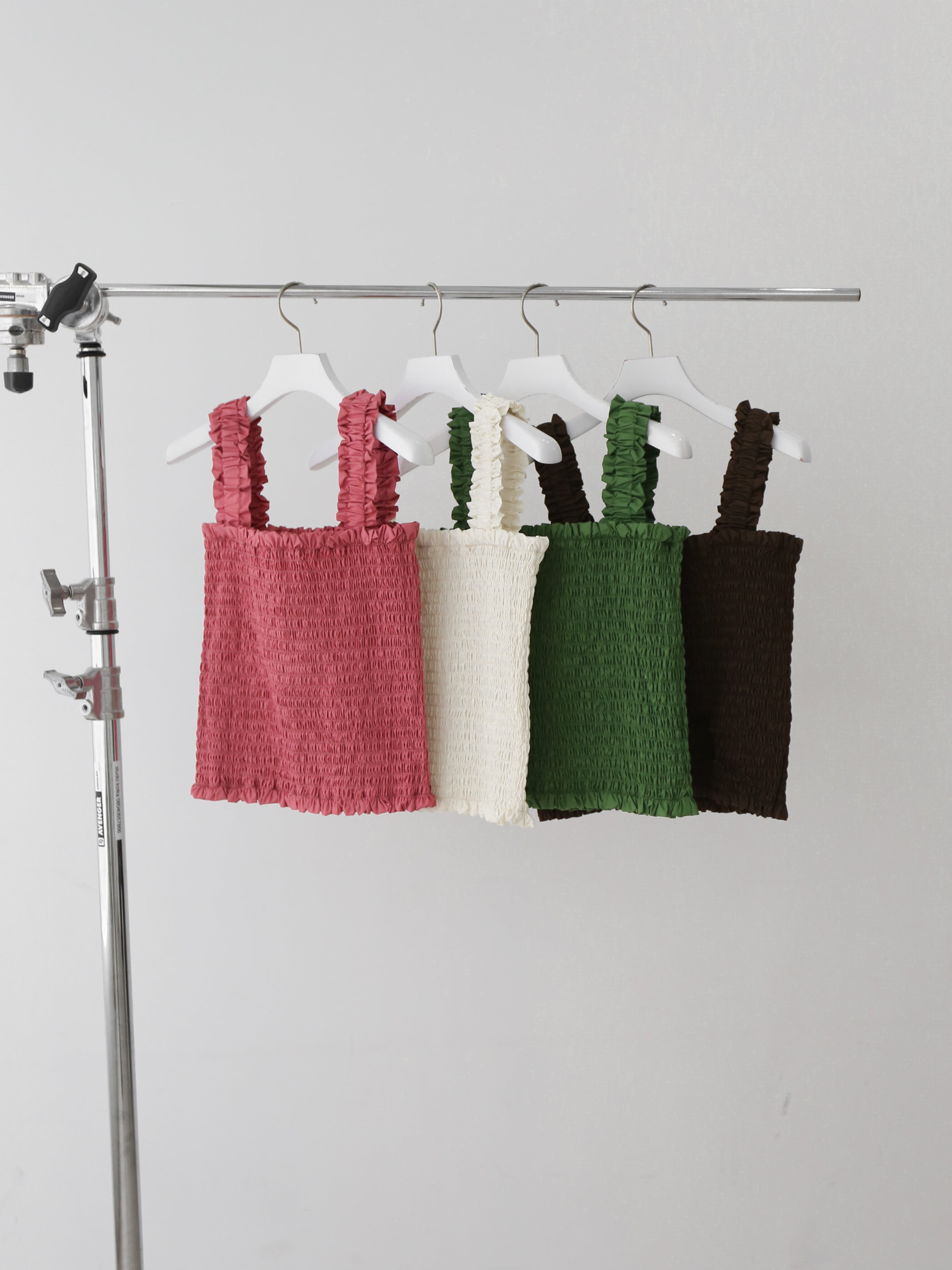 ・white:王道にして万能。夏の白トップスは定番だけど、シャーリングが入ることでグッと新鮮な表情に。シンプル派の方にぜひ手に取ってほしい一着。