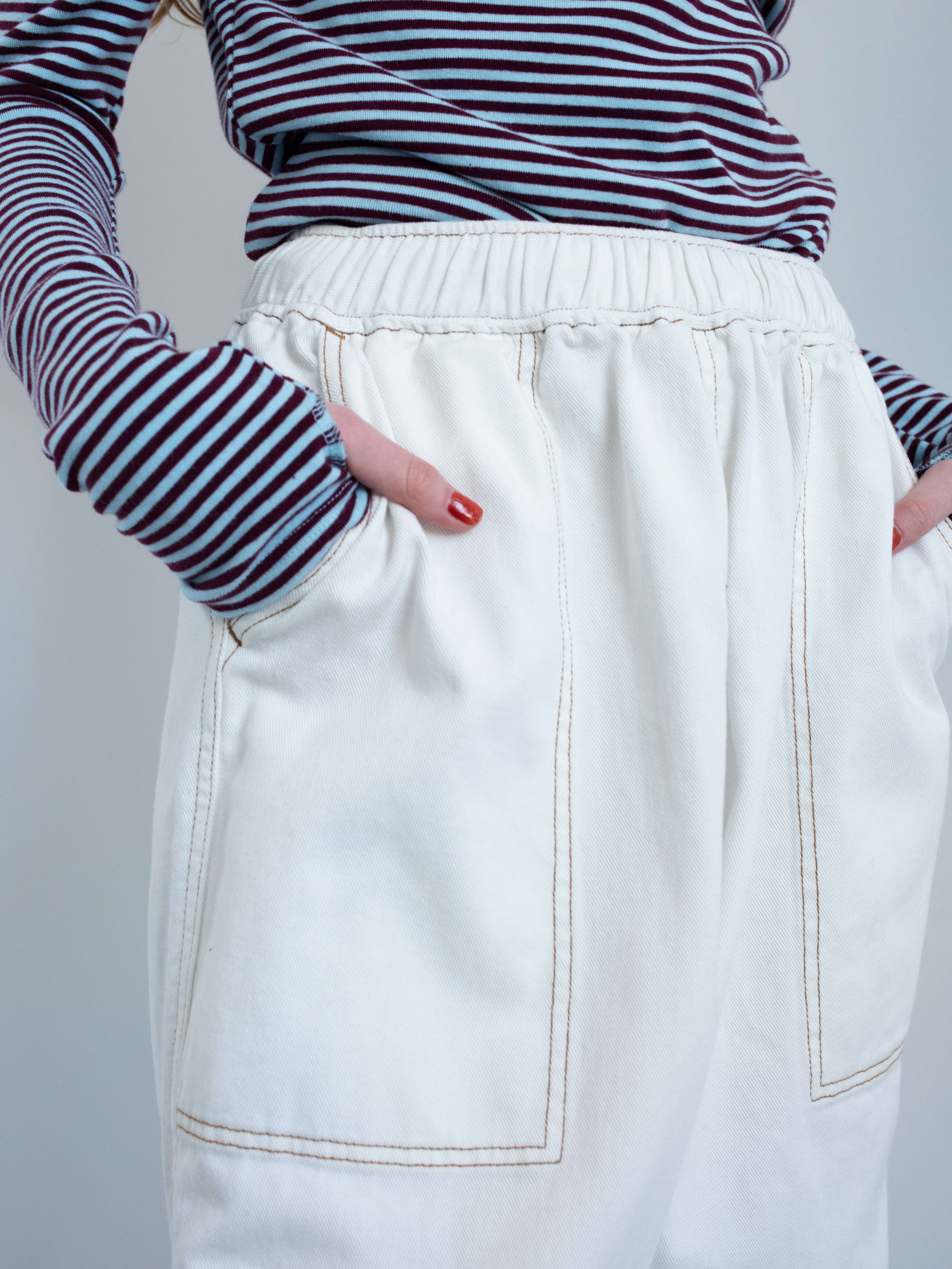 ルーズでゆとりあるジョガーパンツを春の始まりだけでなく、これからもずっと使えるデニムで作りました