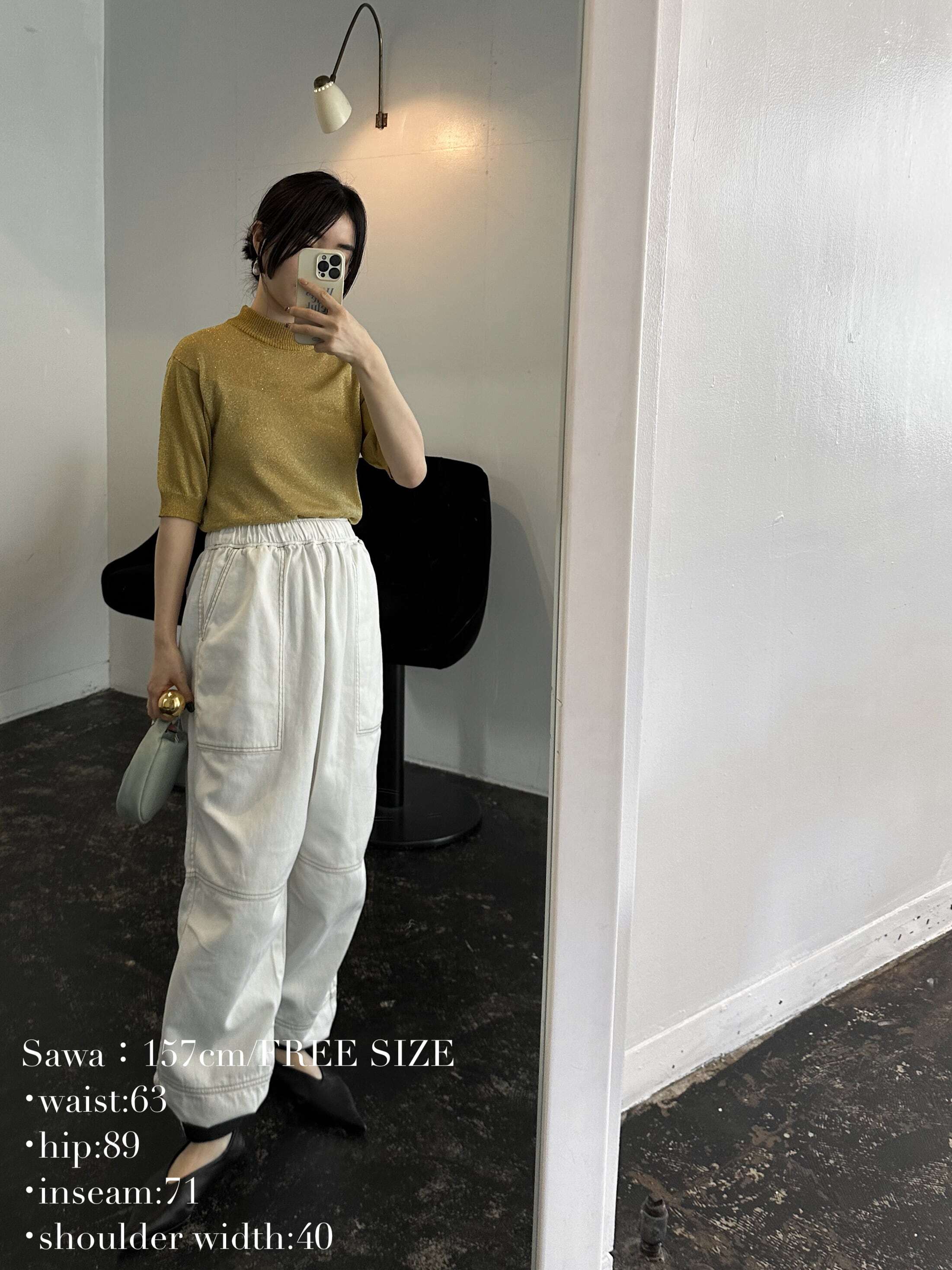 ・white:綺麗目なスタイリングが好きな方におすすめしたいのがwhite。ついついコンサバにまとまりすぎてしまうホワイトのボトムスも、このシルエットとステッチデザインなら洒落た雰囲気に。