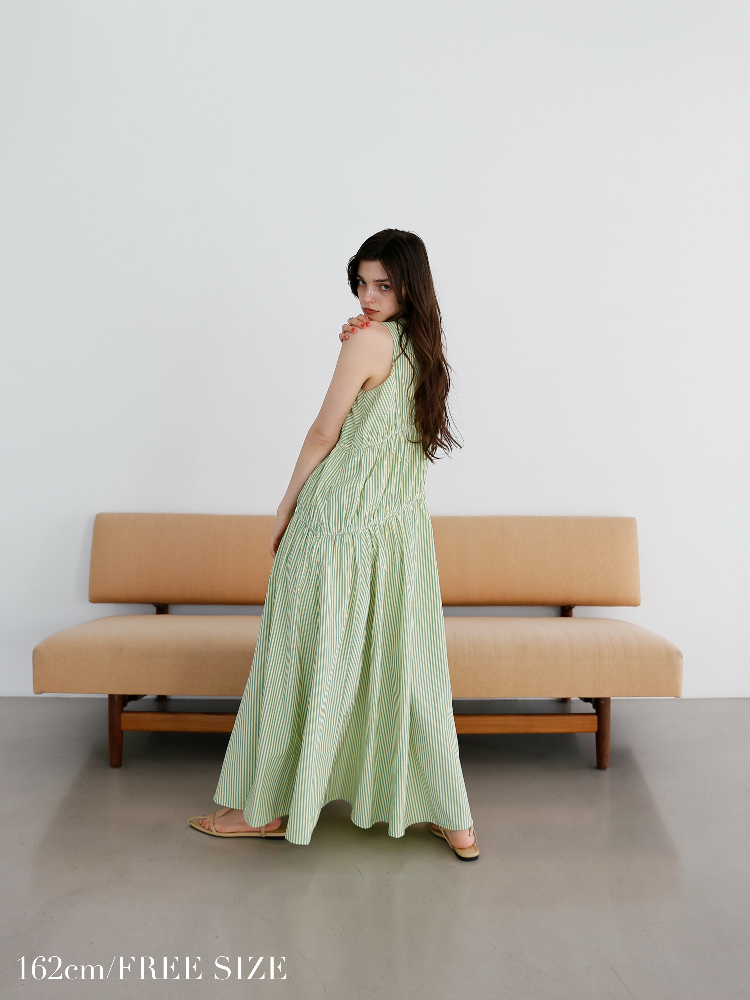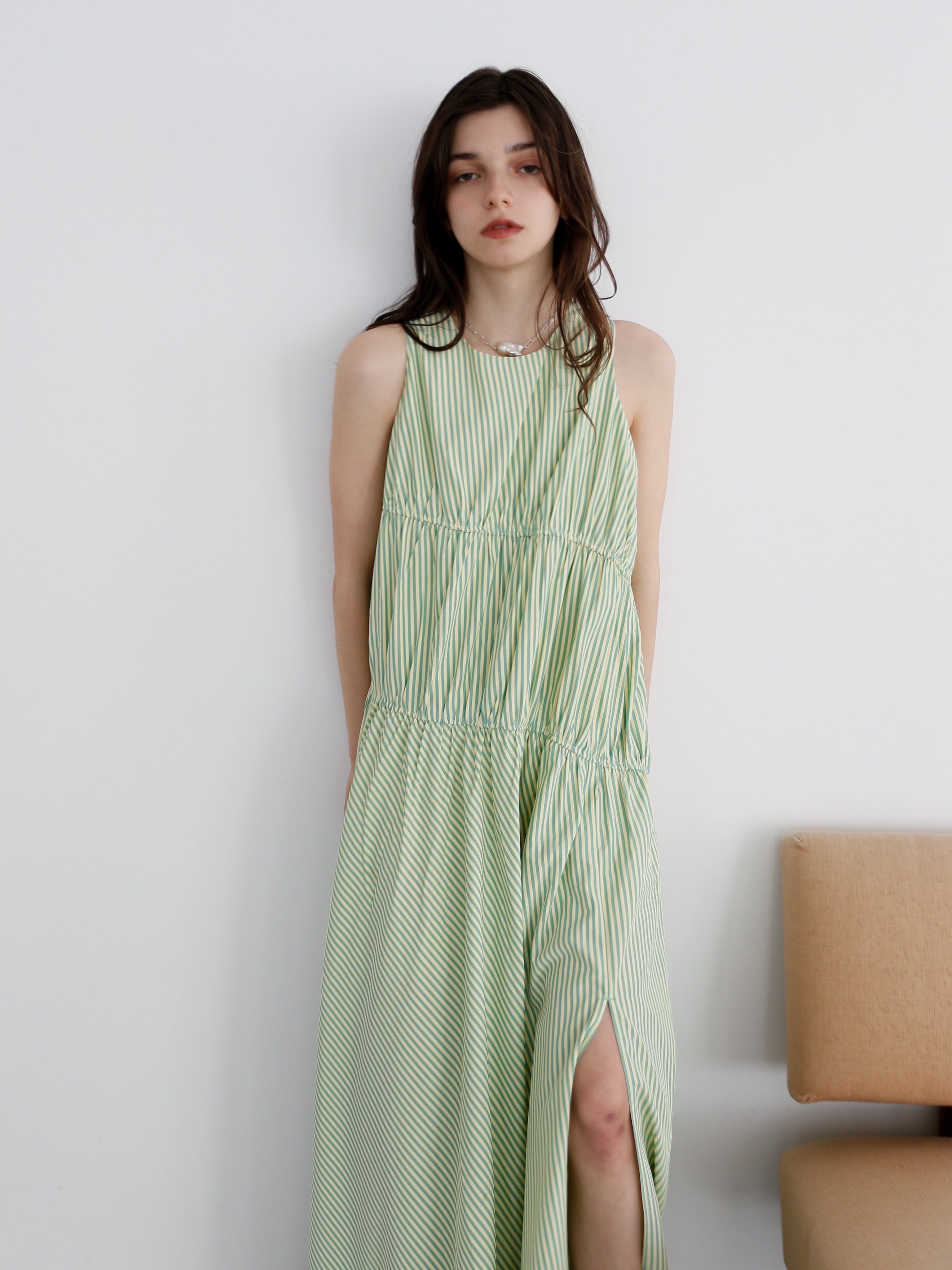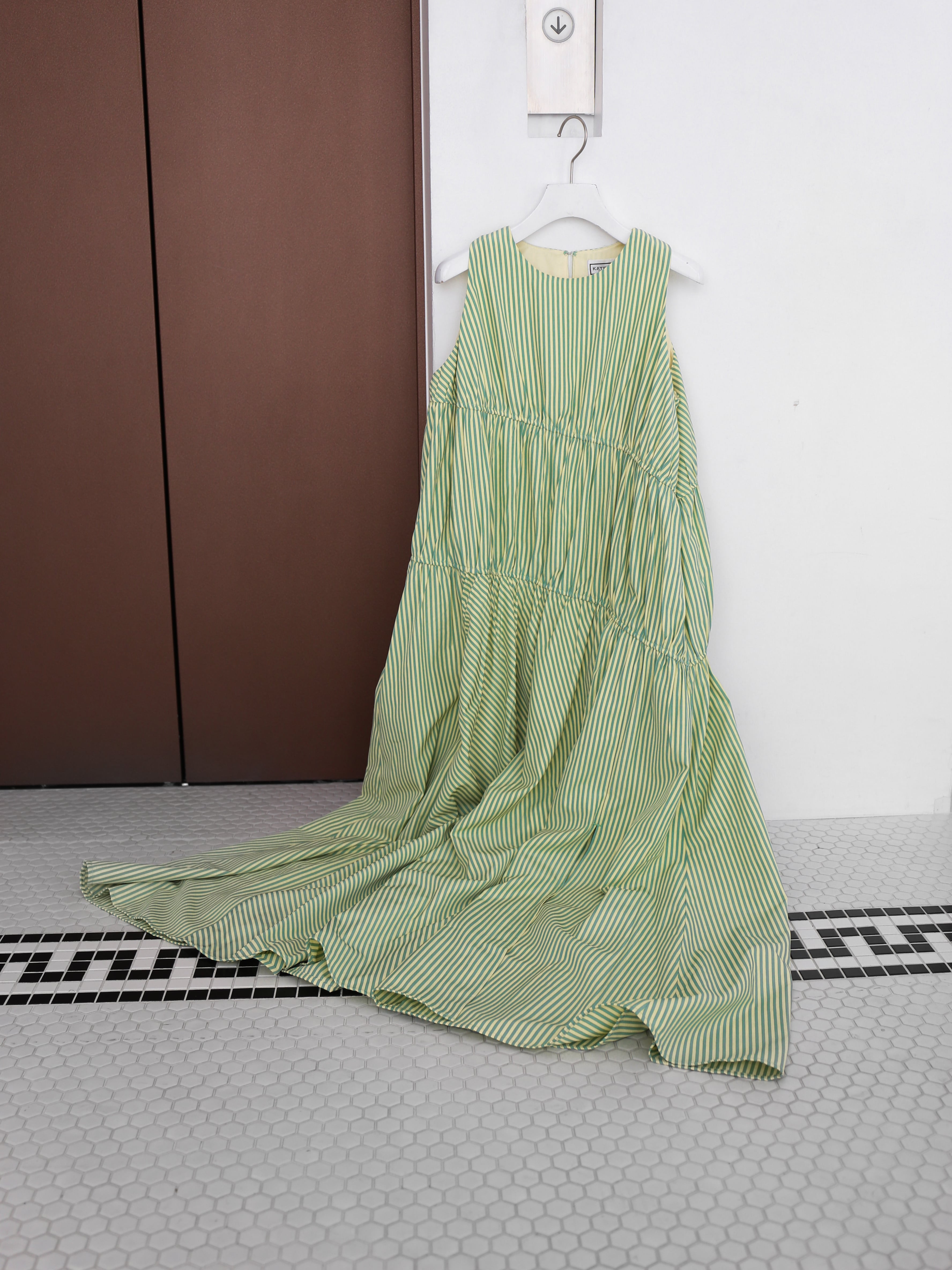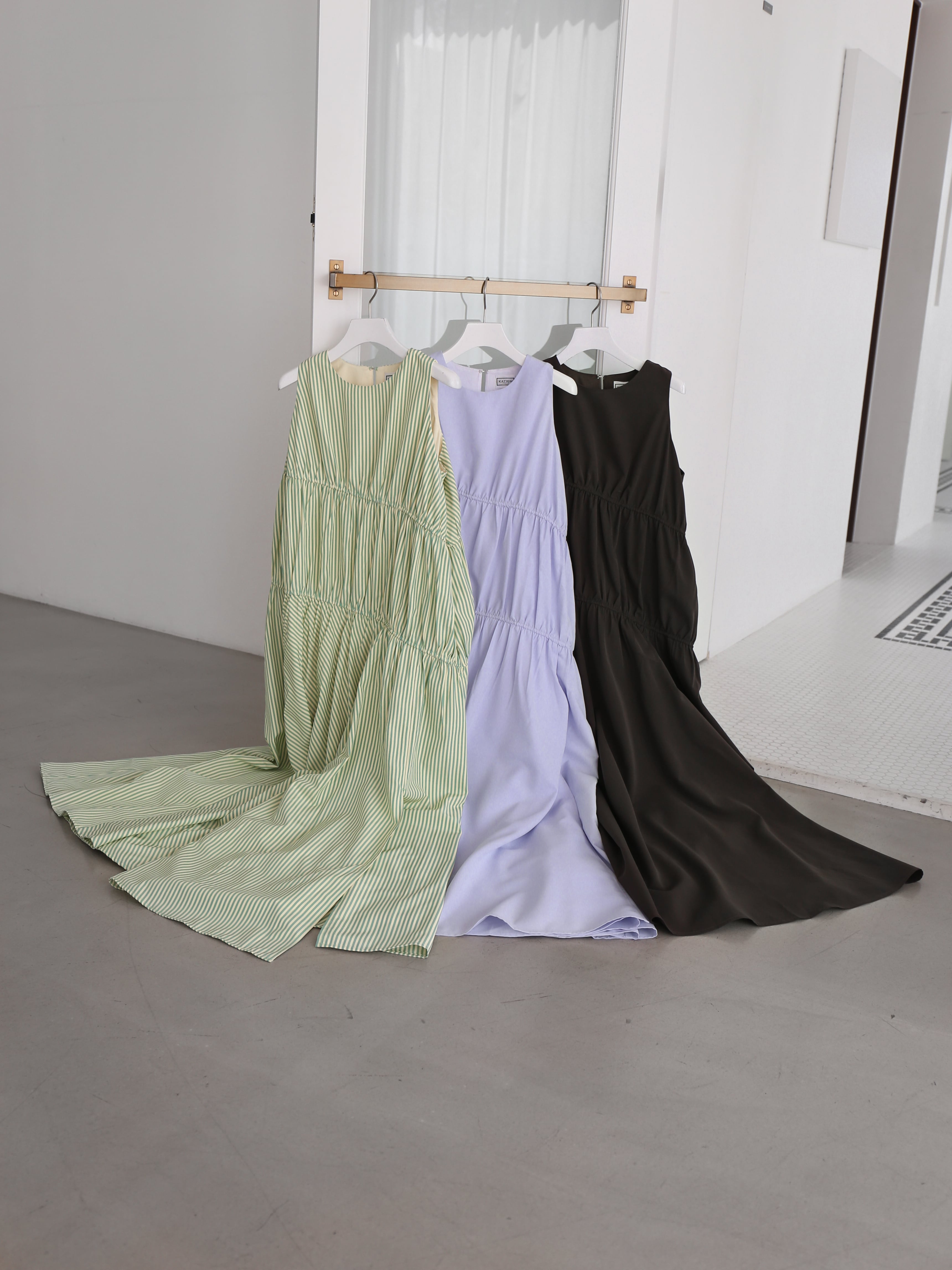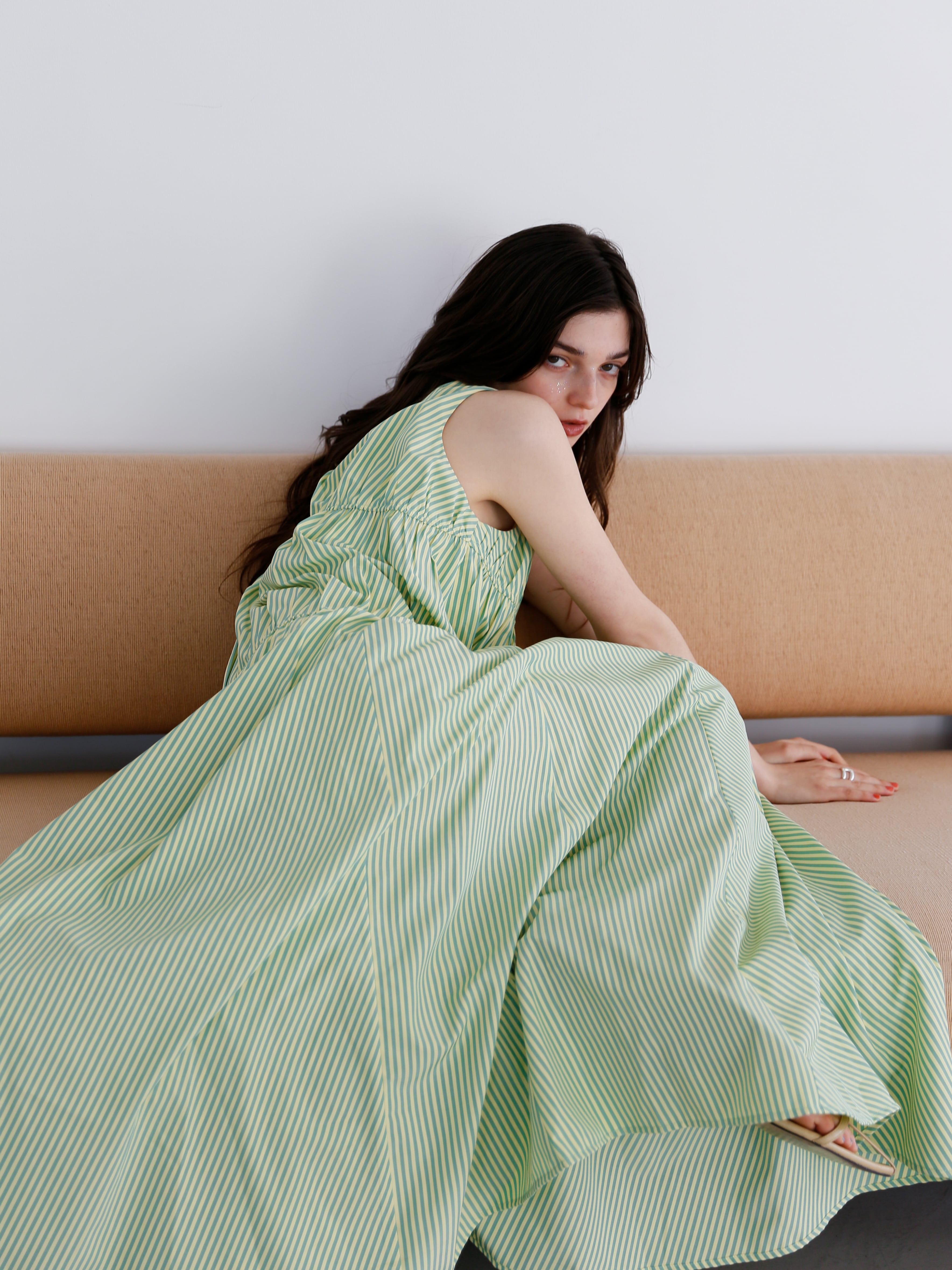 ・stripe:淡いレモンとグリーンのミックスストライプ。Katrin TOKYOらしい遊び心と、遠目には無地見えする繊細なバランスが魅力です。