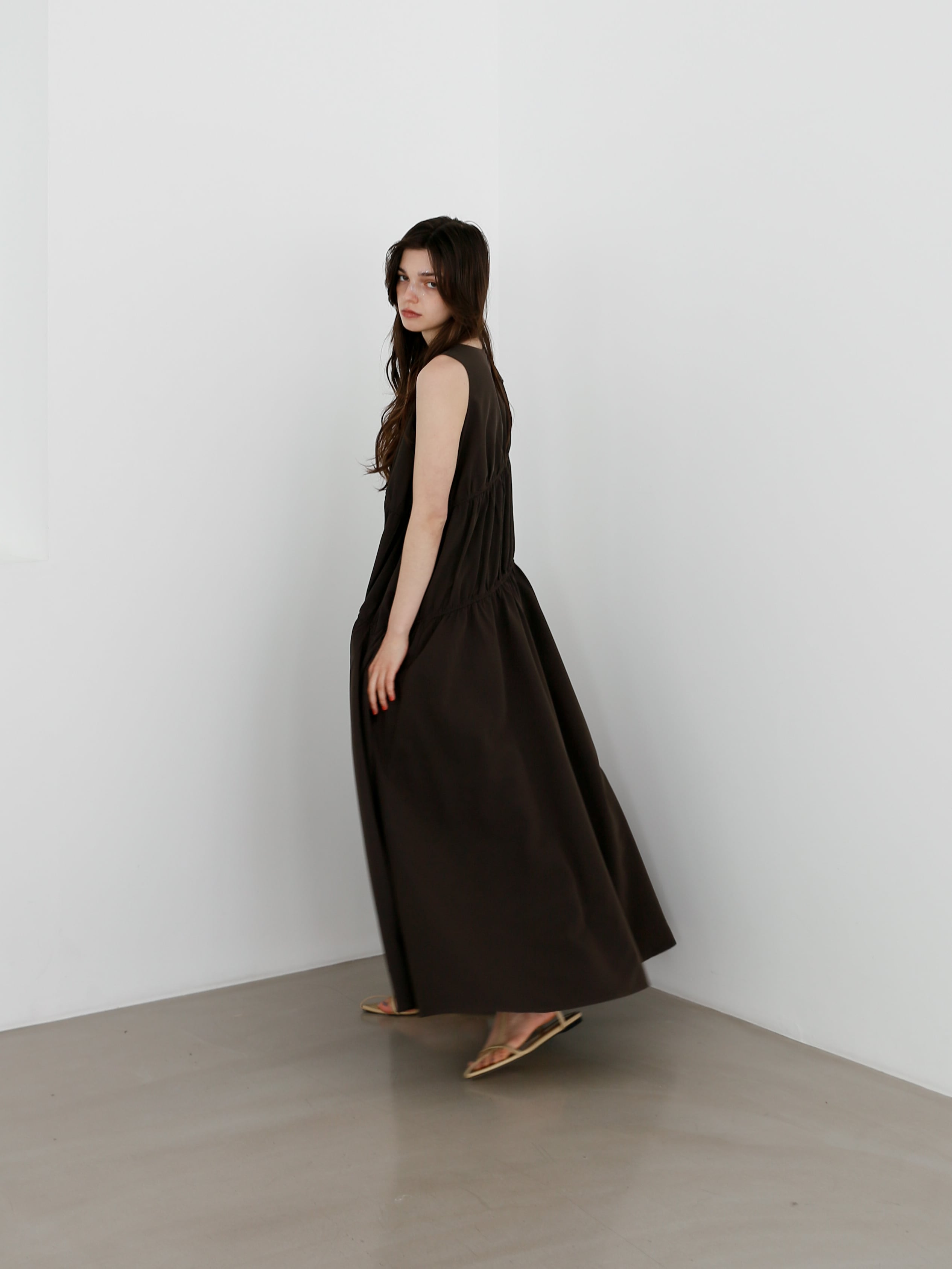 ギャザーを贅沢に寄せたティアードデザインが
