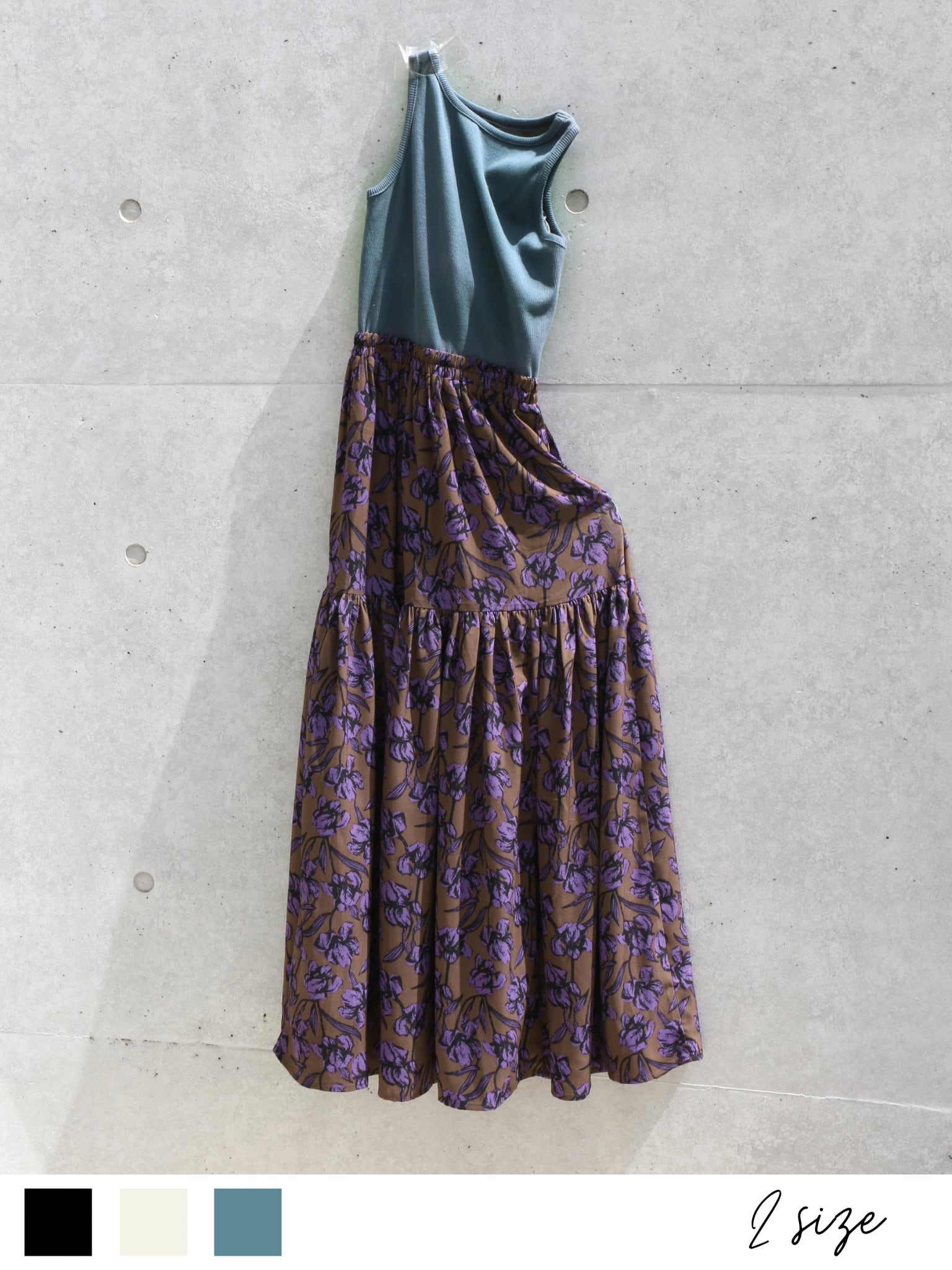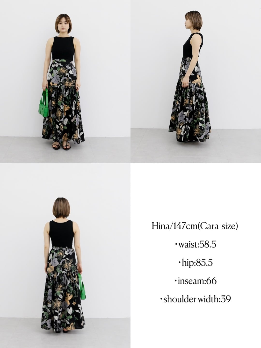 ・black:ブラックワントーンながらも大柄な花柄で地味さとは無縁の一着。大人っぽさもありながら程よくフレッシュなカラーが使われているので、カラーバッグなどとの色合わせもしやすいのが魅力
