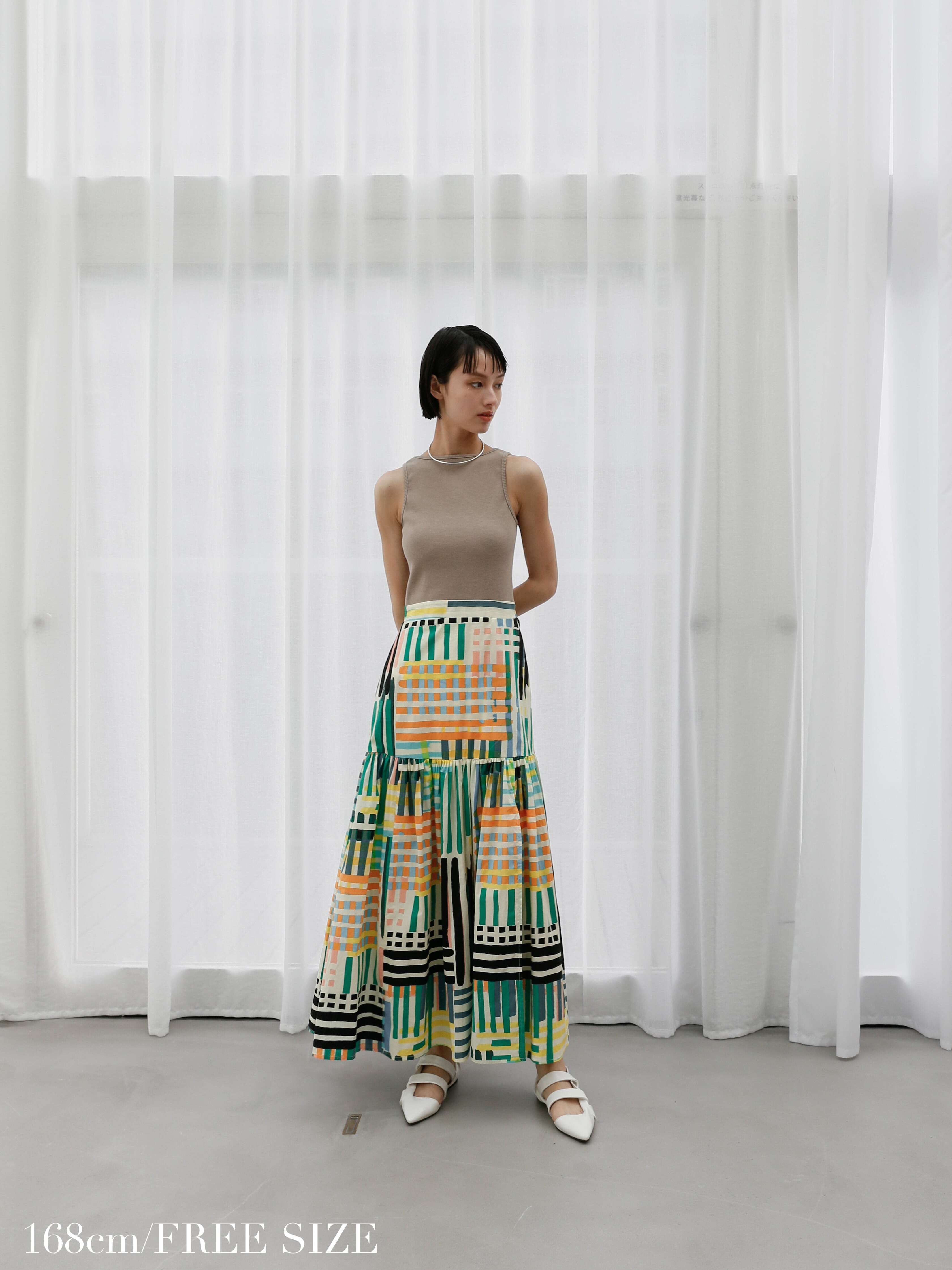 ・greige:greigeは大きめなカラフルチェックが夏らしい。トップス部分は落ち着いたgreigeなので、チェックも大人っぽく着られます。