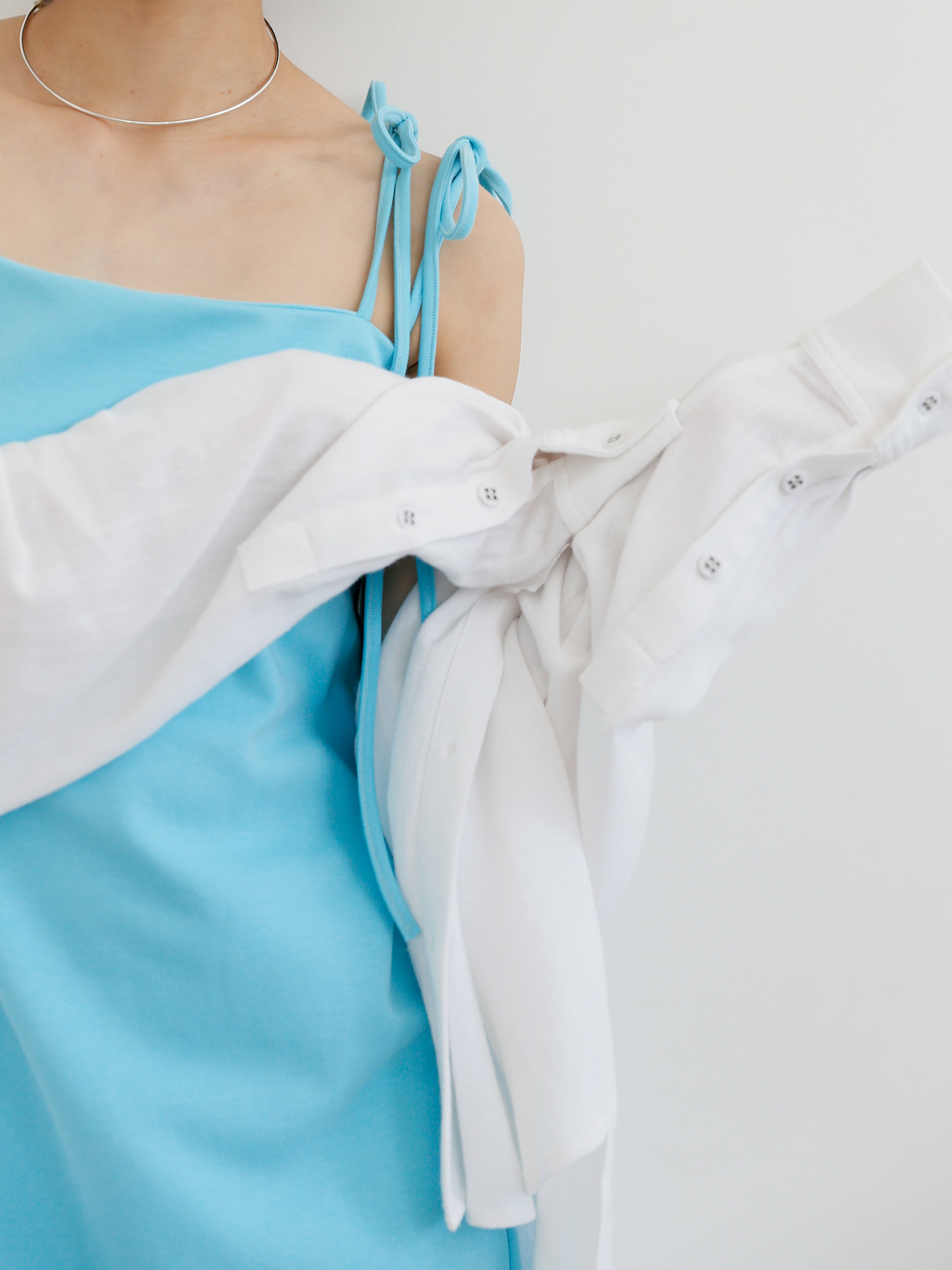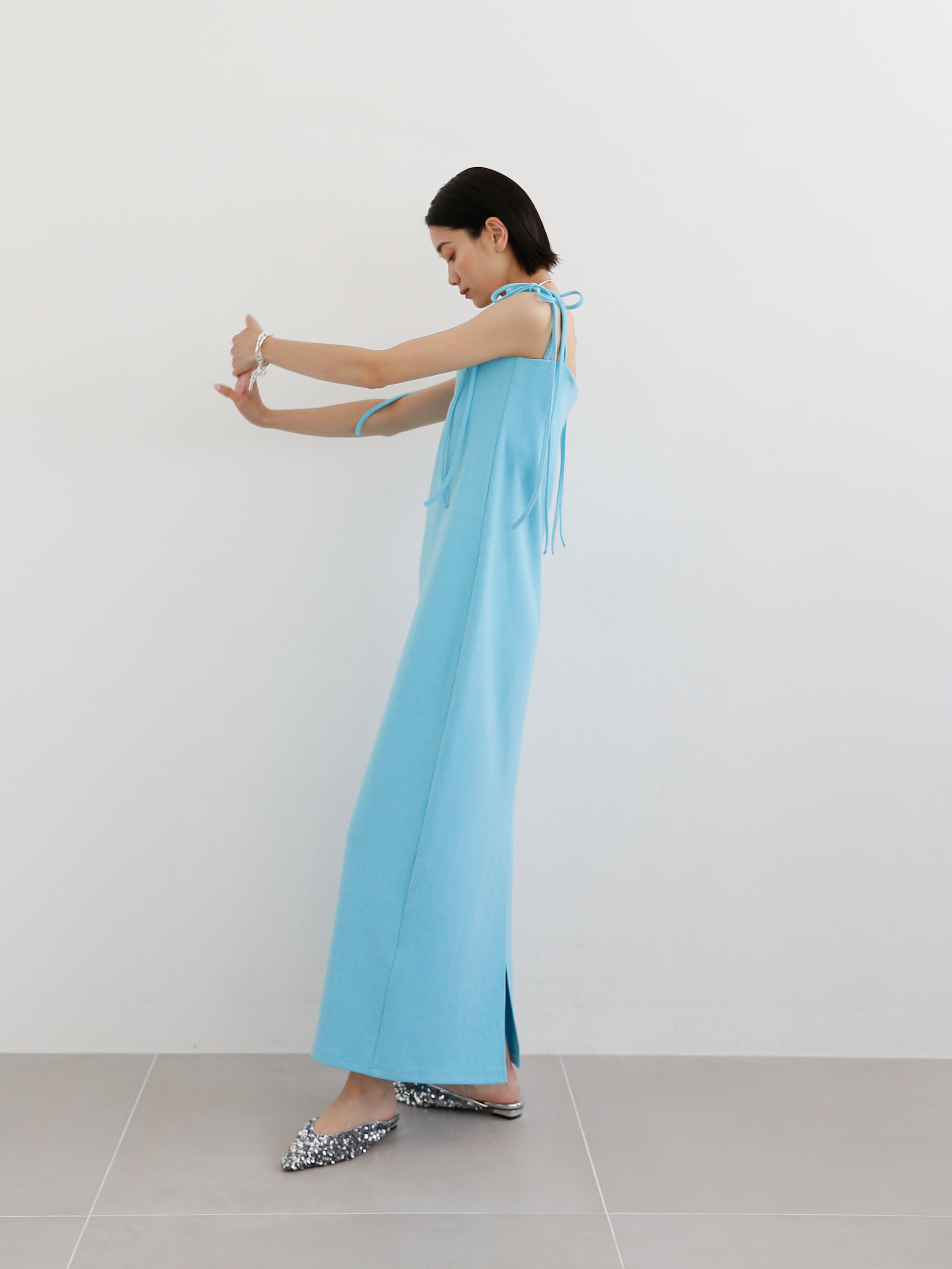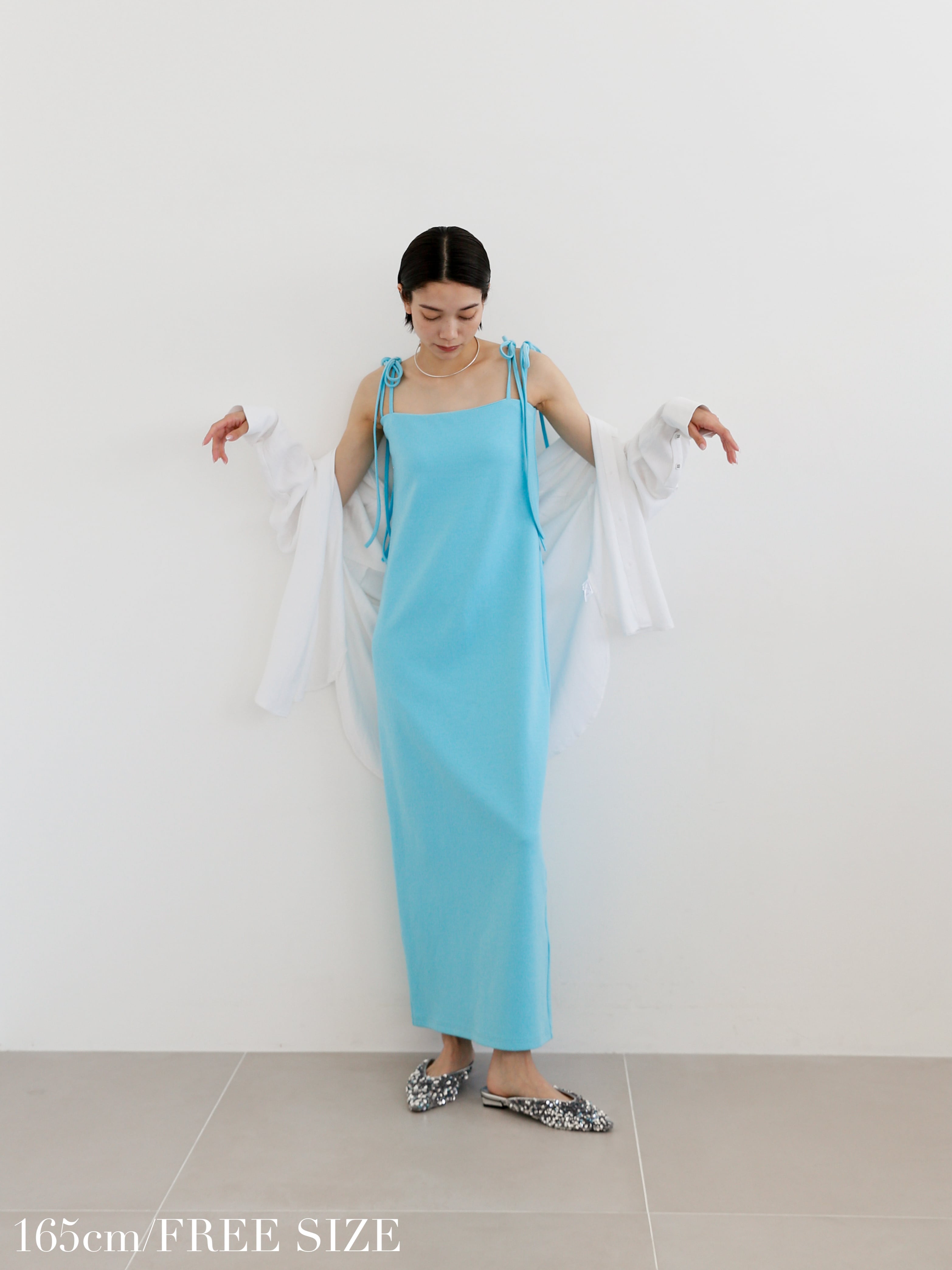 肩のWストラップは長めに仕上げ、連なるリボンが夏にぴったり