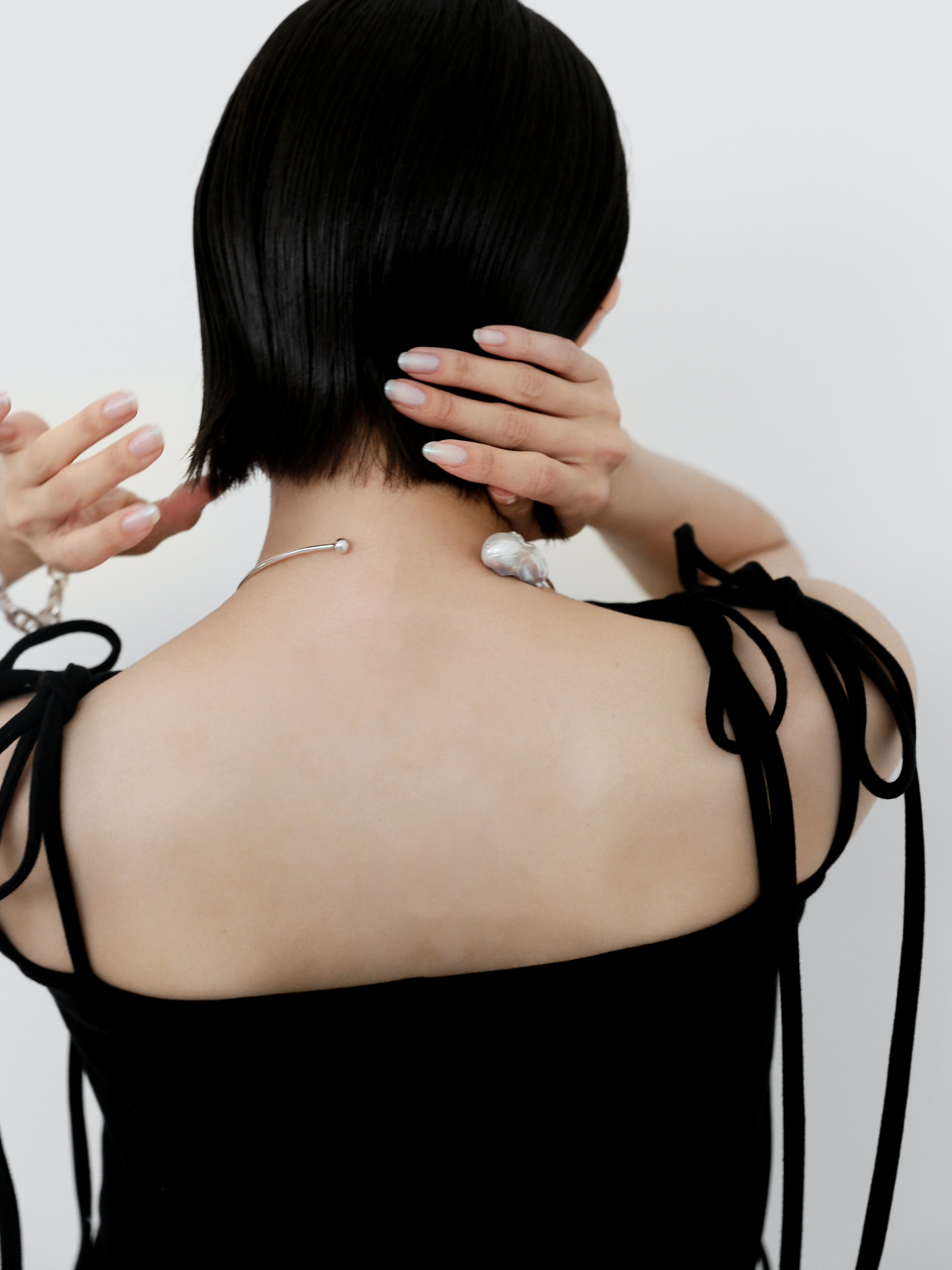 ・black:3色の中で1番大人っぽく着られるのがこちらのカラー。ブラックなのに肩紐がリボンというギャップが可愛いです。