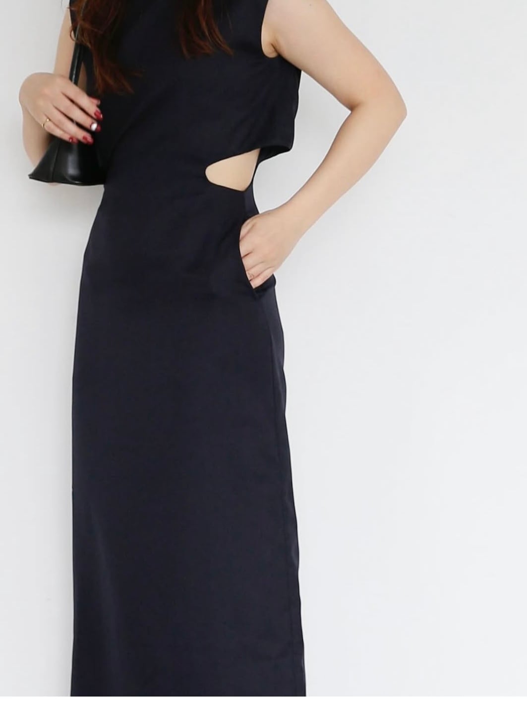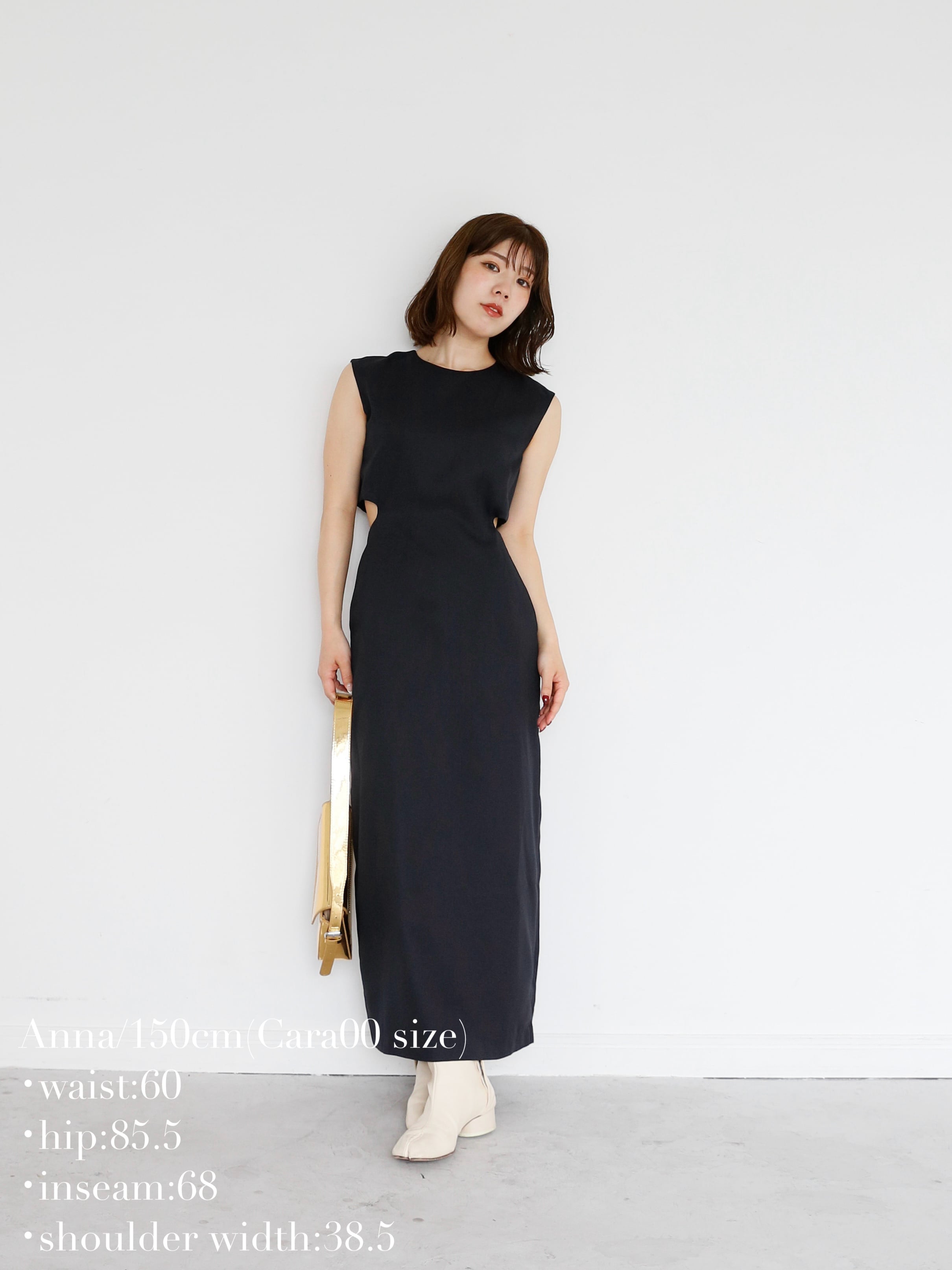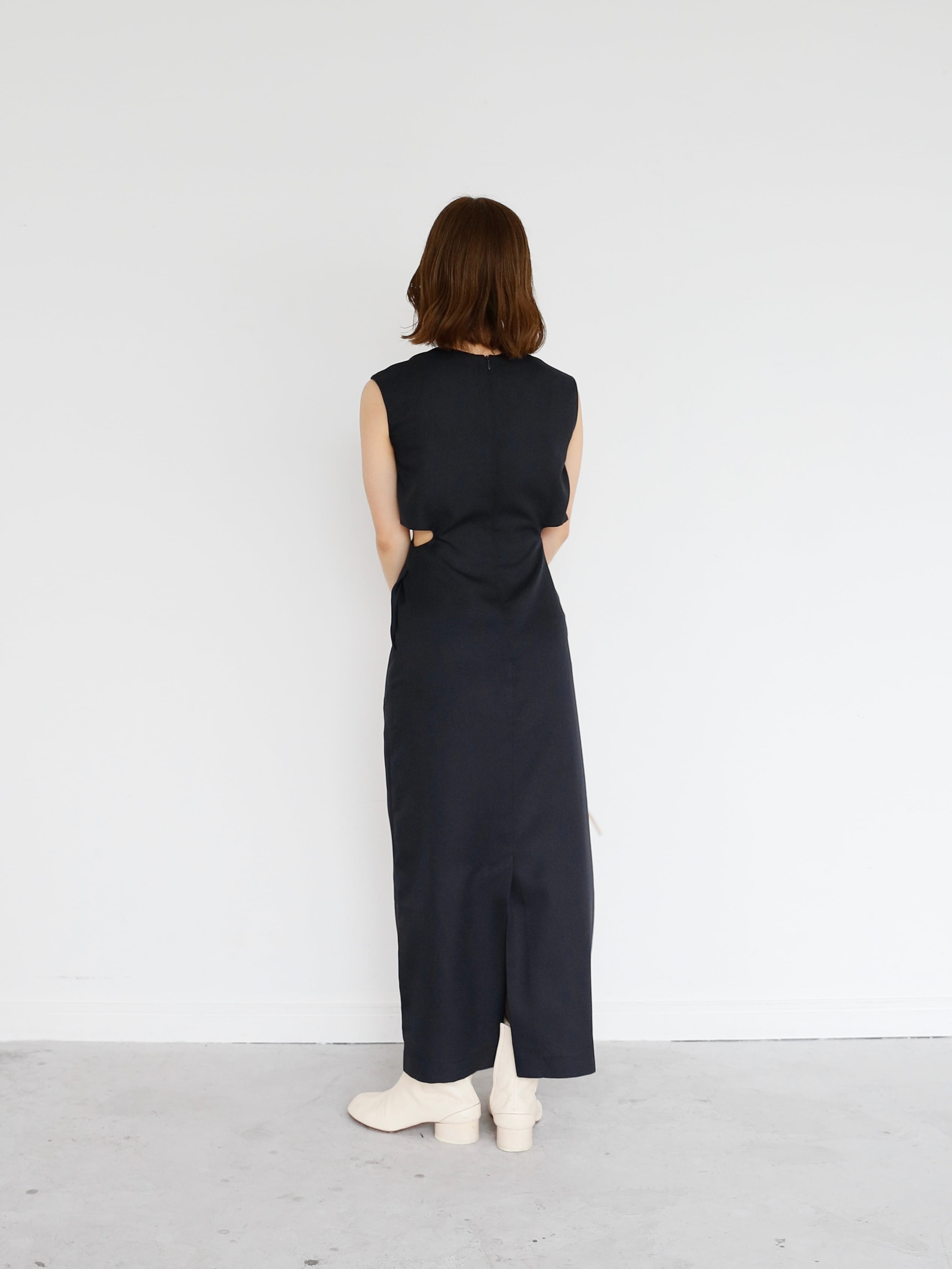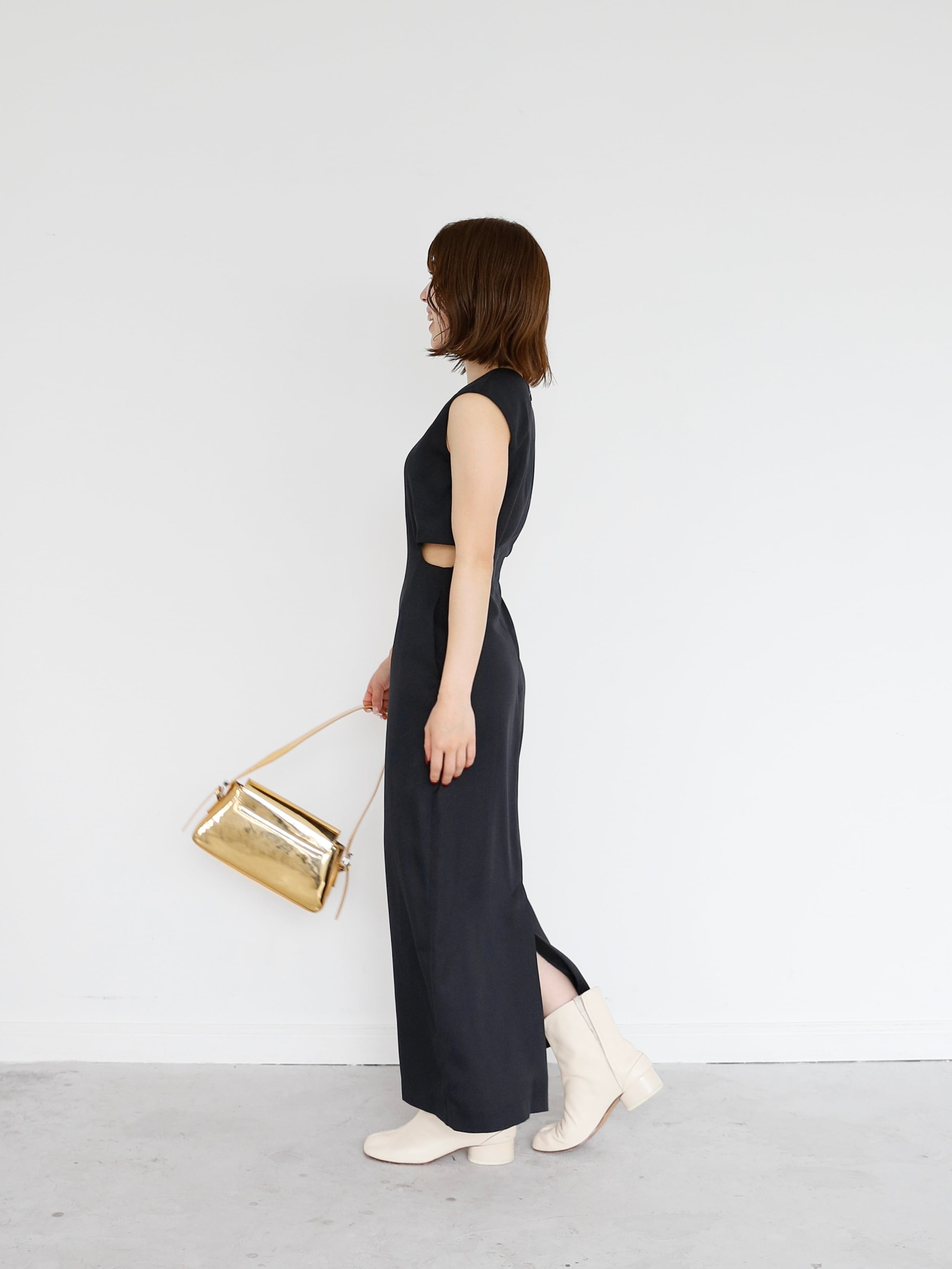 ・navy:深みのある濃紺で、フォーマルにも対応できる上品さ。落ち着いたカラーながら、カットアウトのデザインが映えるため地味にならず、大人の色気をさりげなく引き出します。