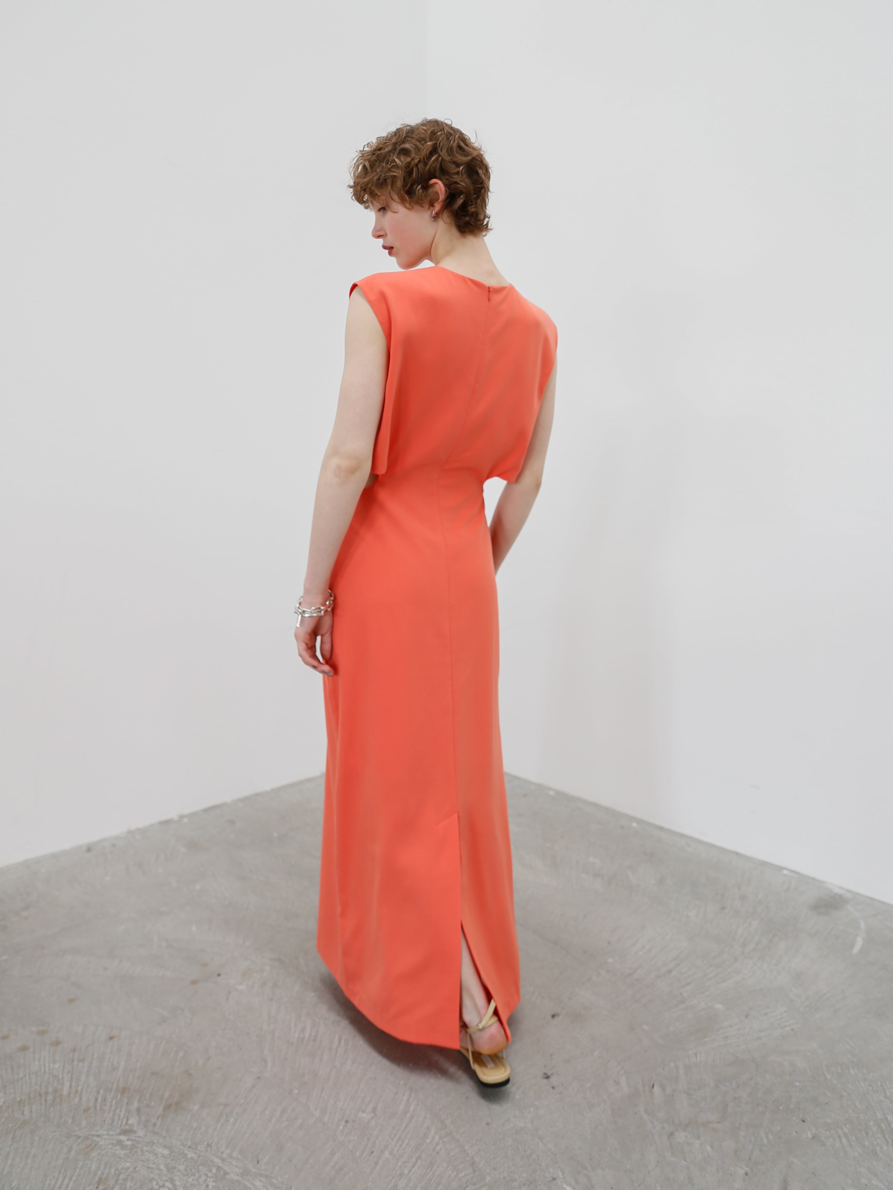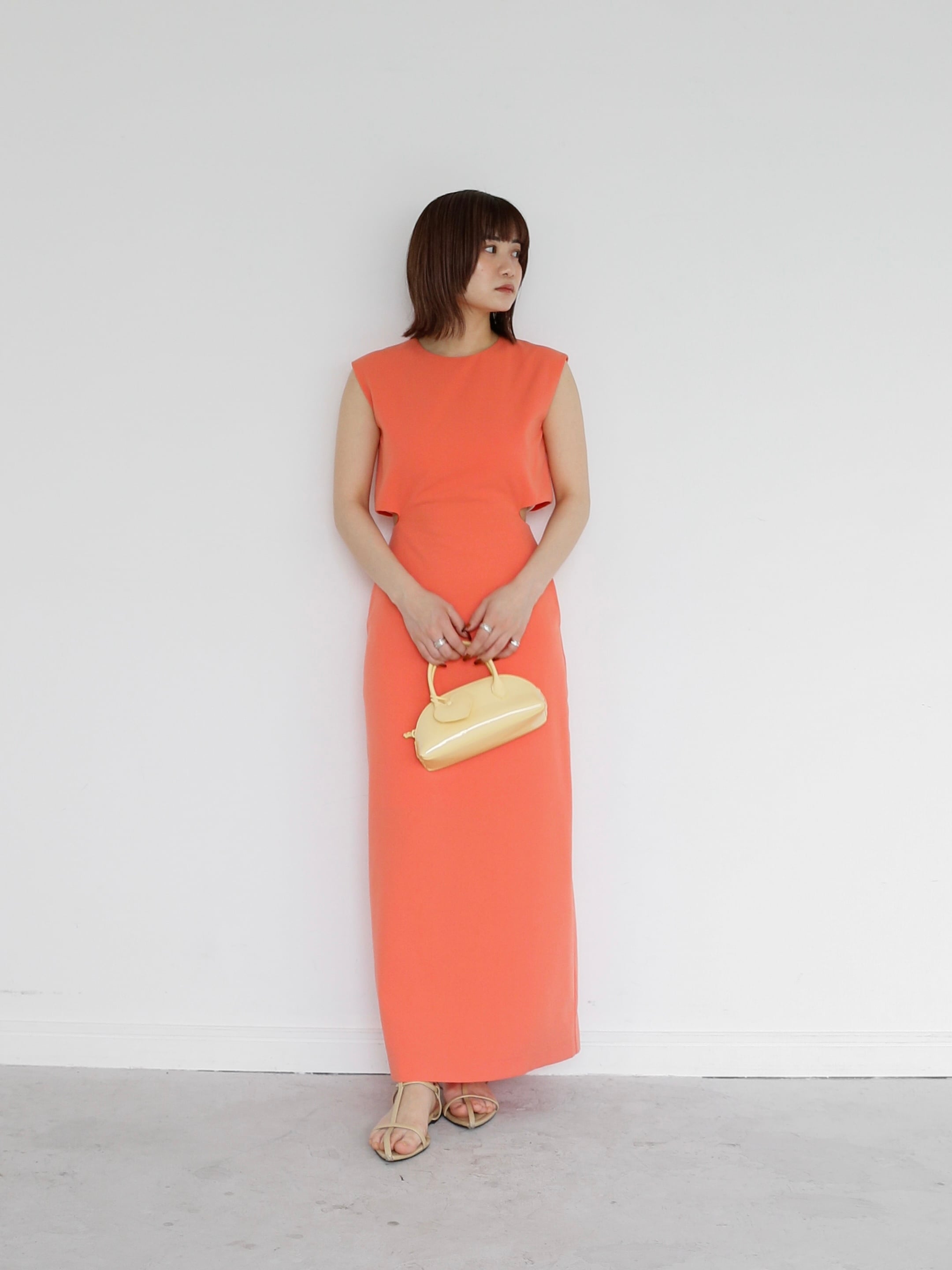 ノースリーブながらも露出を感じさせず、華奢見えする仕立てに