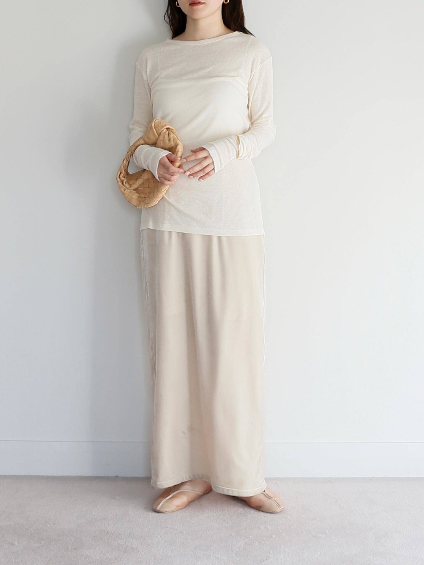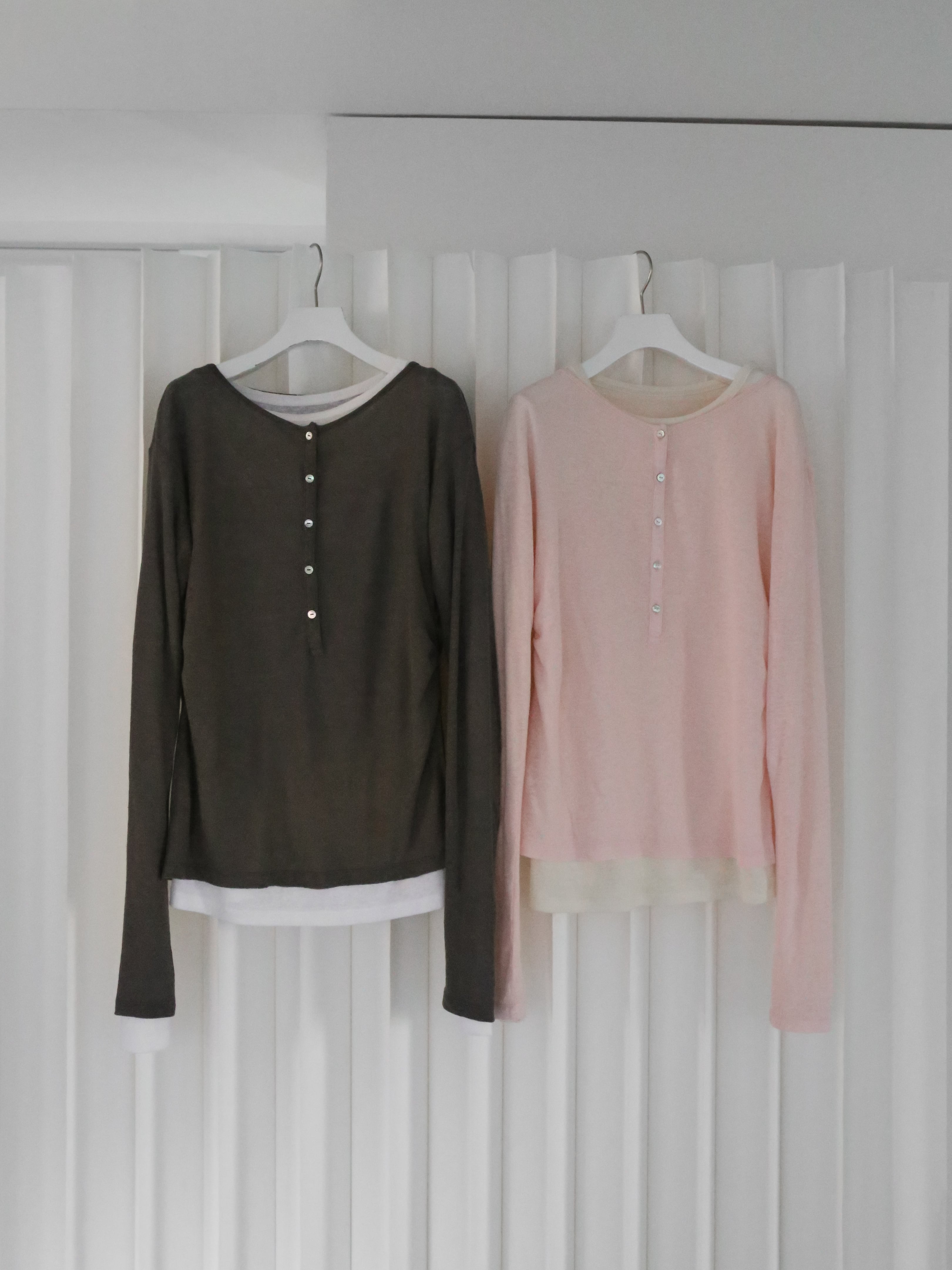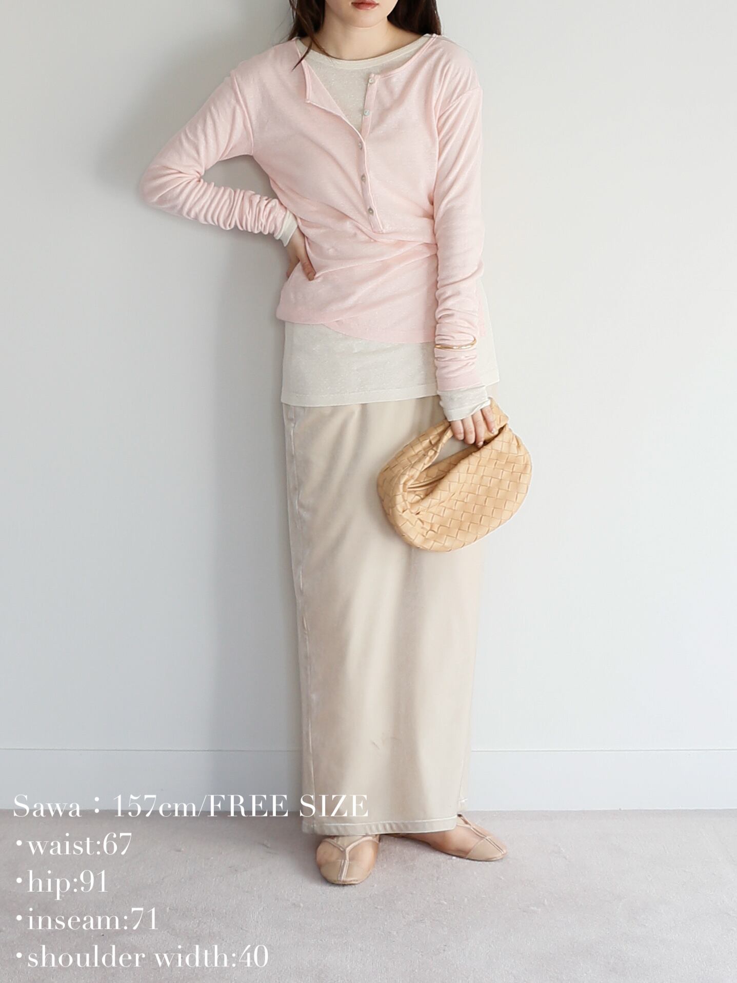 ・pink:アイボリーのロンTセット。肌染みの良いピンクなので、子供っぽくならないおすすめのカラー。カジュアル派さんにこそこのピンクを取り入れて欲しいです。