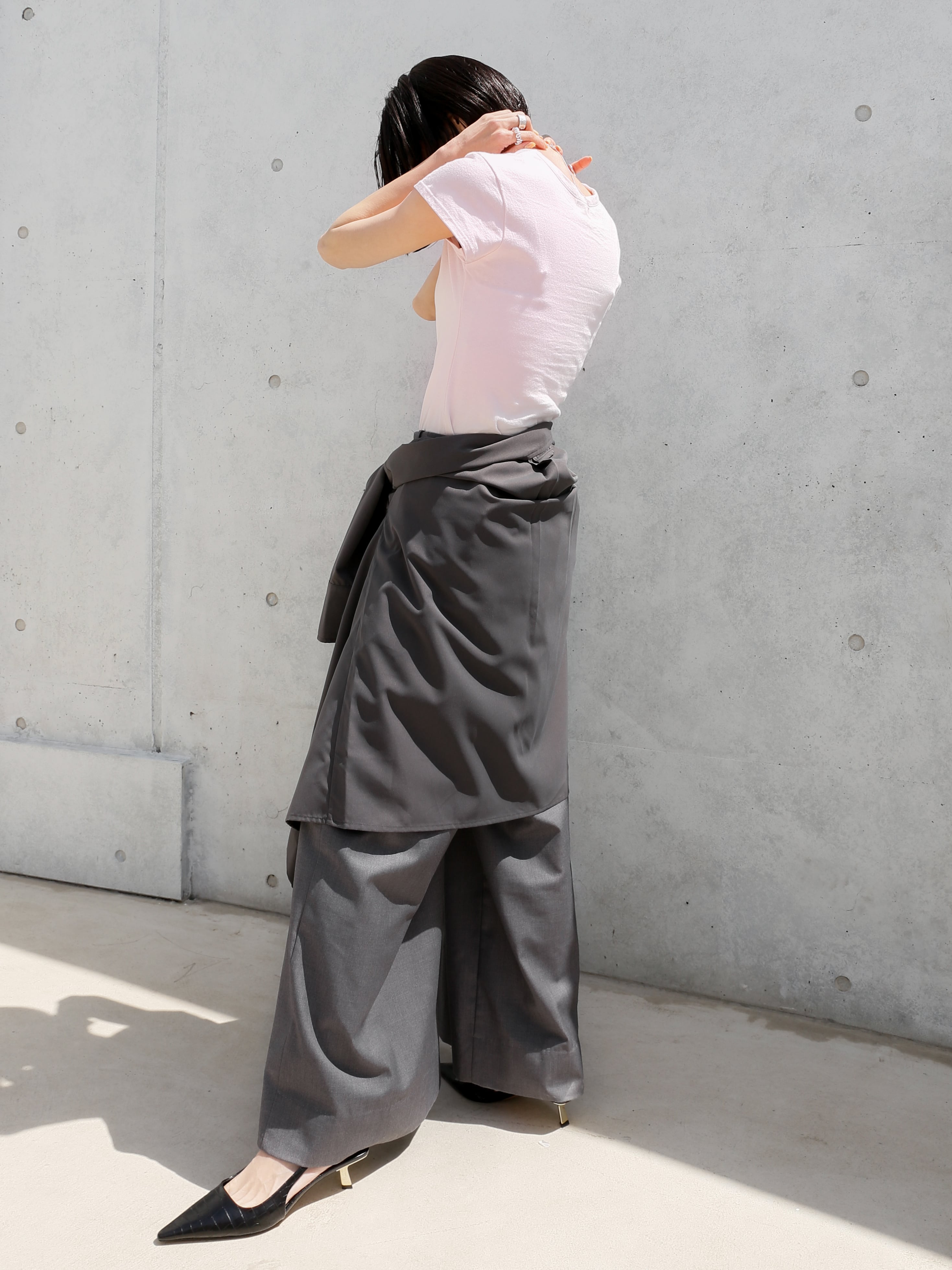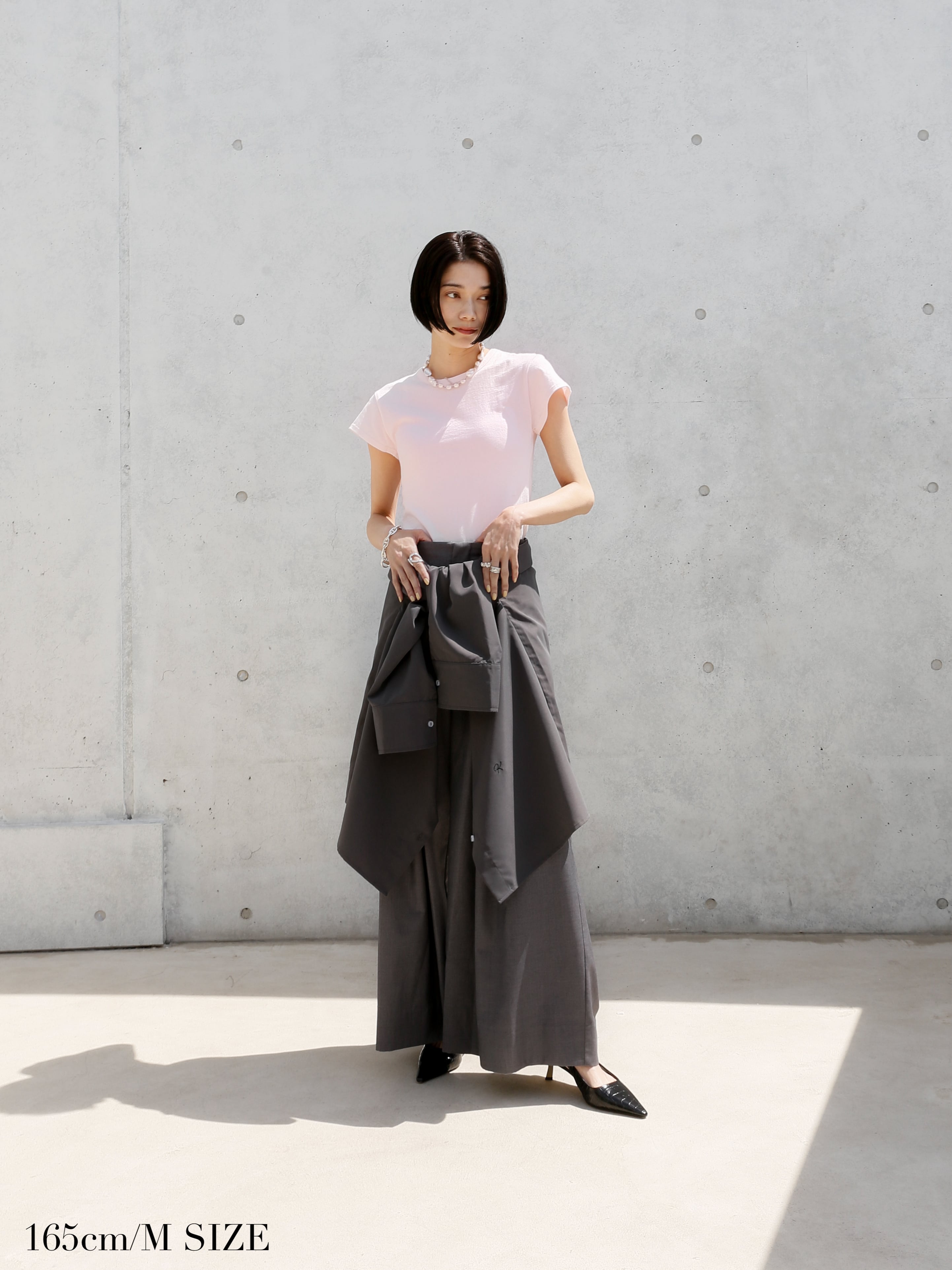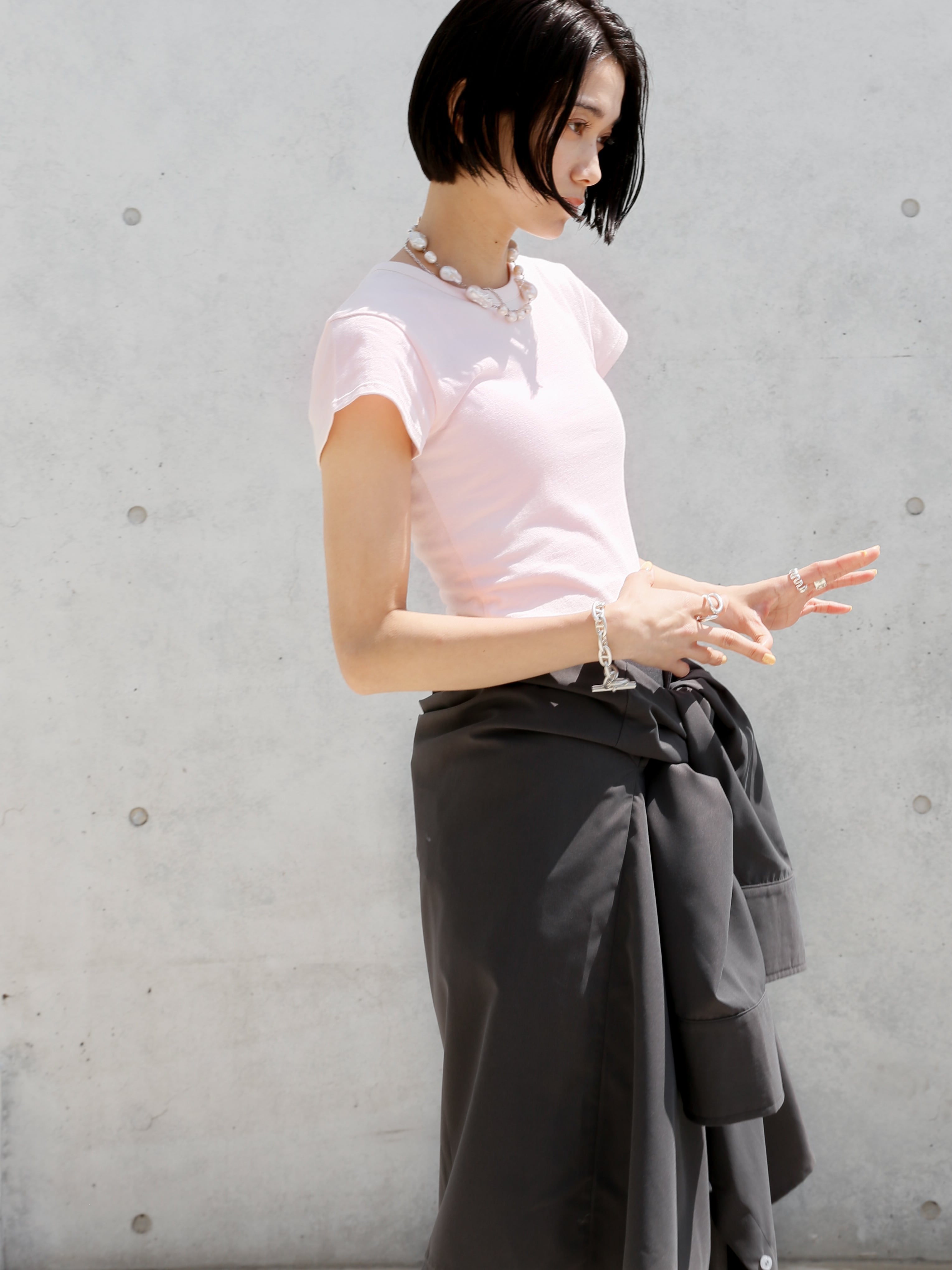 ・pink:こちらもナチュラルの生地を染め上げたオリジナルカラー。ほんのりとした薄づきのピンクがとても合わせやすく大人っぽい一着。カラーコーデにも使いやすいのが嬉しいです