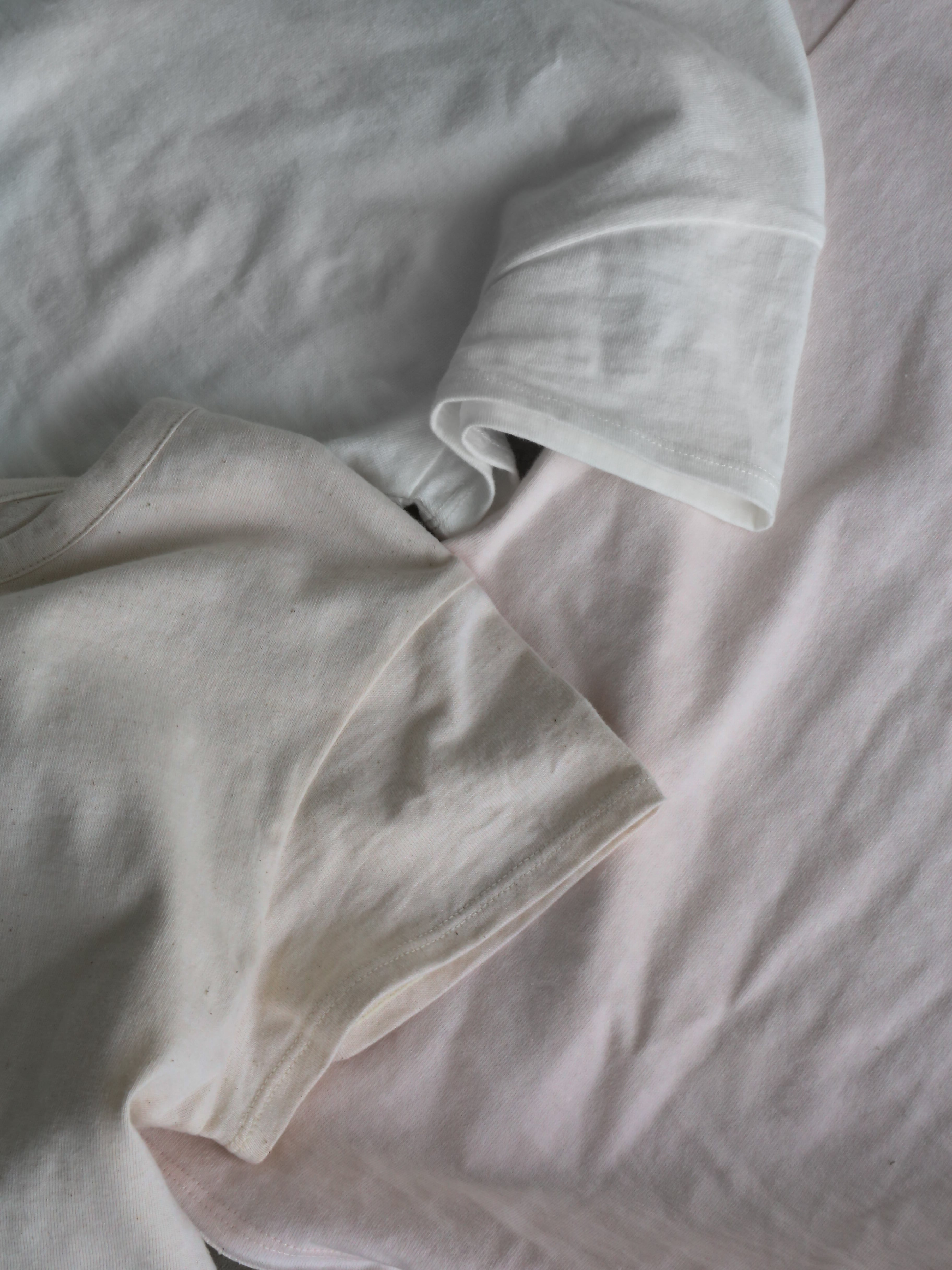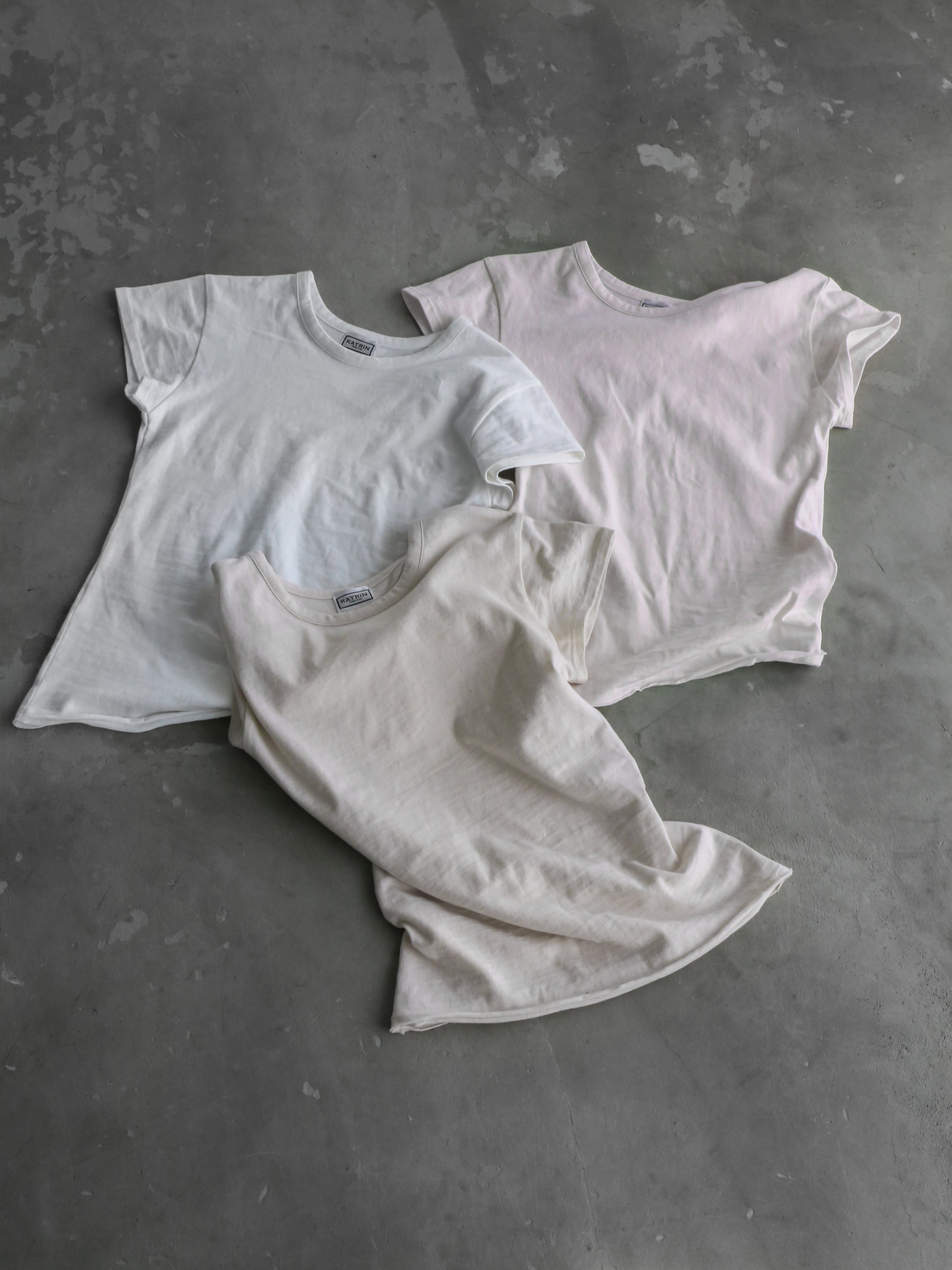 ・white:カス入りのナチュラルの生地を染めて作ったホワイトだから、ただの白ではなくどことなく風合いが。夏に活躍する白Tですが、手持ちのものとは差別化できるような、さり気ないニュアンスのあるホワイトです