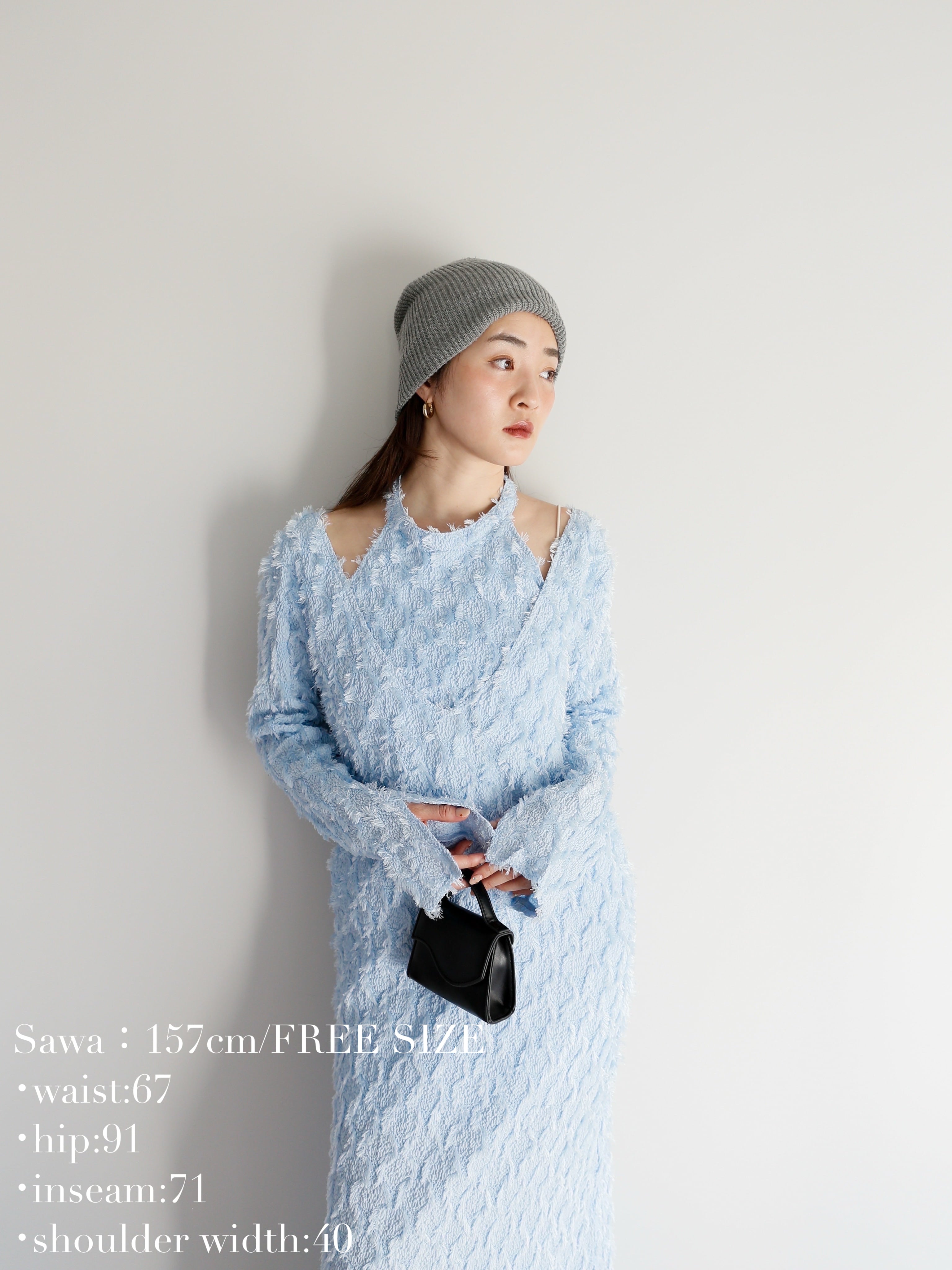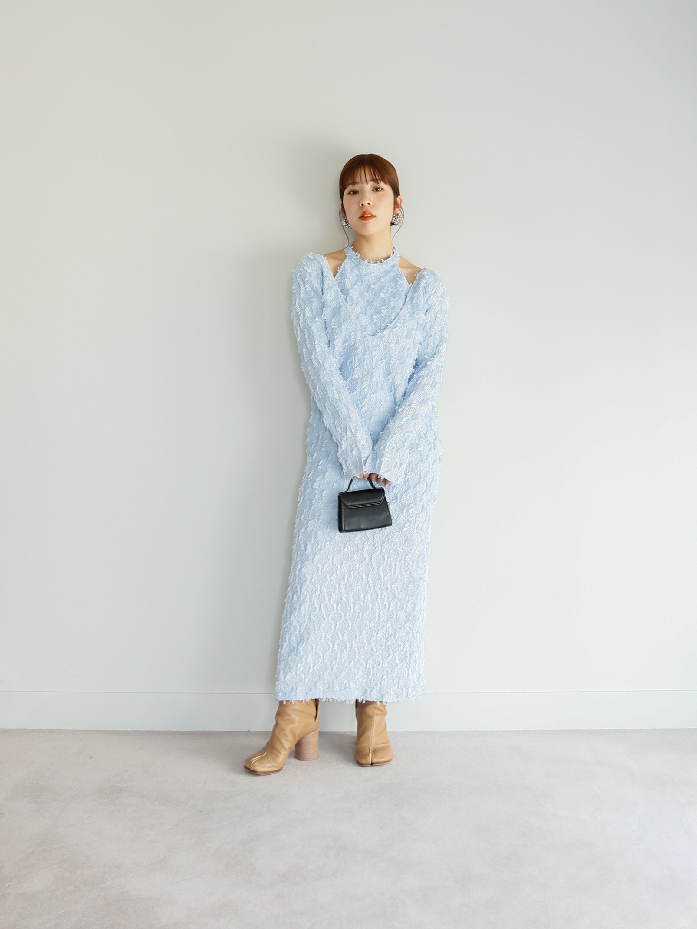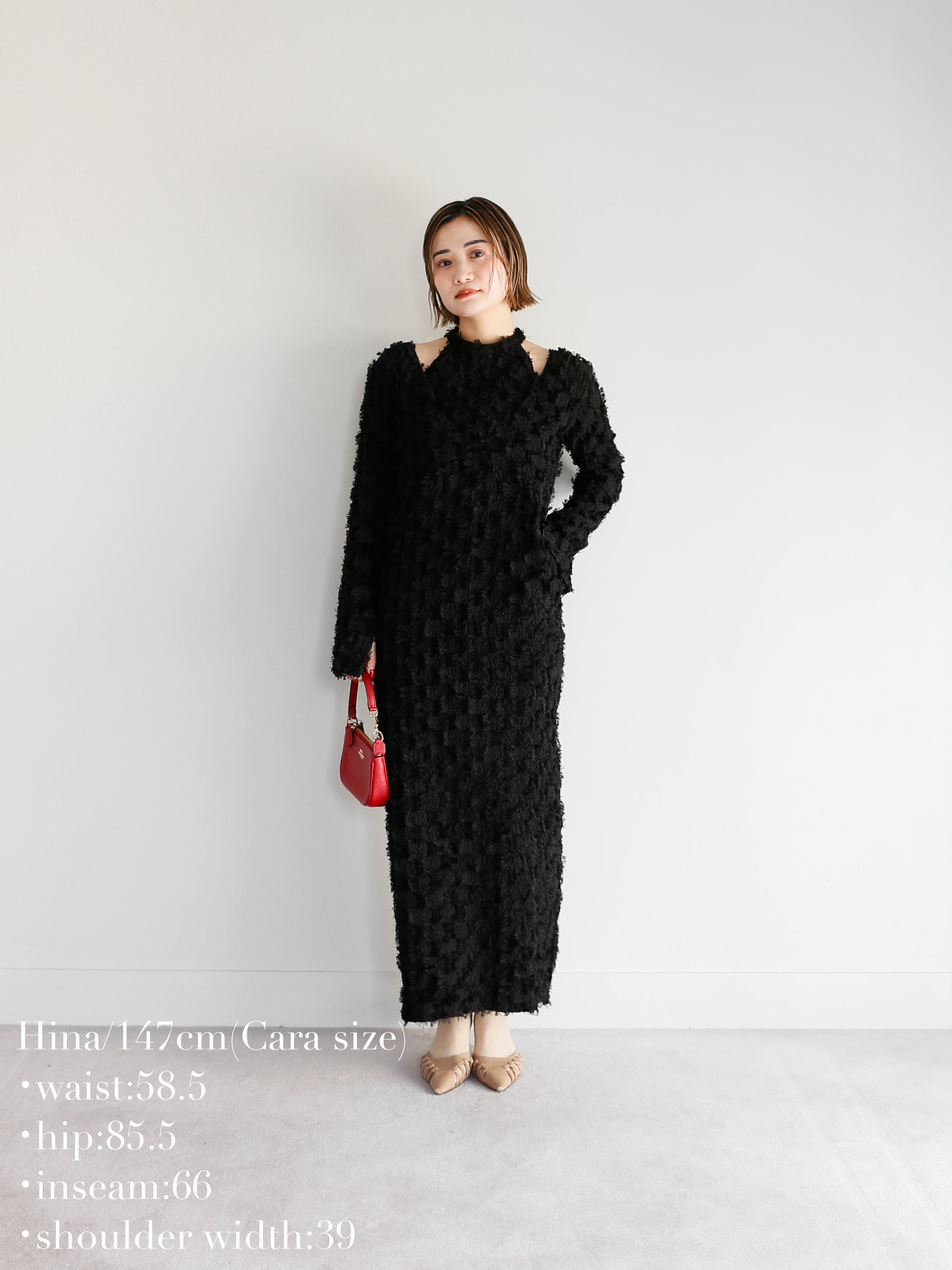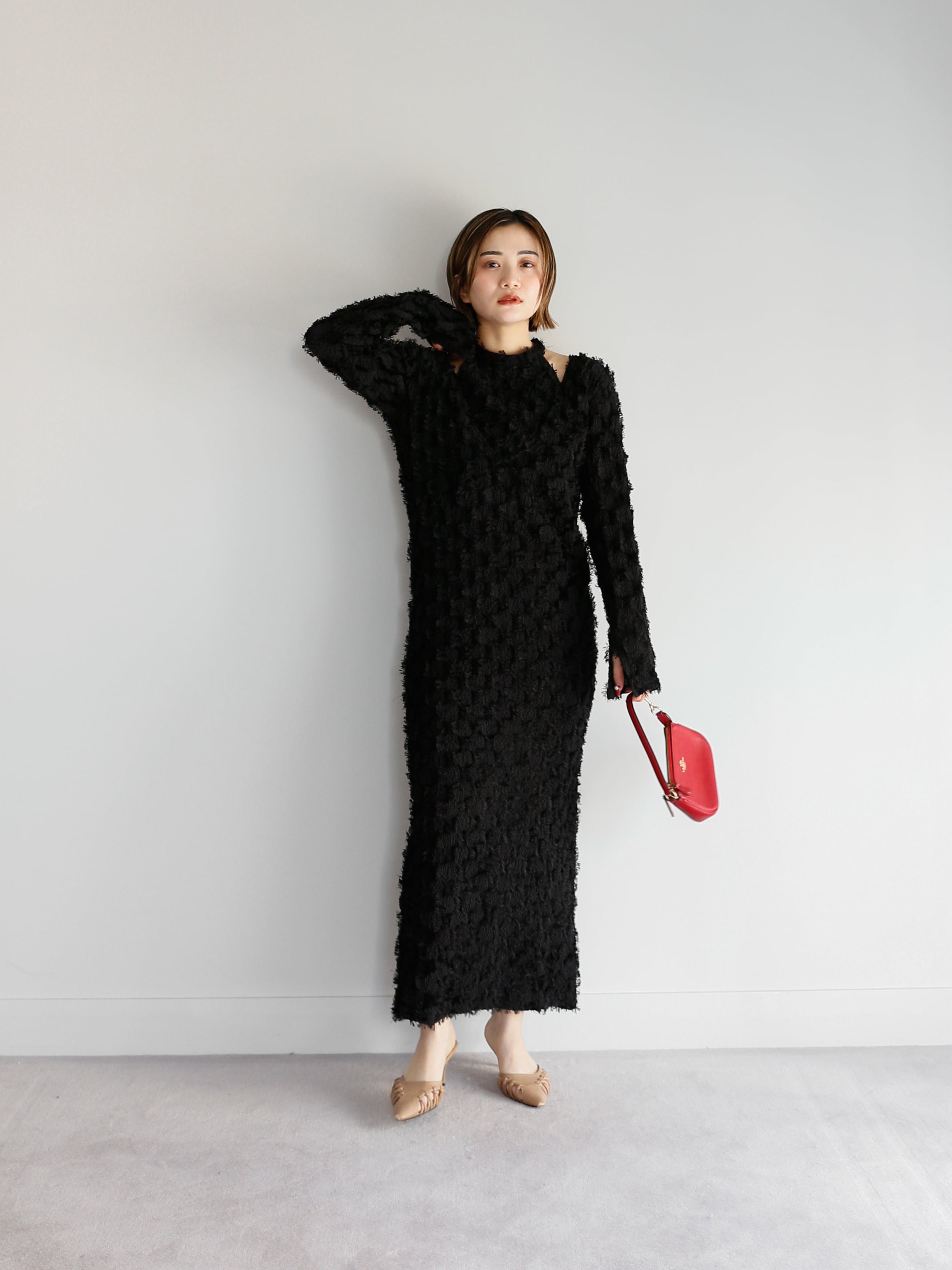 ・black:肌見せで抜け感があるので、ブラックなのに重くならないワンピース。すでにブラックのワンピースをお持ちの方にも、全然違うアイテムとしてお召しいただけること間違いなしです。