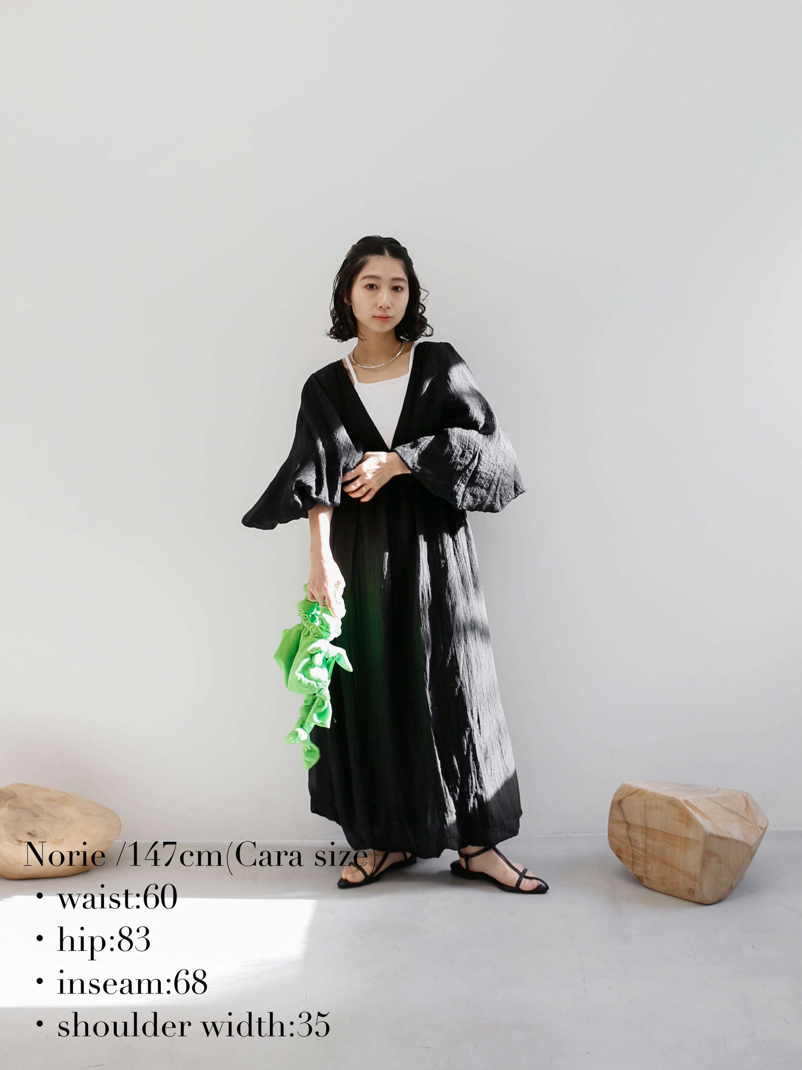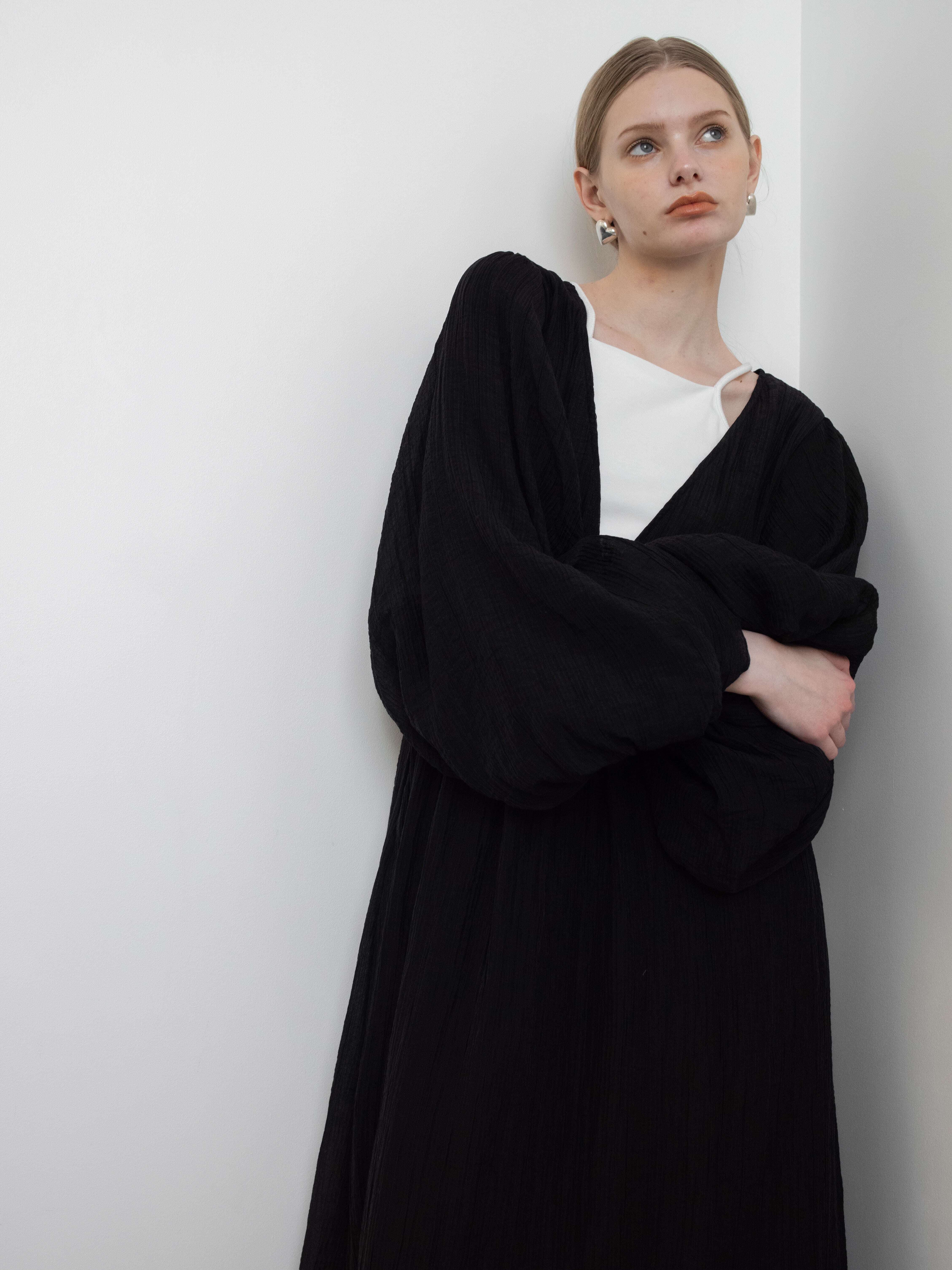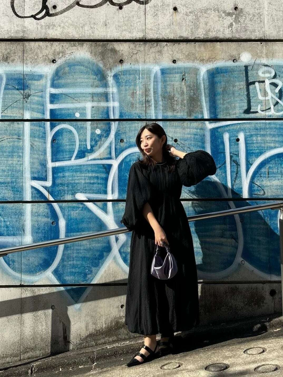 ・black:デザインがしっかり映えるのはblack。生地をたっぷりと使用したブラックのワンピースも透け感とシワ加工が施された生地なら重くならず◎