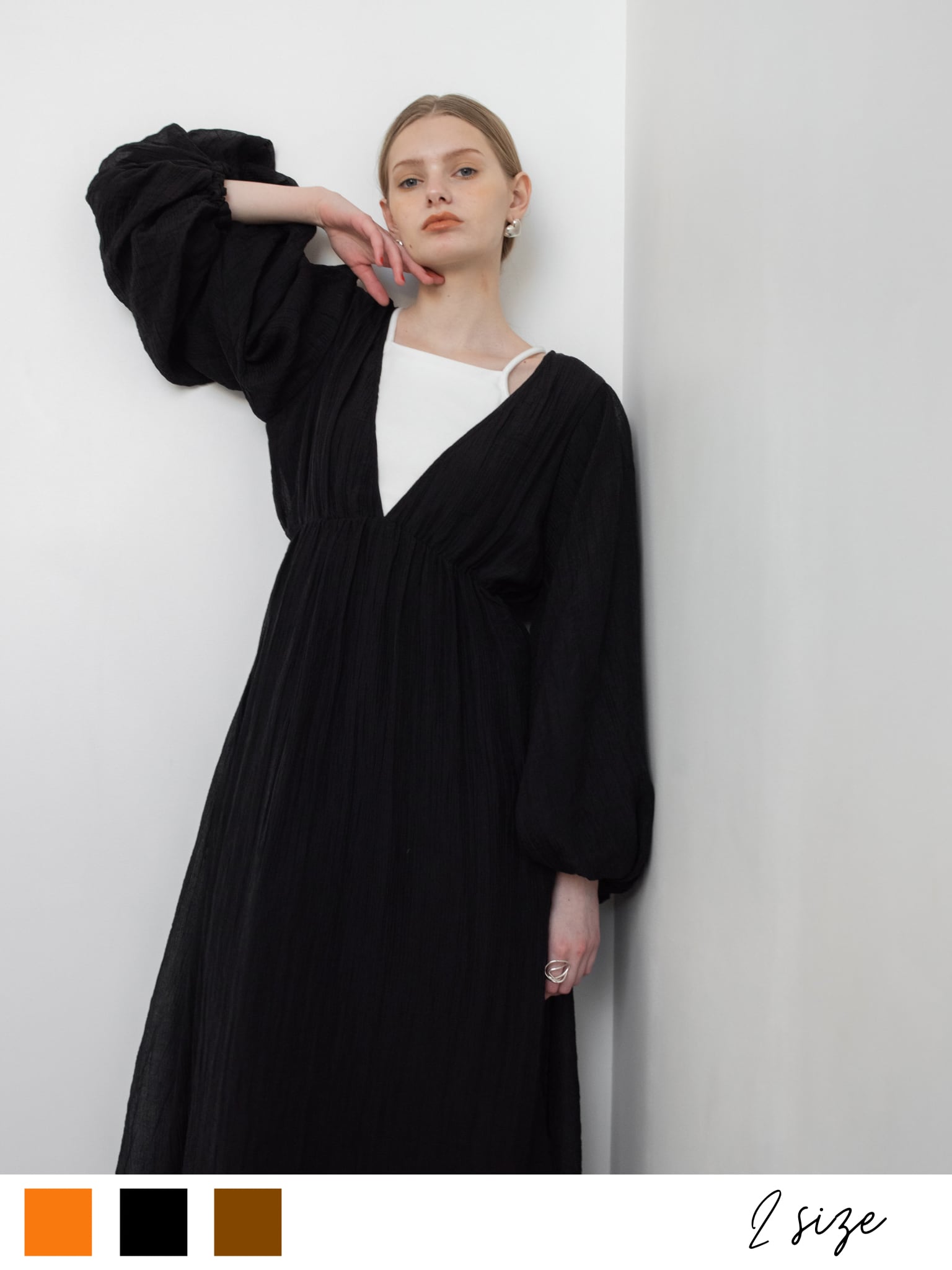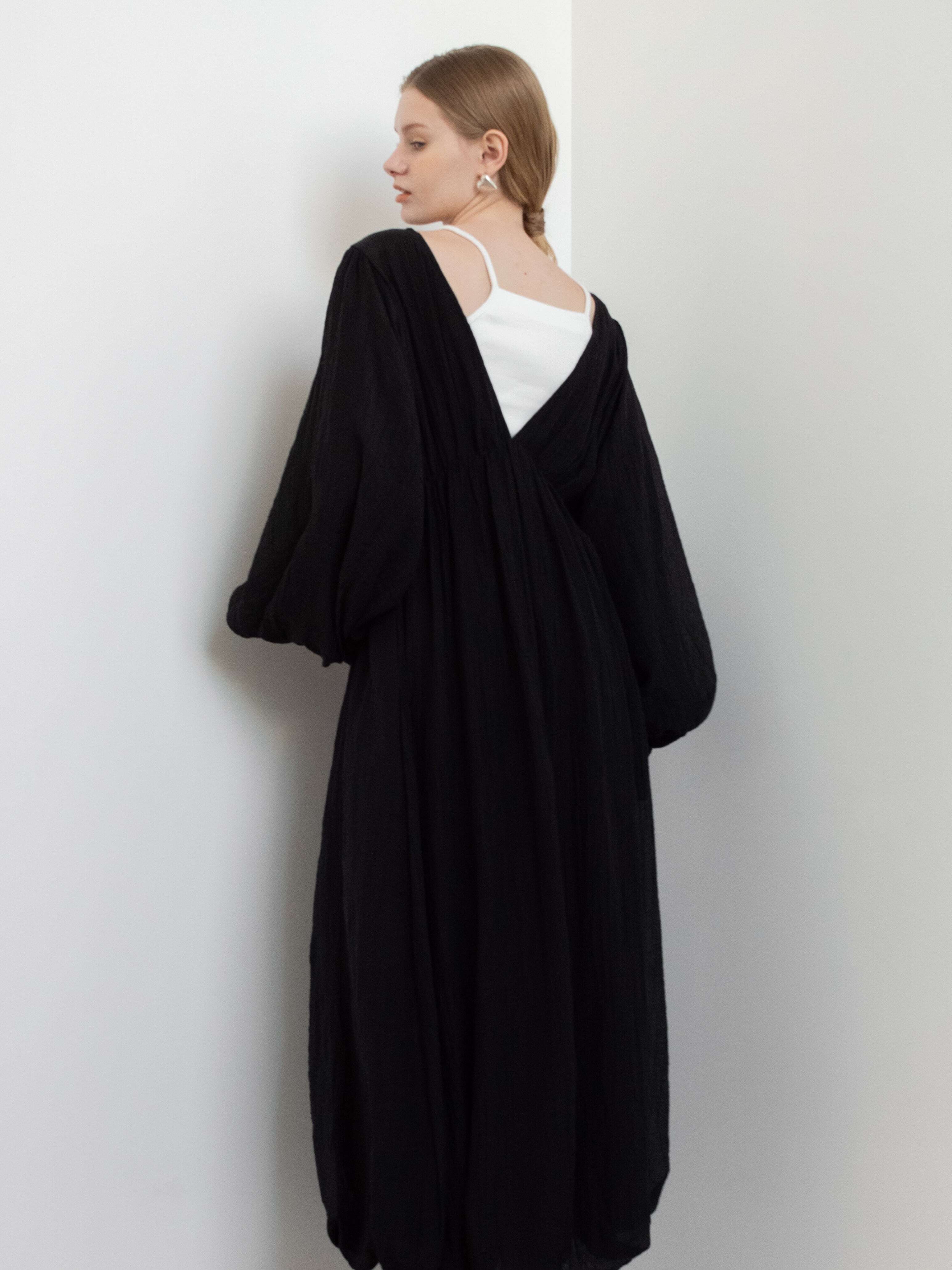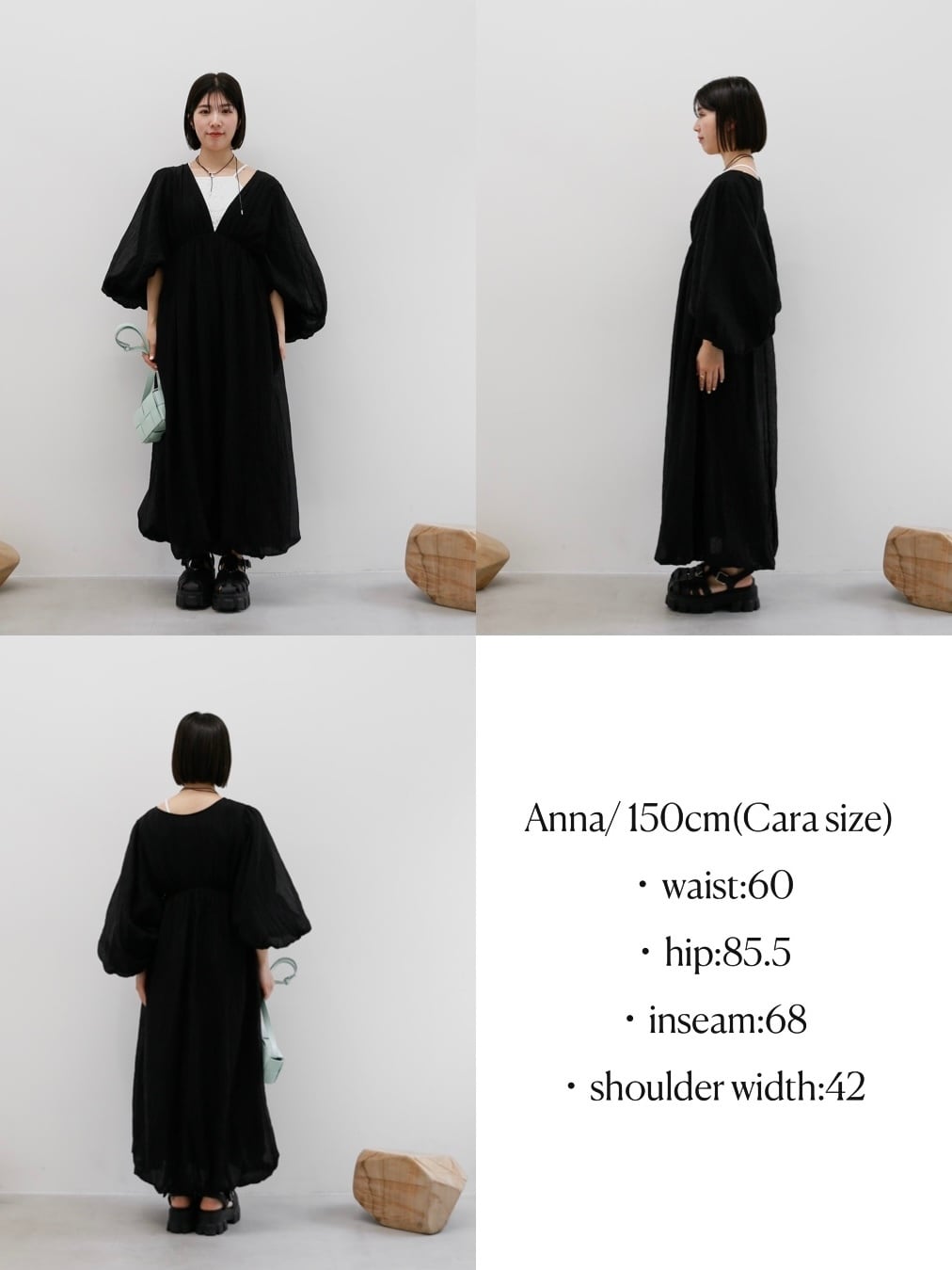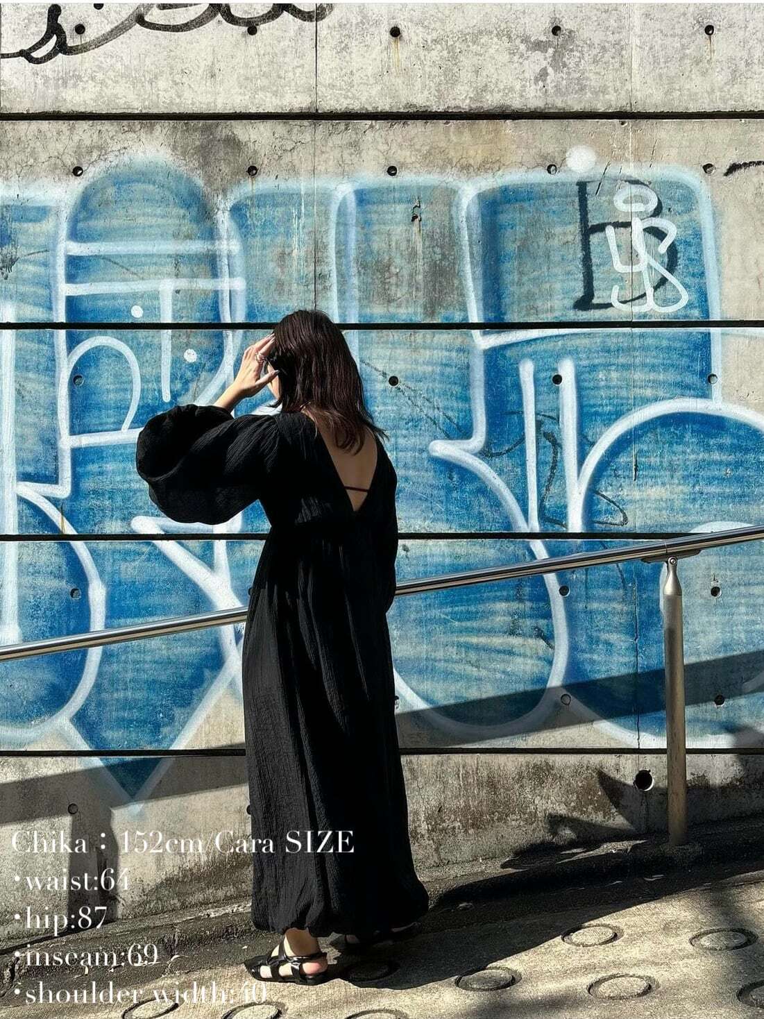 ・black:デザインがしっかり映えるのはblack。生地をたっぷりと使用したブラックのワンピースも透け感とシワ加工が施された生地なら重くならず◎