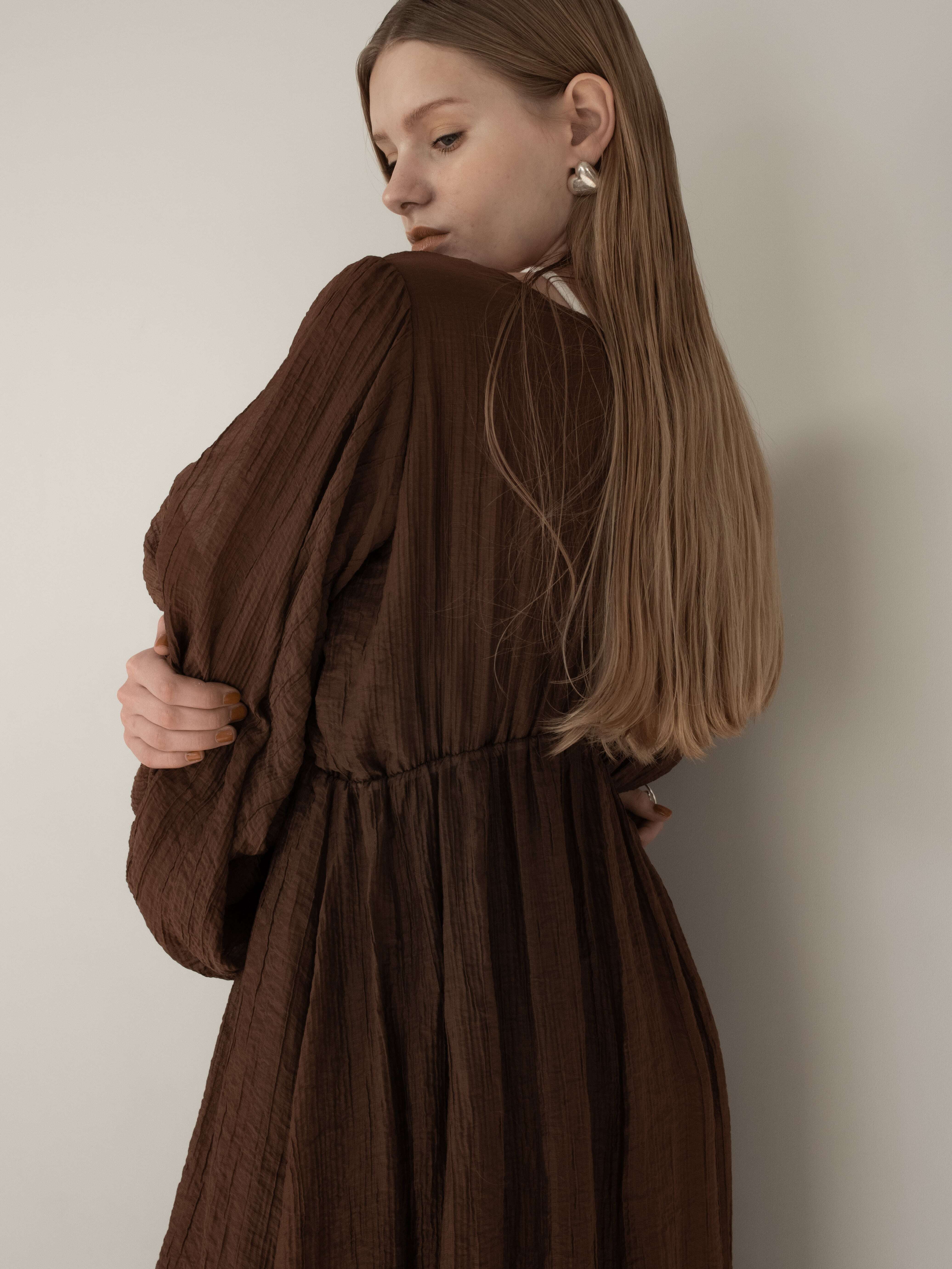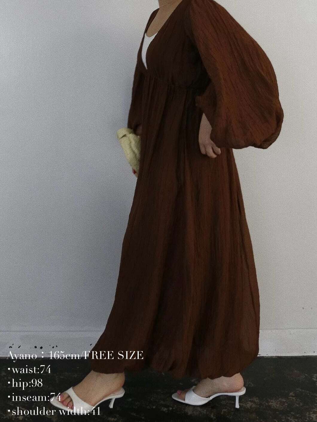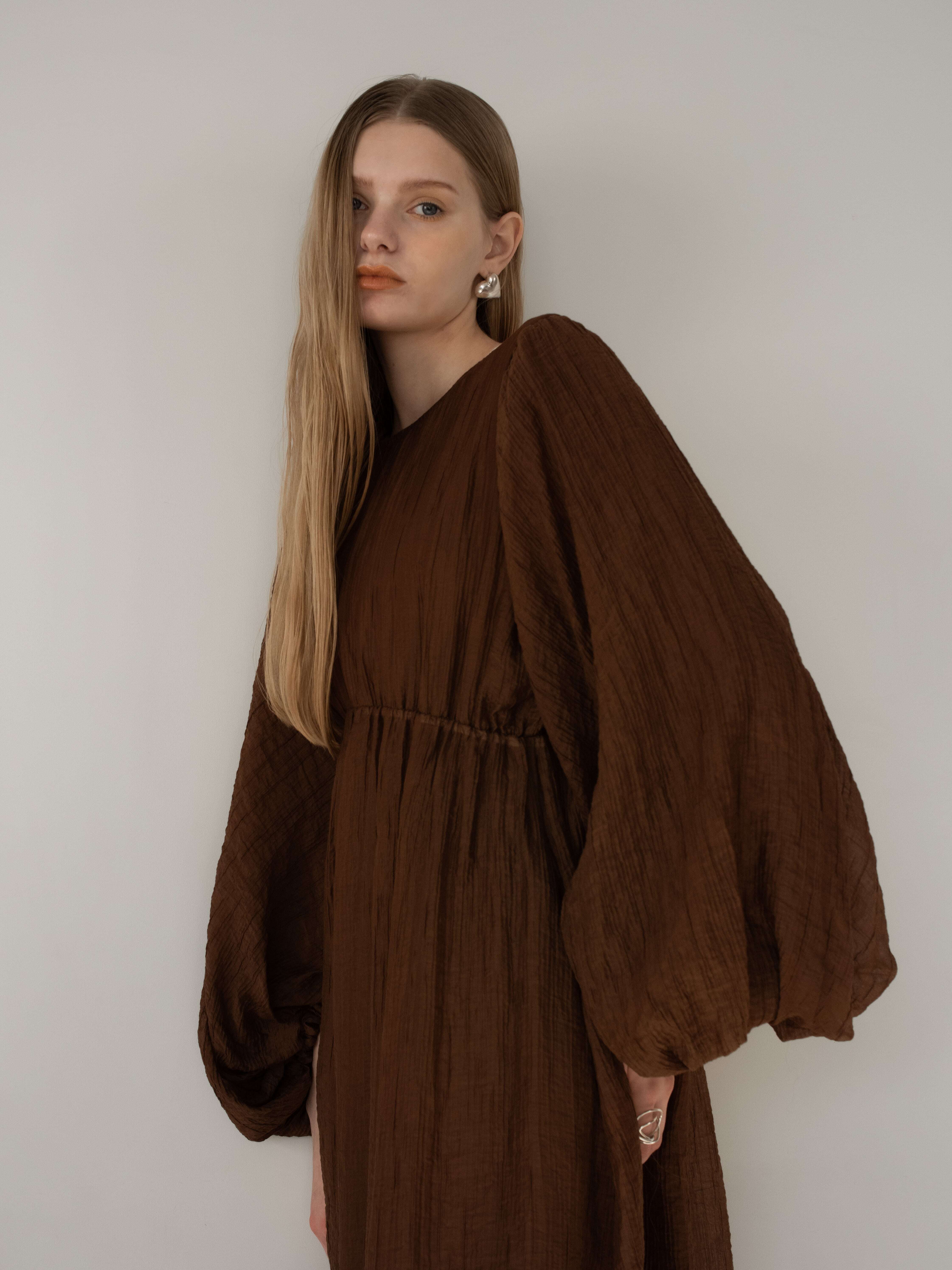 blackとbrownはシワ加工が施された優し気な光沢感と透け感がある生地を使用