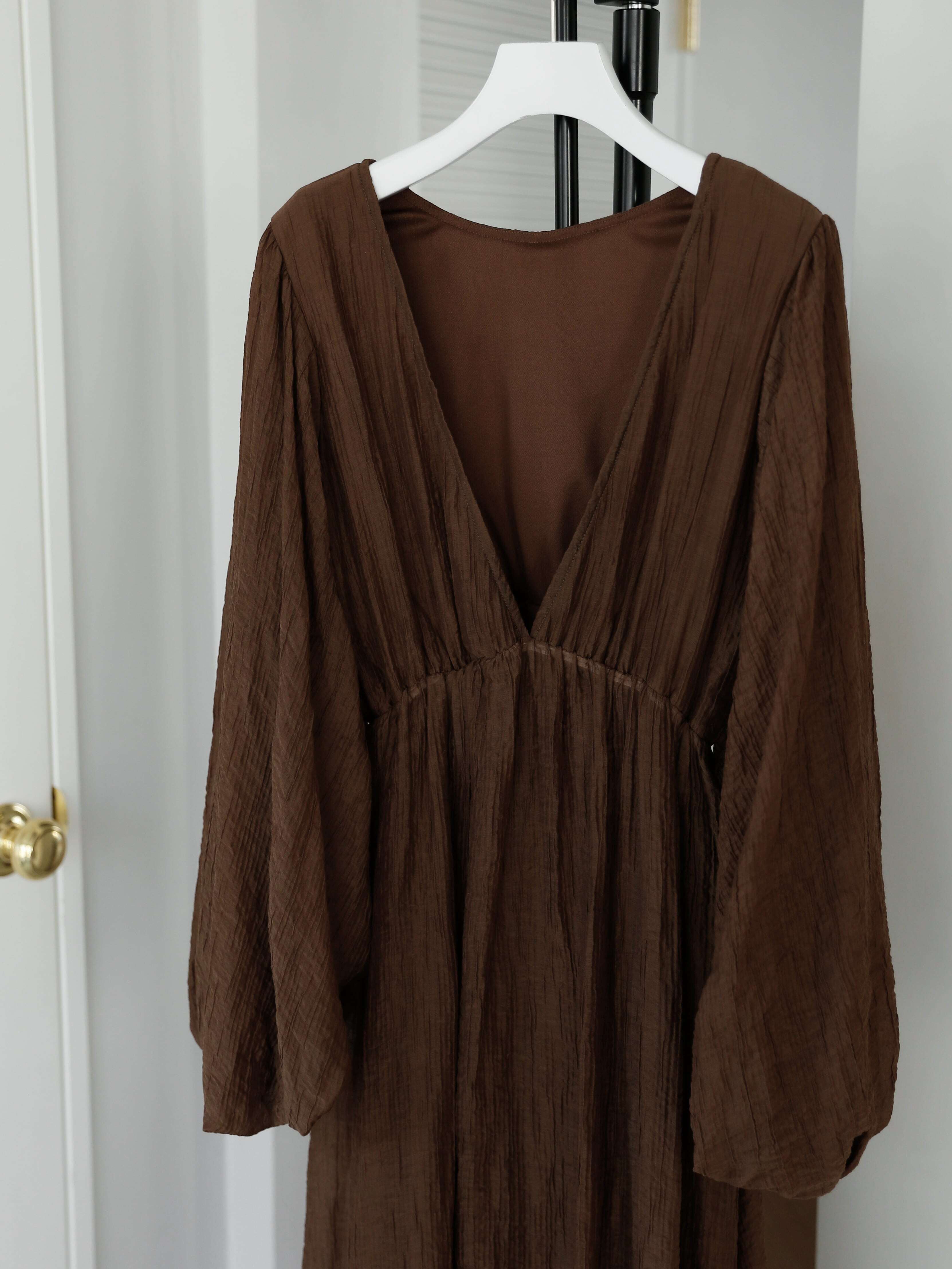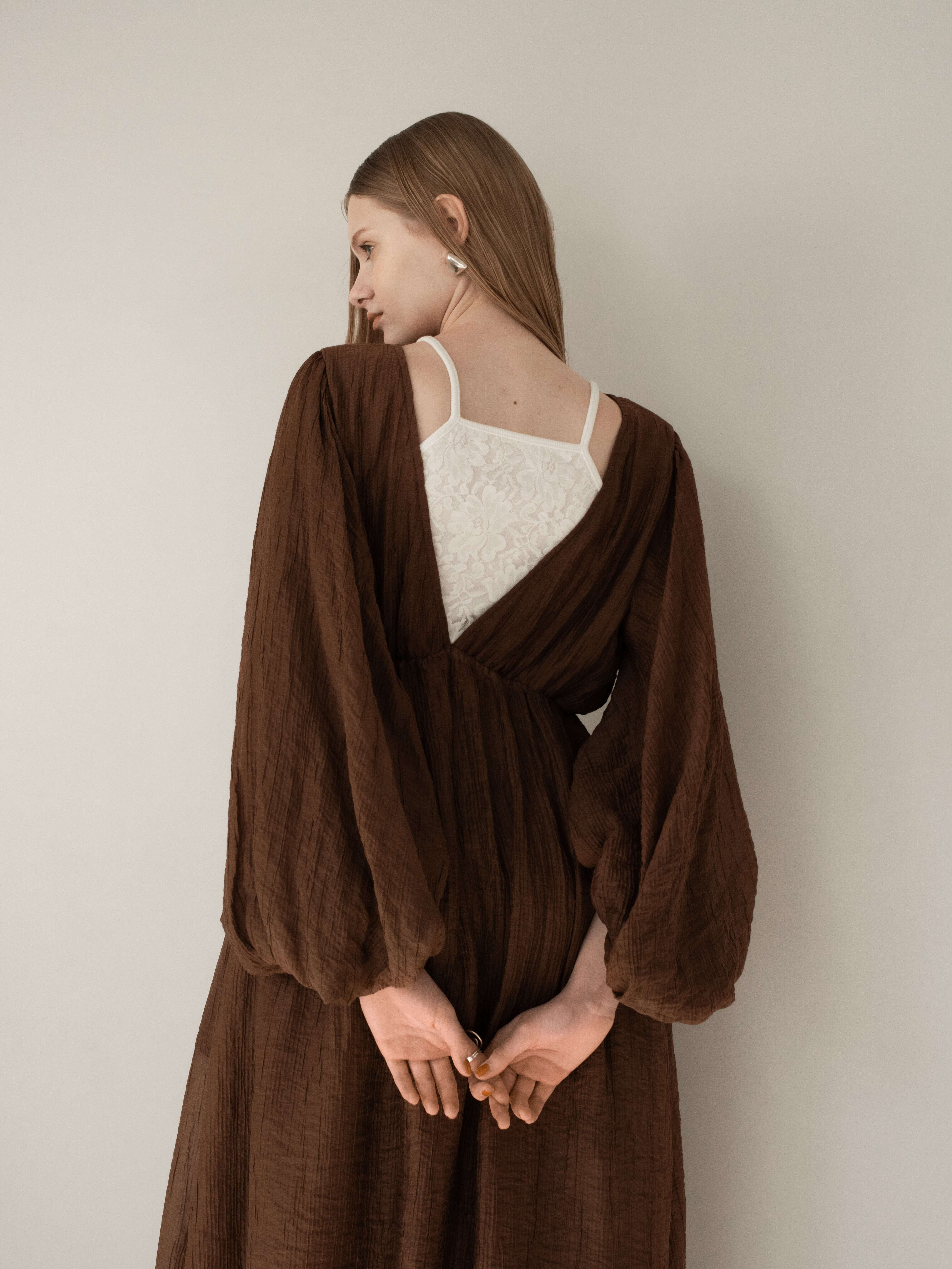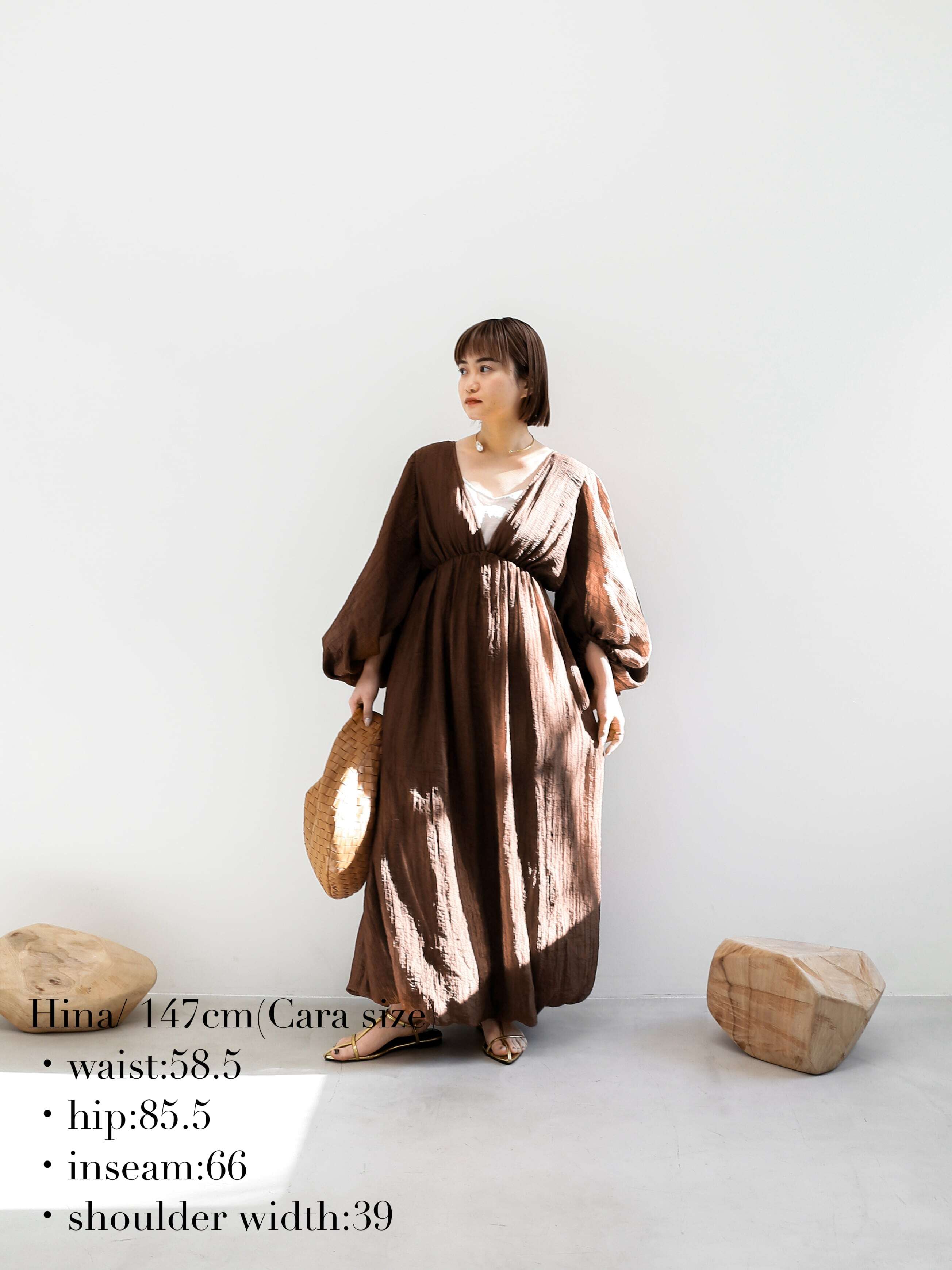 blackとbrownはシワ加工が施された優し気な光沢感と透け感がある生地を使用