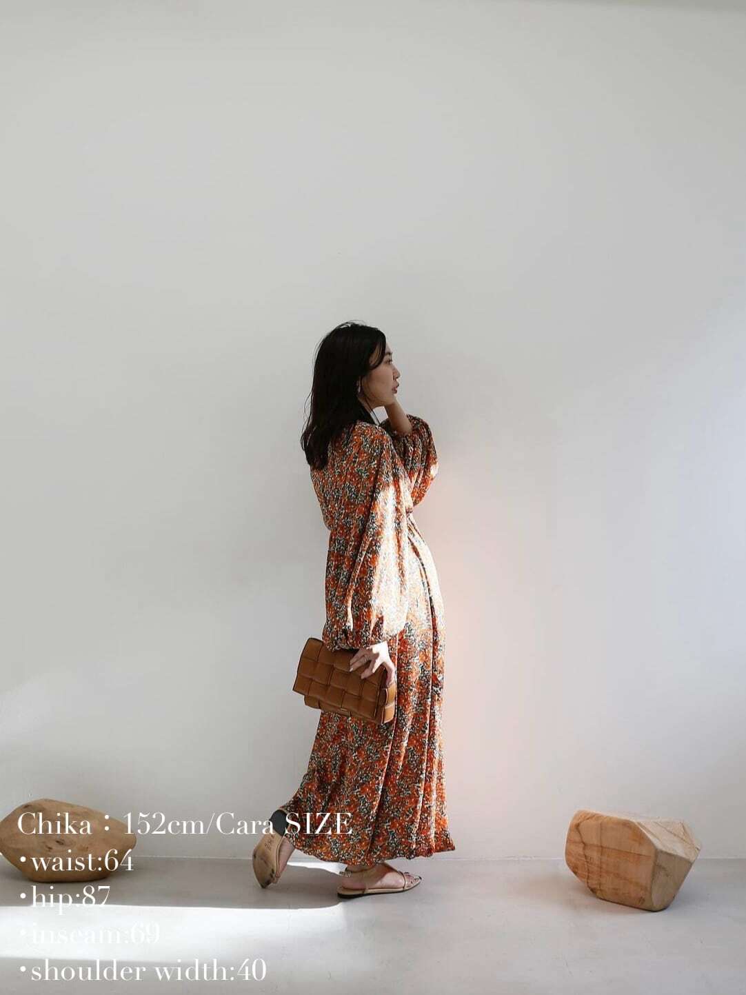手首がでる袖丈はふんわりとしたワンピースにスッキリとした印象を与えます