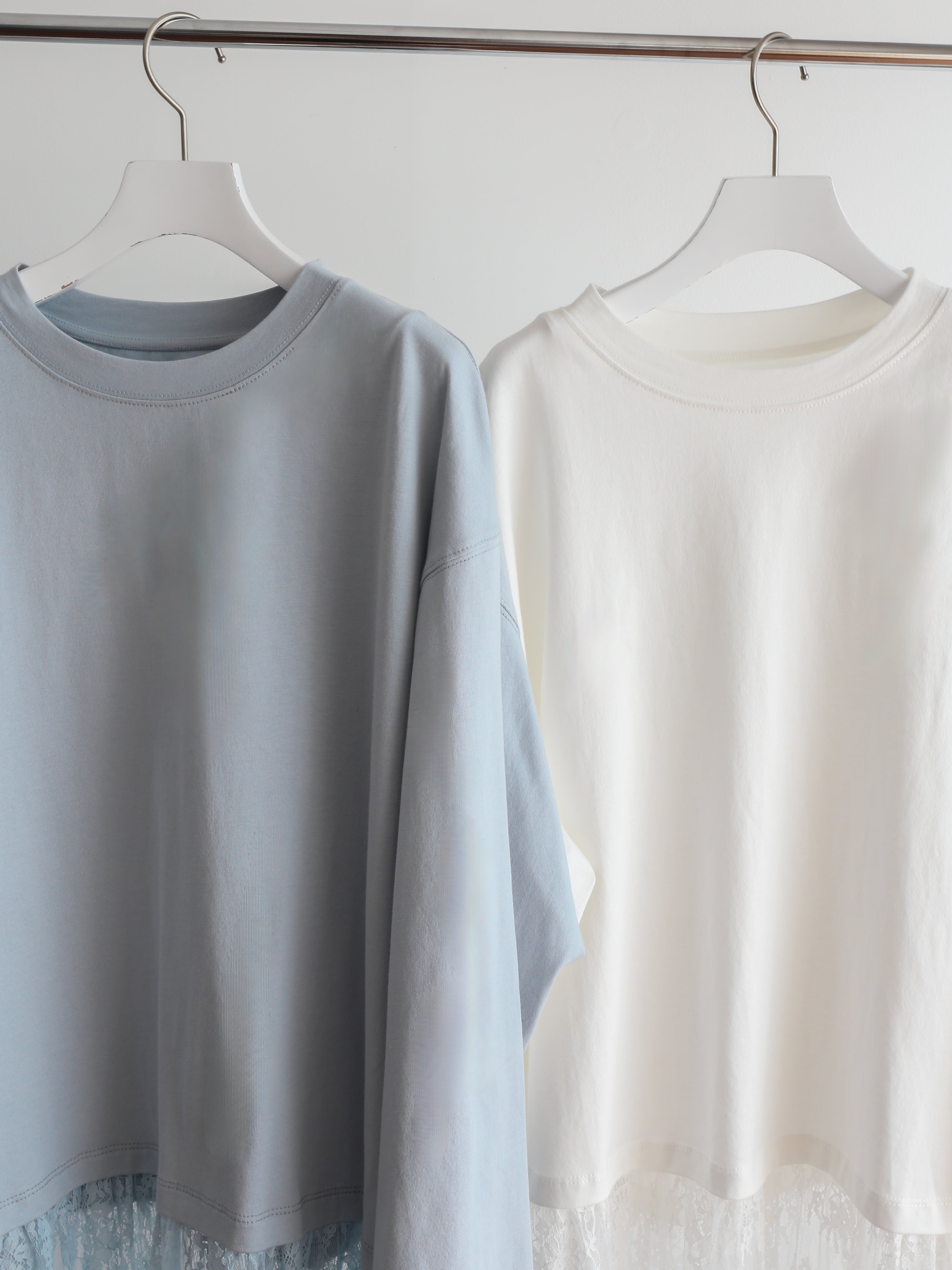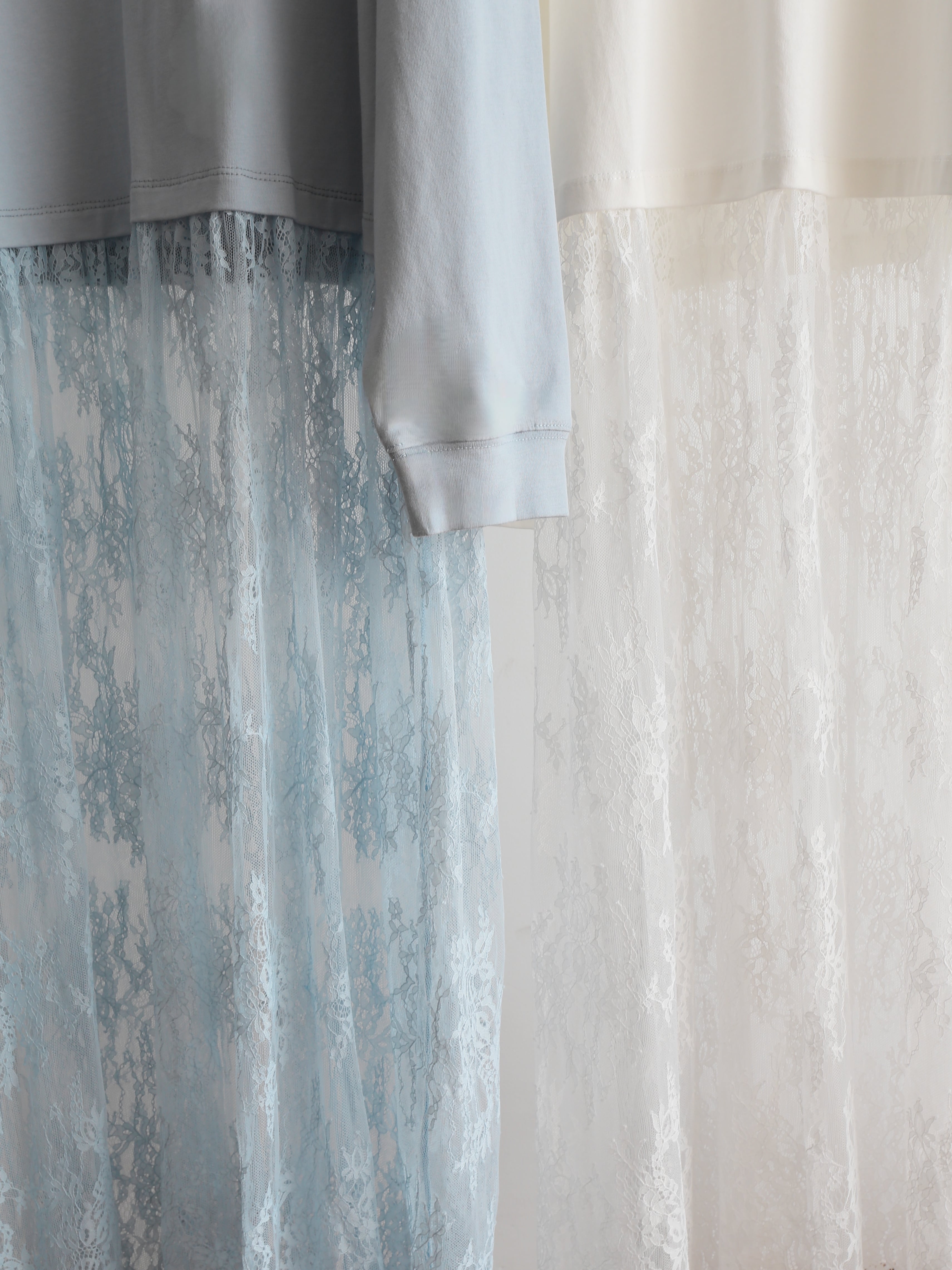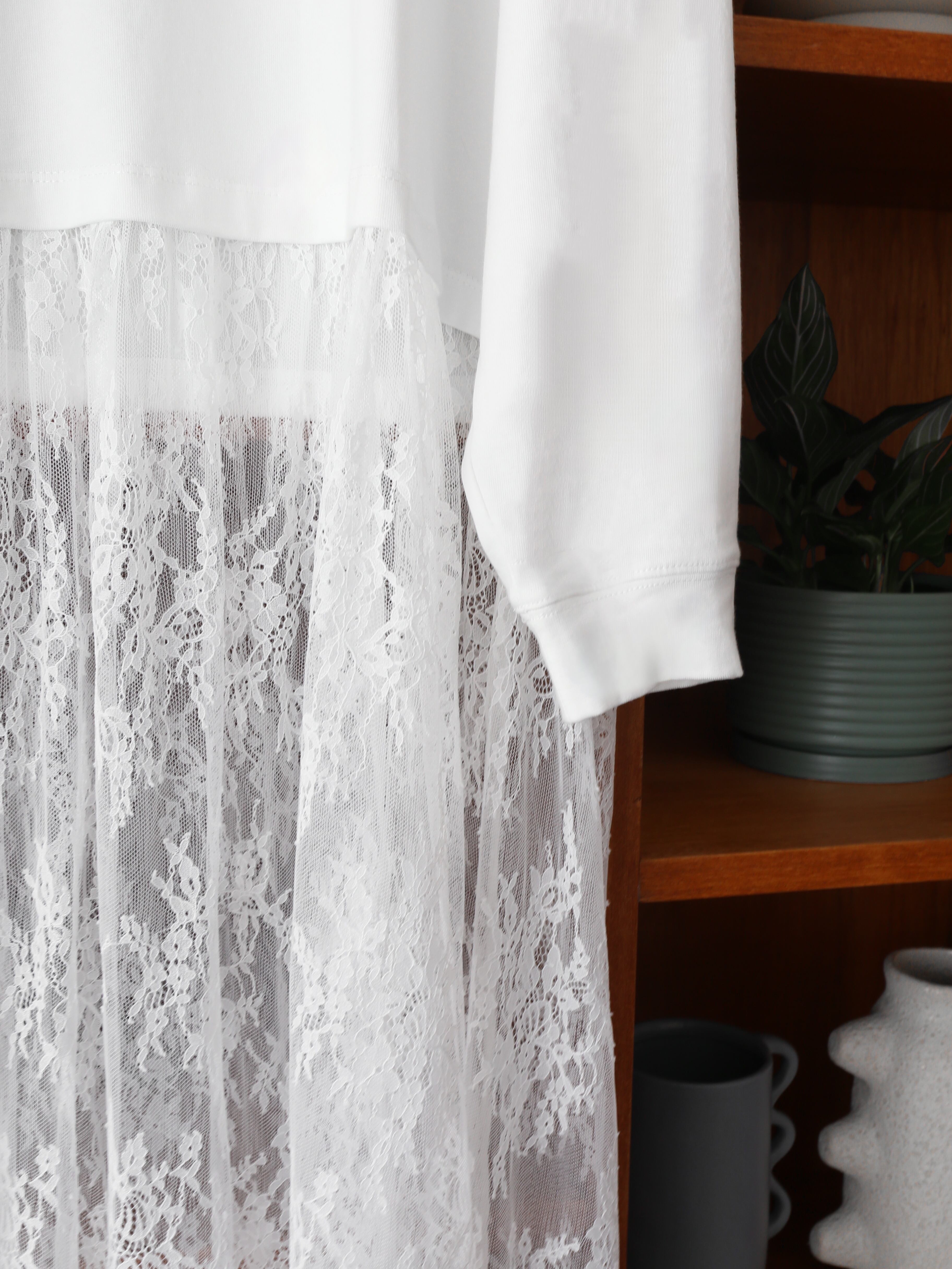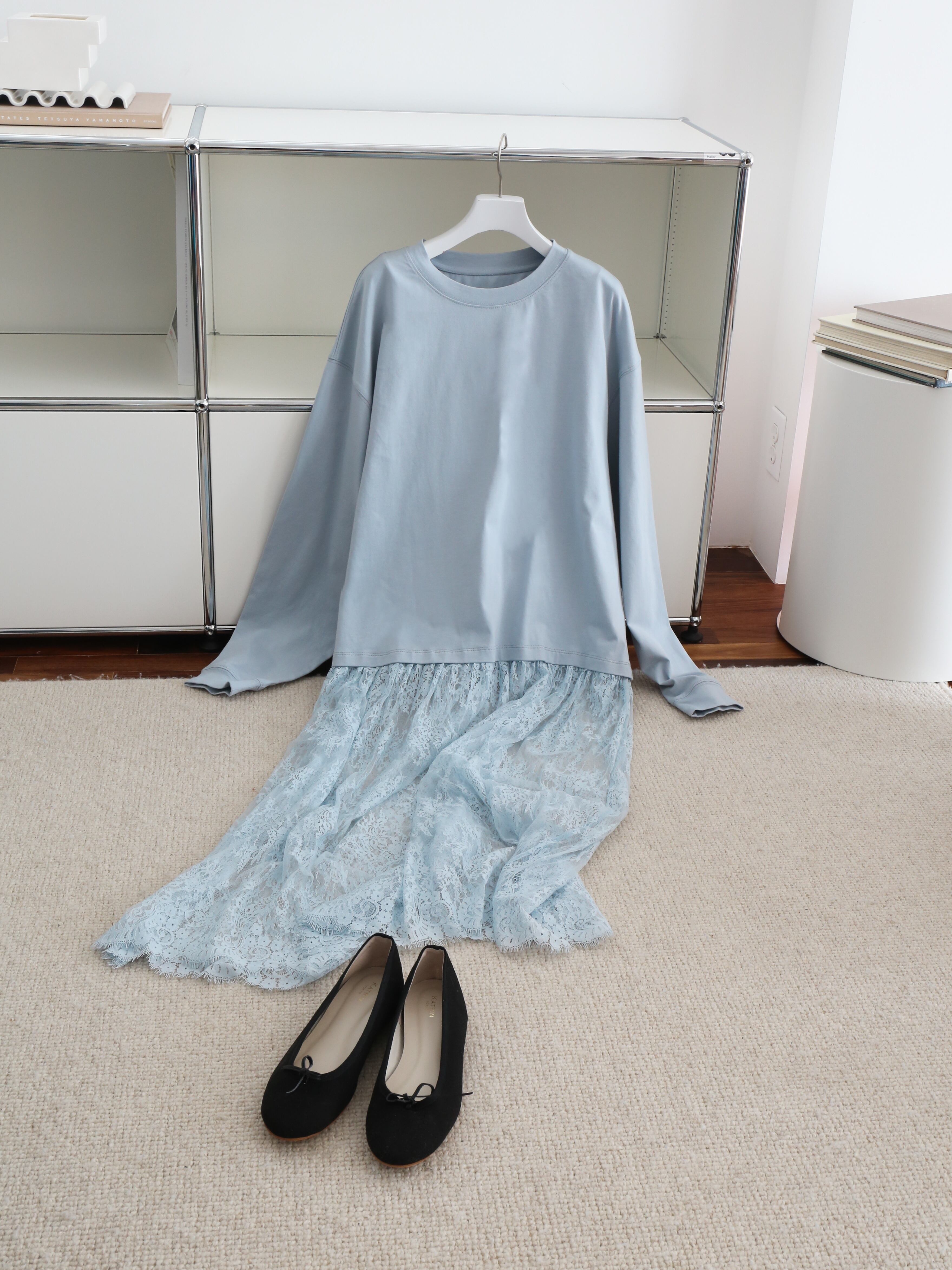 秋の気分を盛り上げるカットソーとレースを使用したワンピース