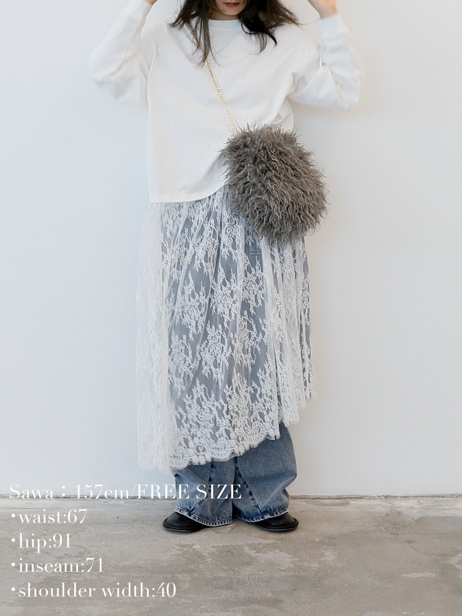・white:1枚はワードローブに追加したいのがwhite。可愛い印象になりがちなwhiteのレースワンピもこのデザインなら大人ぽく仕上がります。ブルーデニムとの相性が抜群なのでレイヤードしたスタイリングがおすすめ◎