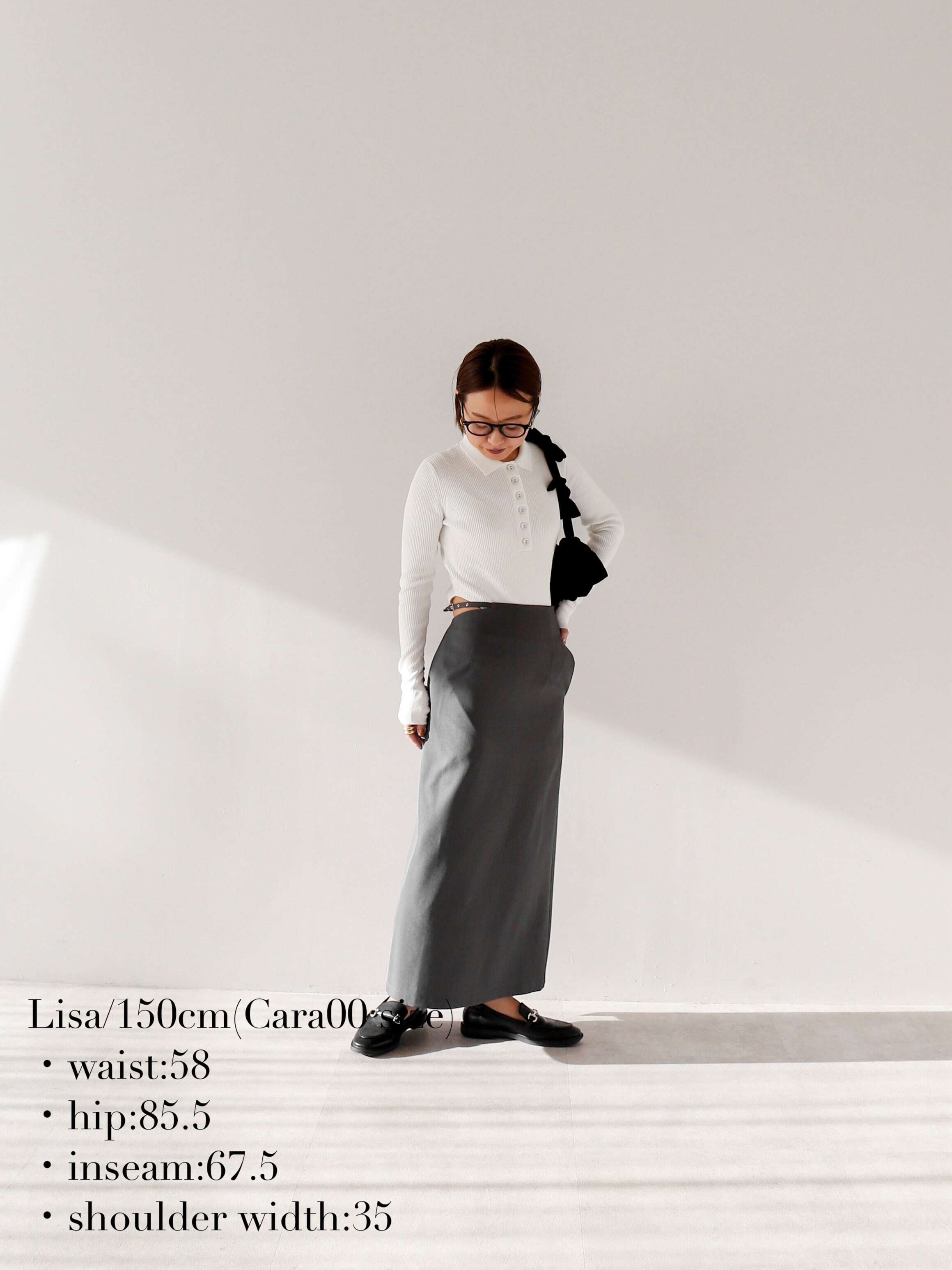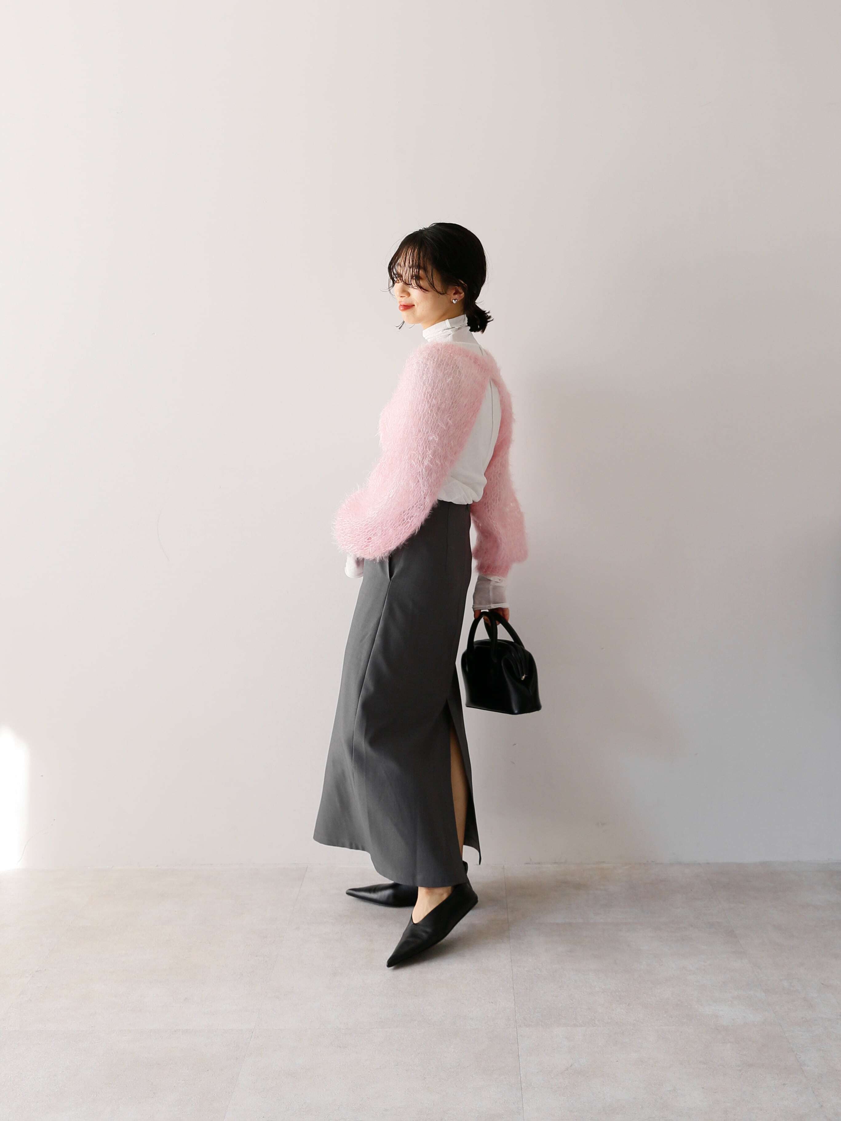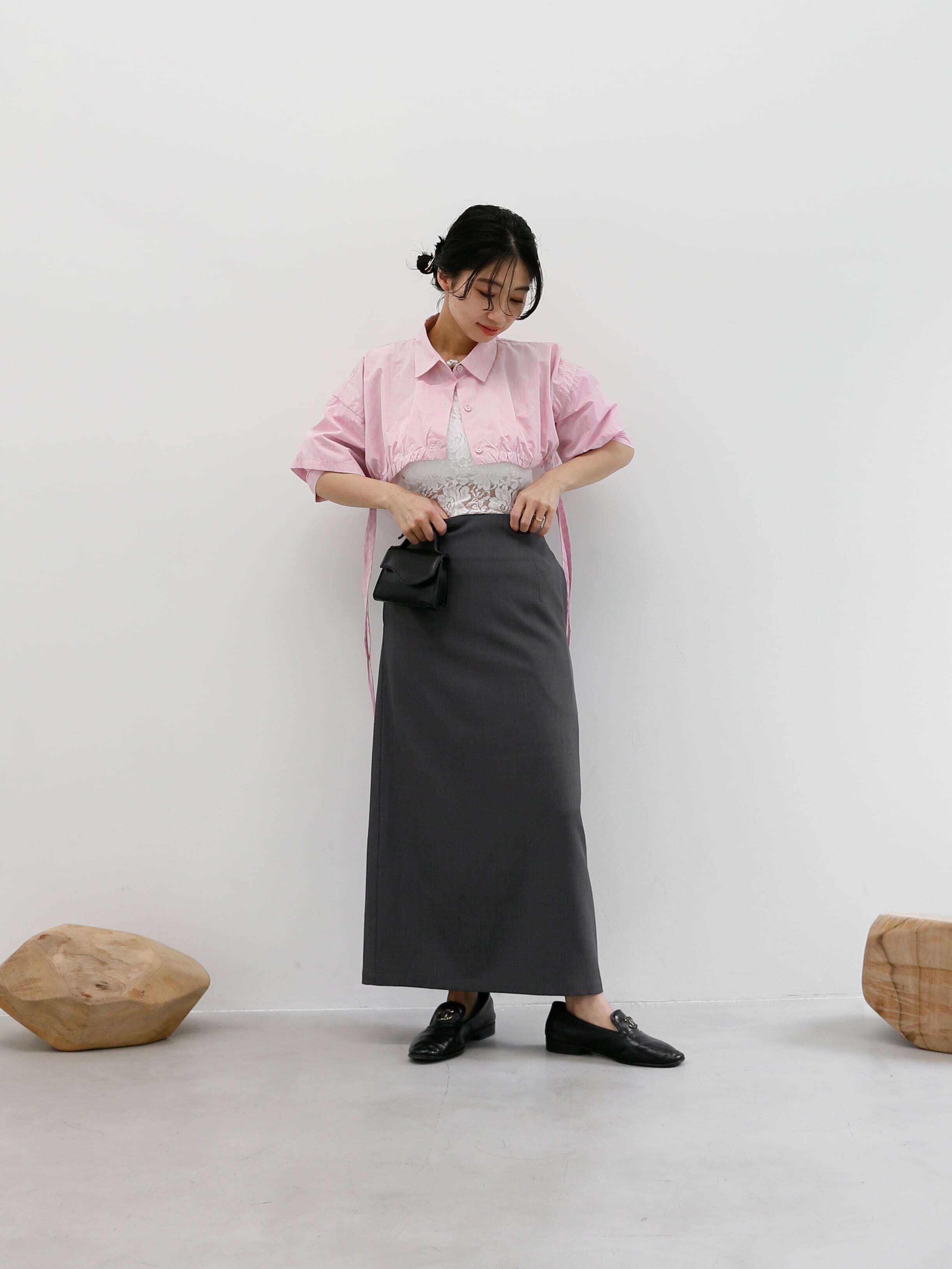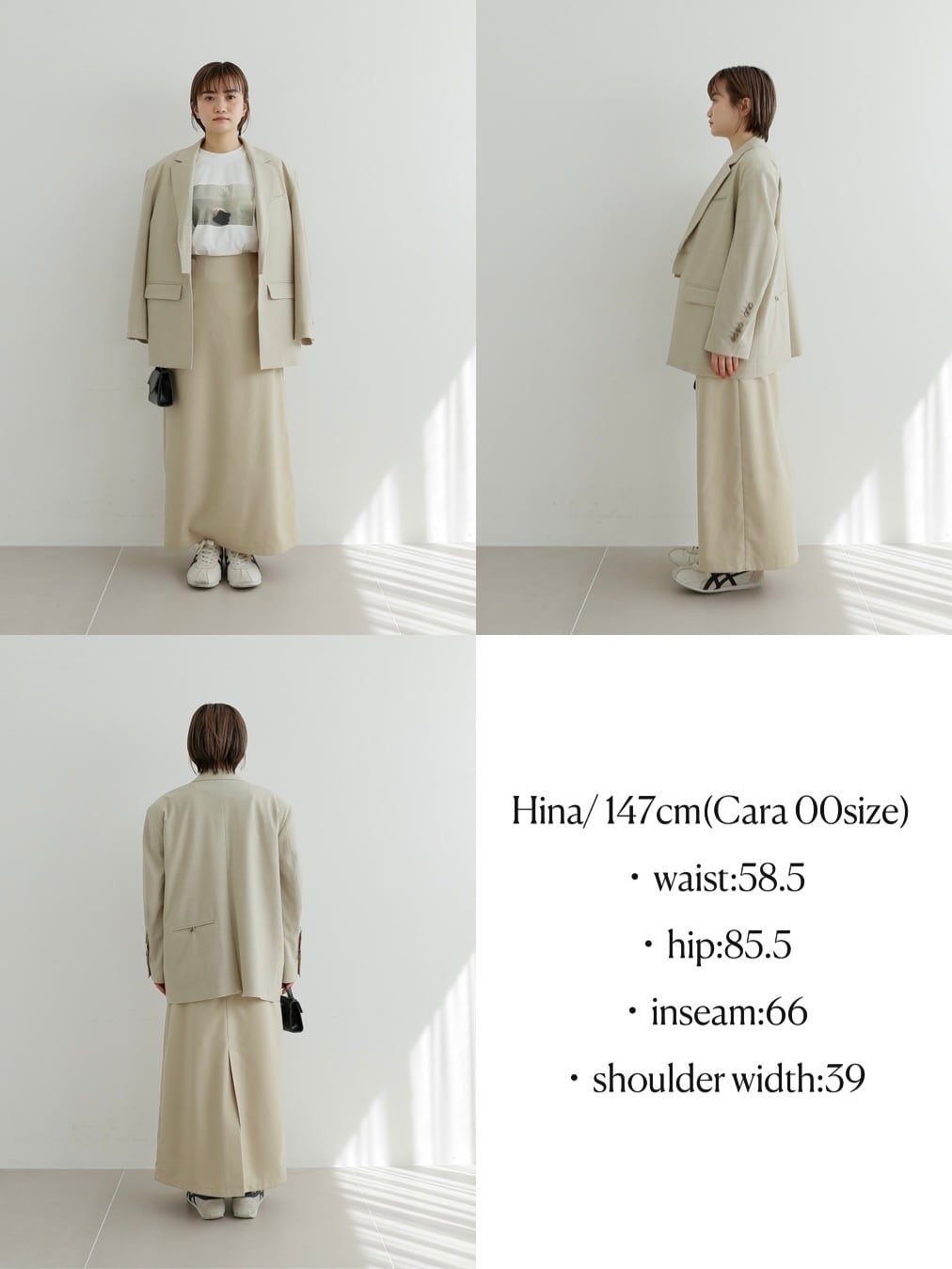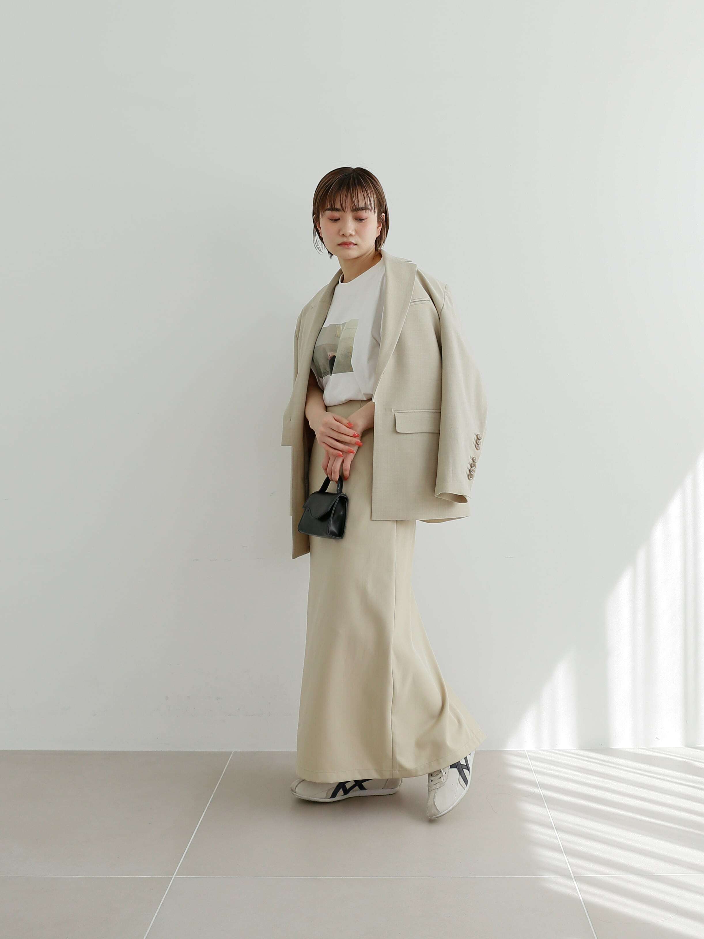 ストンとした長めのIラインは女性らしさの中にルーズなムードを引き寄せます