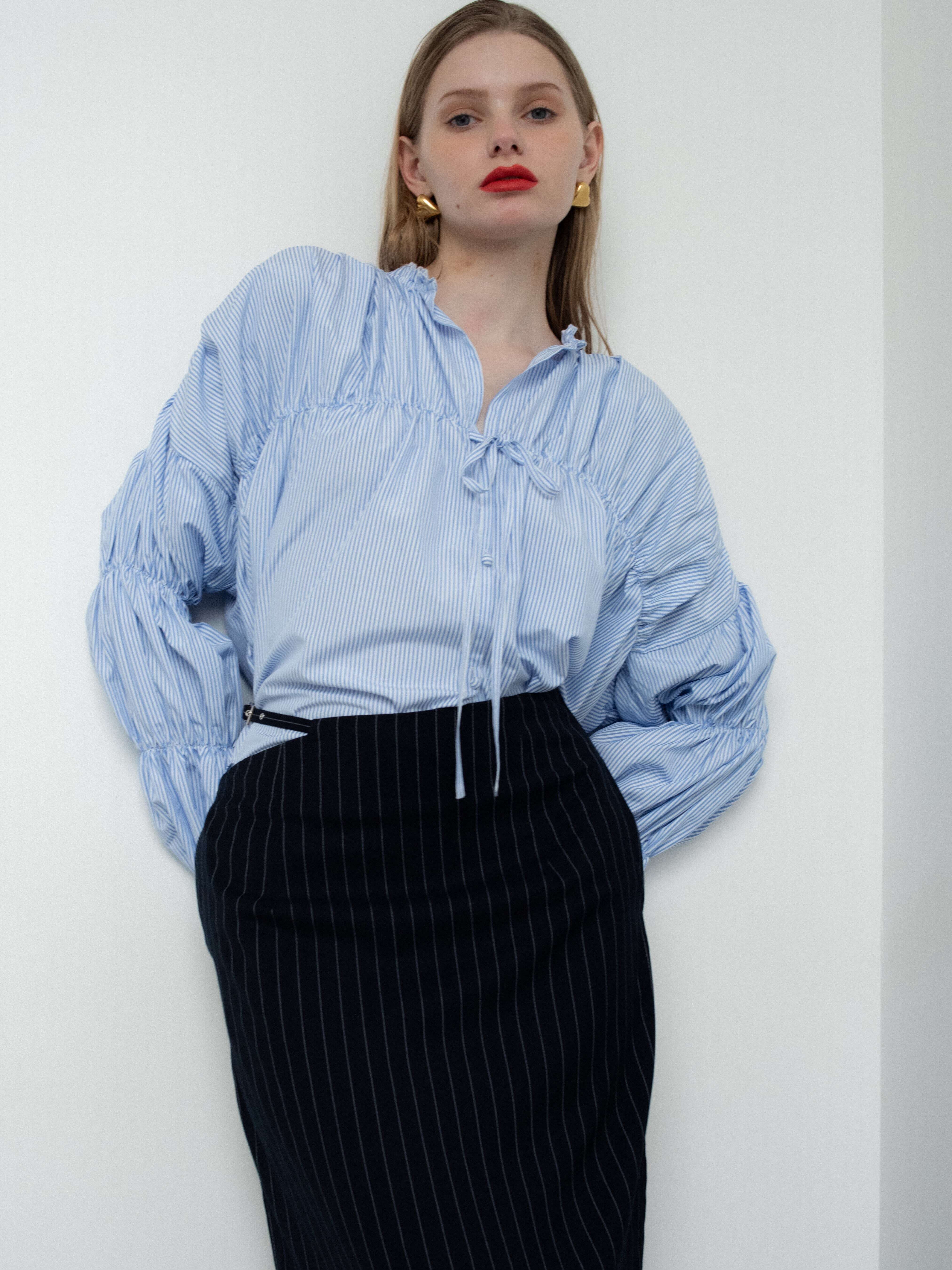 ・stripe-navy:黒のピンストライプより、モードになりにくいため、どなたでも挑戦していただきやすいカラー。