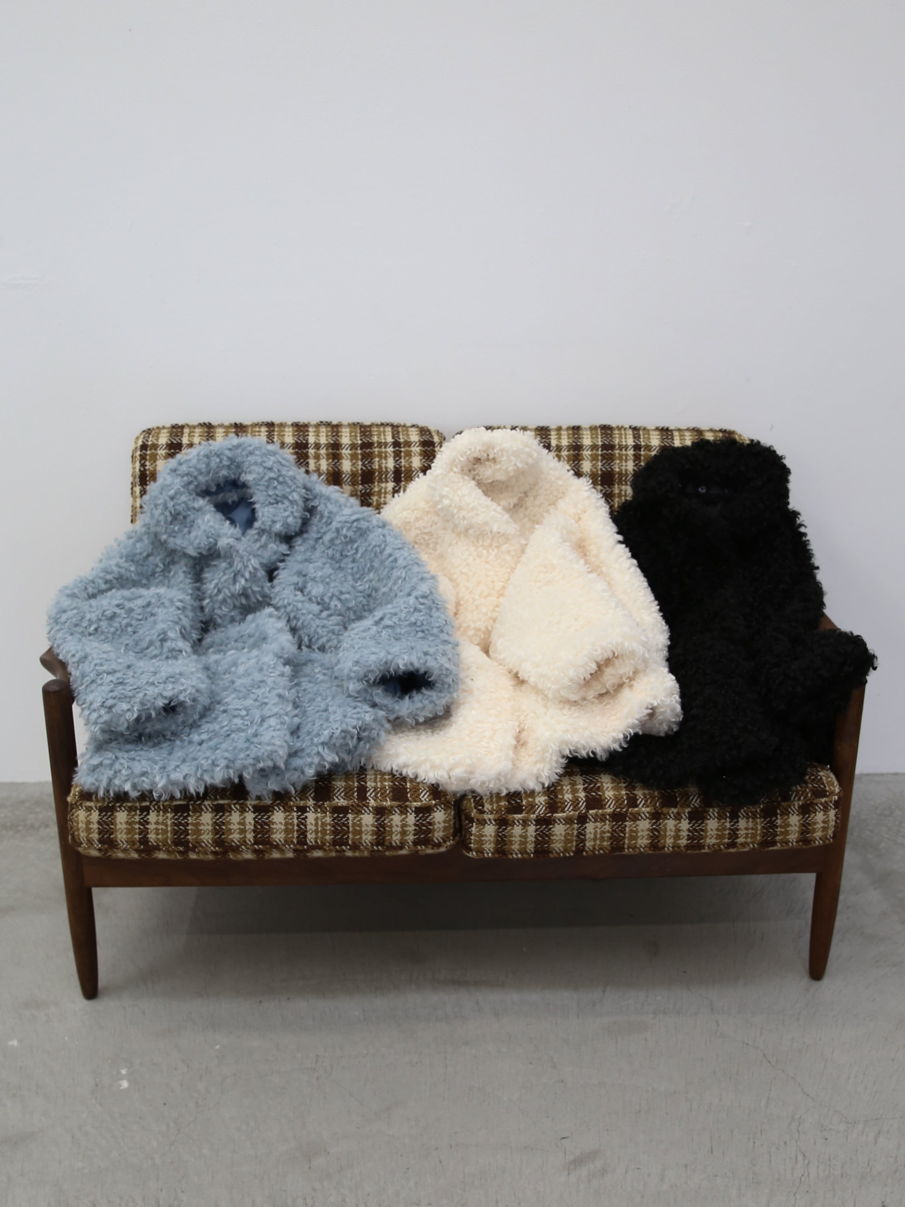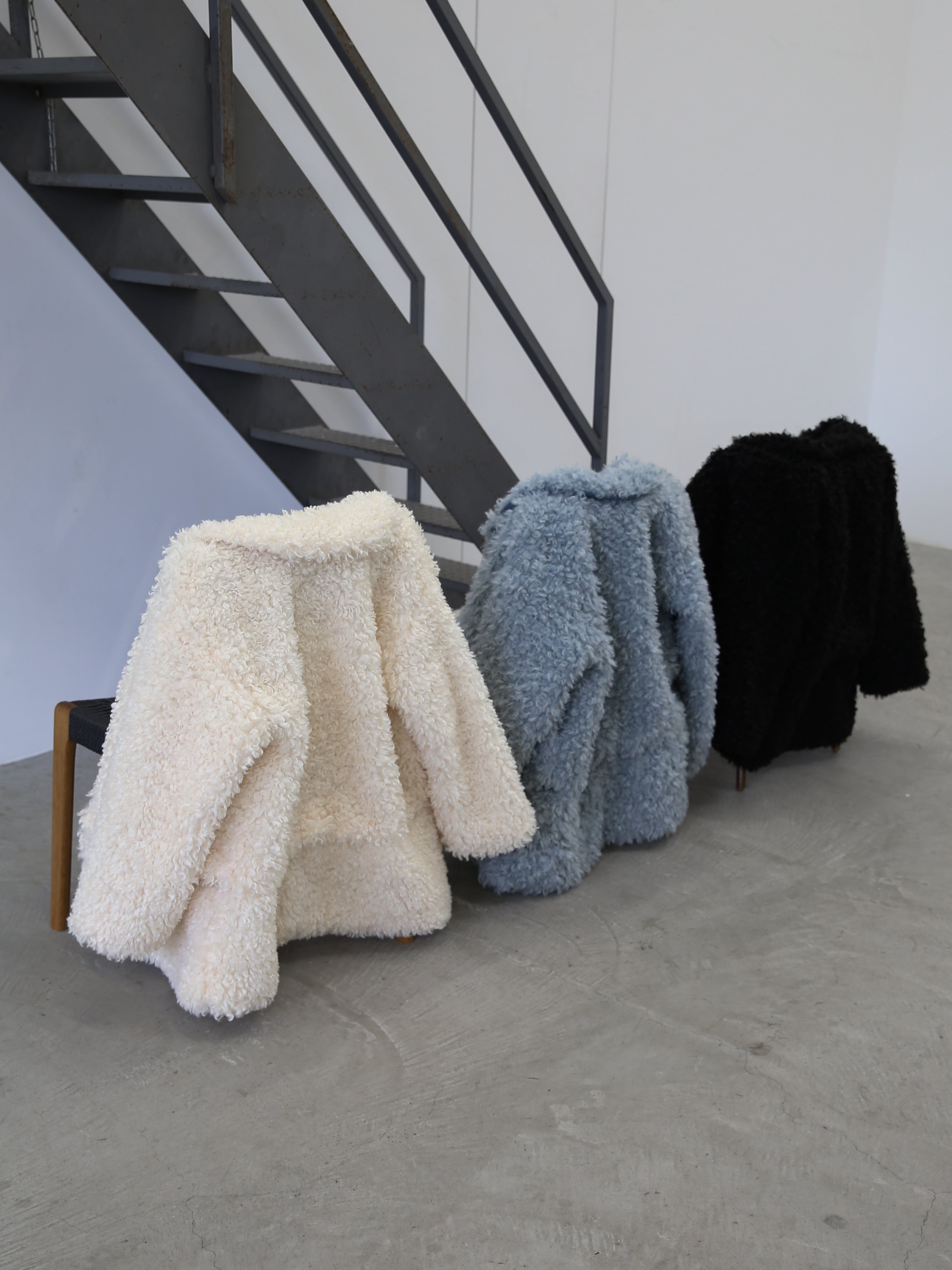 ・blue:グレイッシュなスモーキーブルー。可愛さがありながらも甘さを抑えたニュアンスカラーだから、カラーアウター初心者の方にも取り入れやすく、いつものデニムやモノトーンコーデにも自然と溶け込みます。