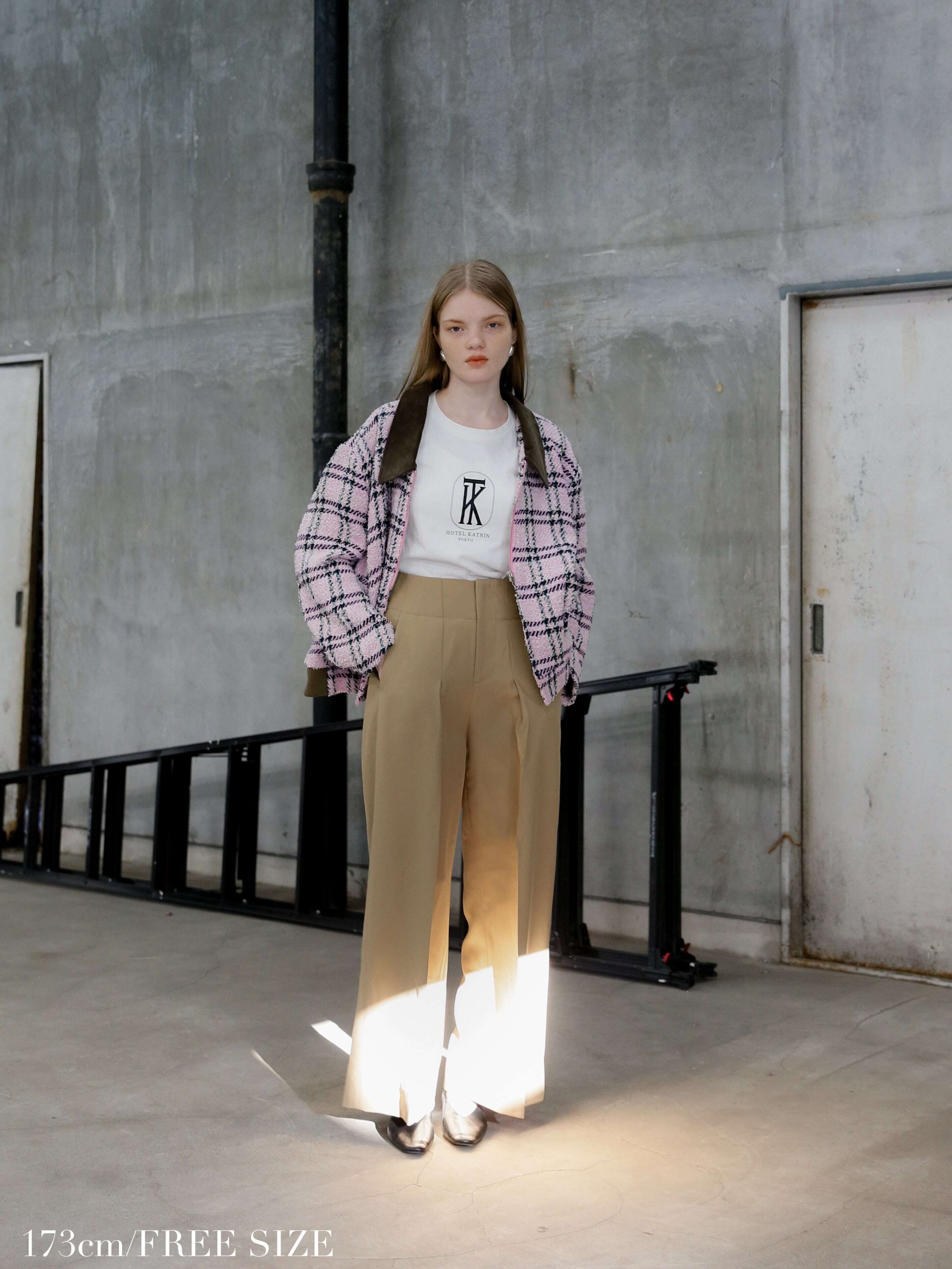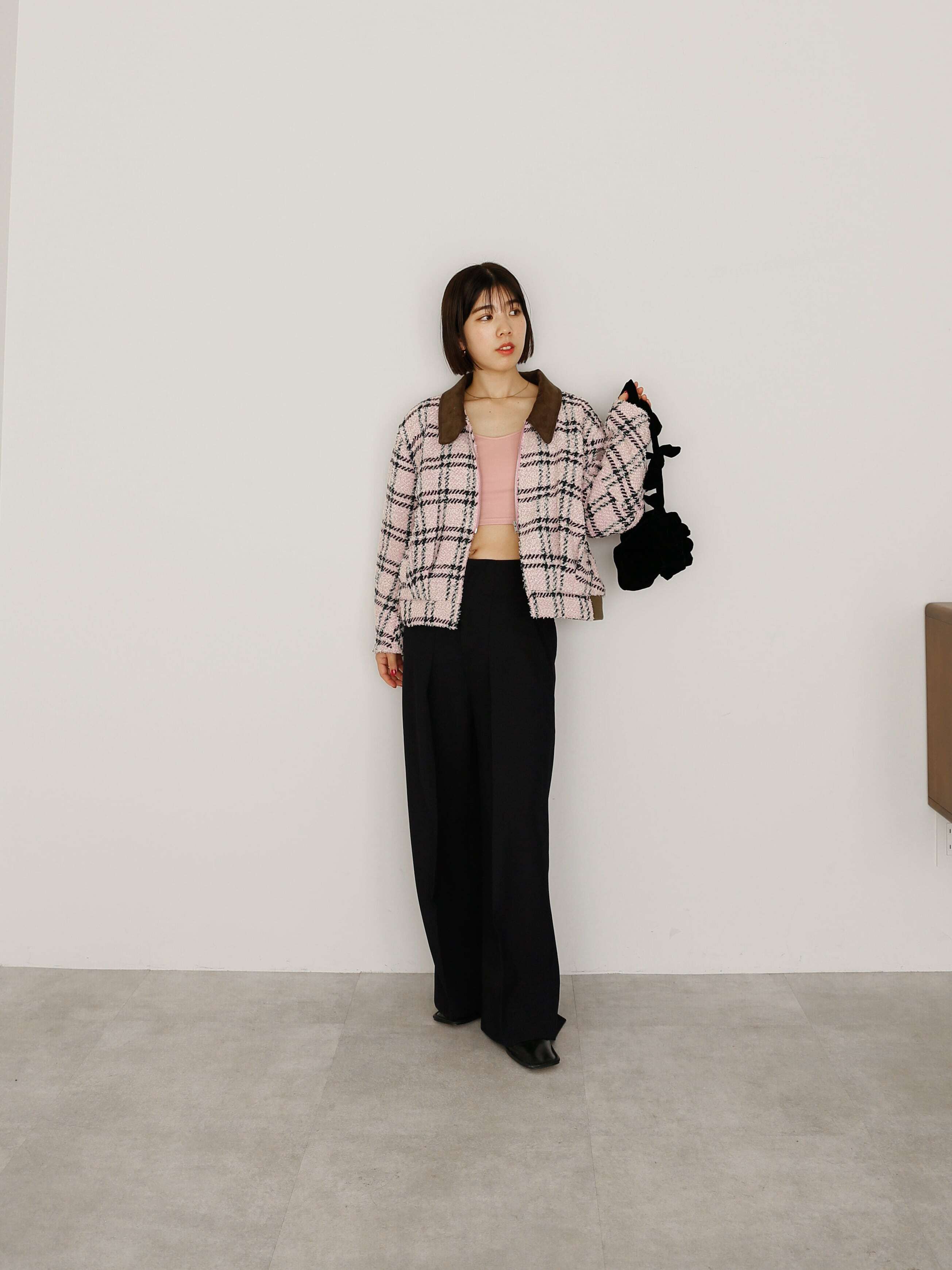 ・pink:甘い印象のpinkも衿とリブのカーキに近いブラウンが締めることで大人な印象に。可愛いさの中にある“おじさん”likeなニュアンスがお洒落です。