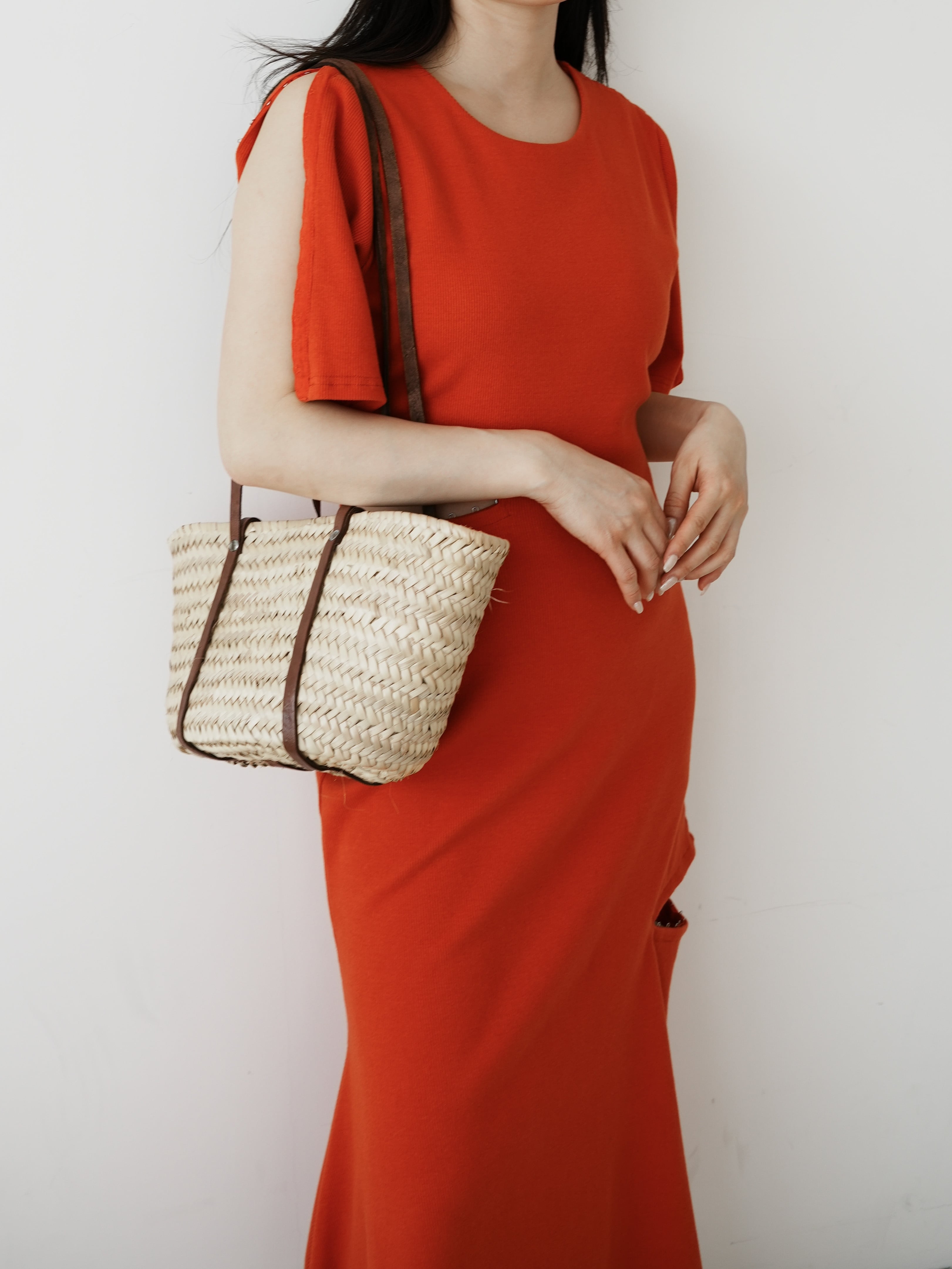 ・tomato:オレンジ味もある少し落ち着いたトーンのレッド。熟れたトマトのような夏らしいこの色みも、シルエットの綺麗なワンピースに載せることで一気に大人顔。小物もカラーを選んで思い切り夏を楽しむのも◎