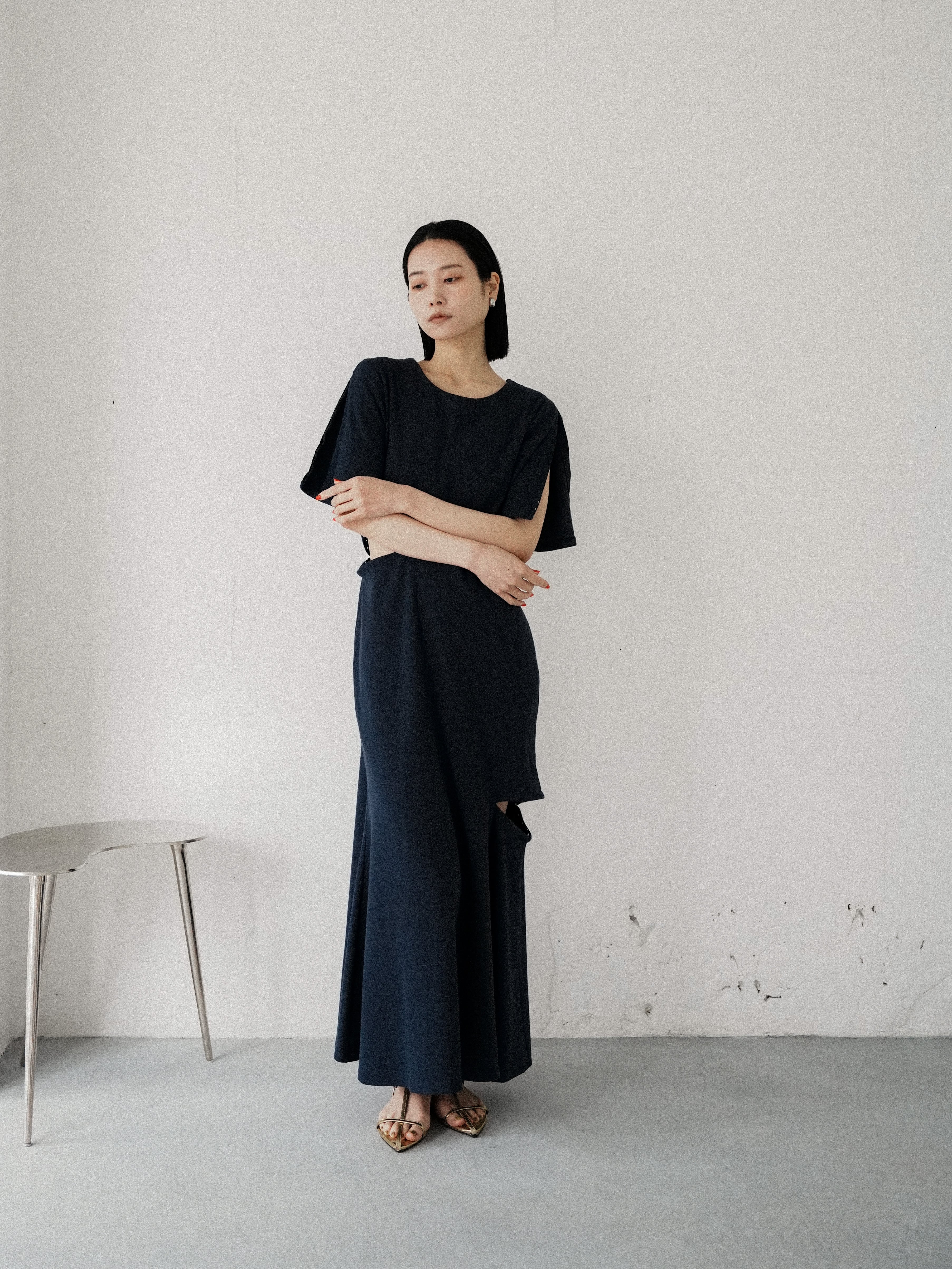 ・navy:小物合わせ次第で、カジュアルからキレイ目までいかようにも。濃紺のロングワンピースも適度な肌見せで軽やかに着られます。