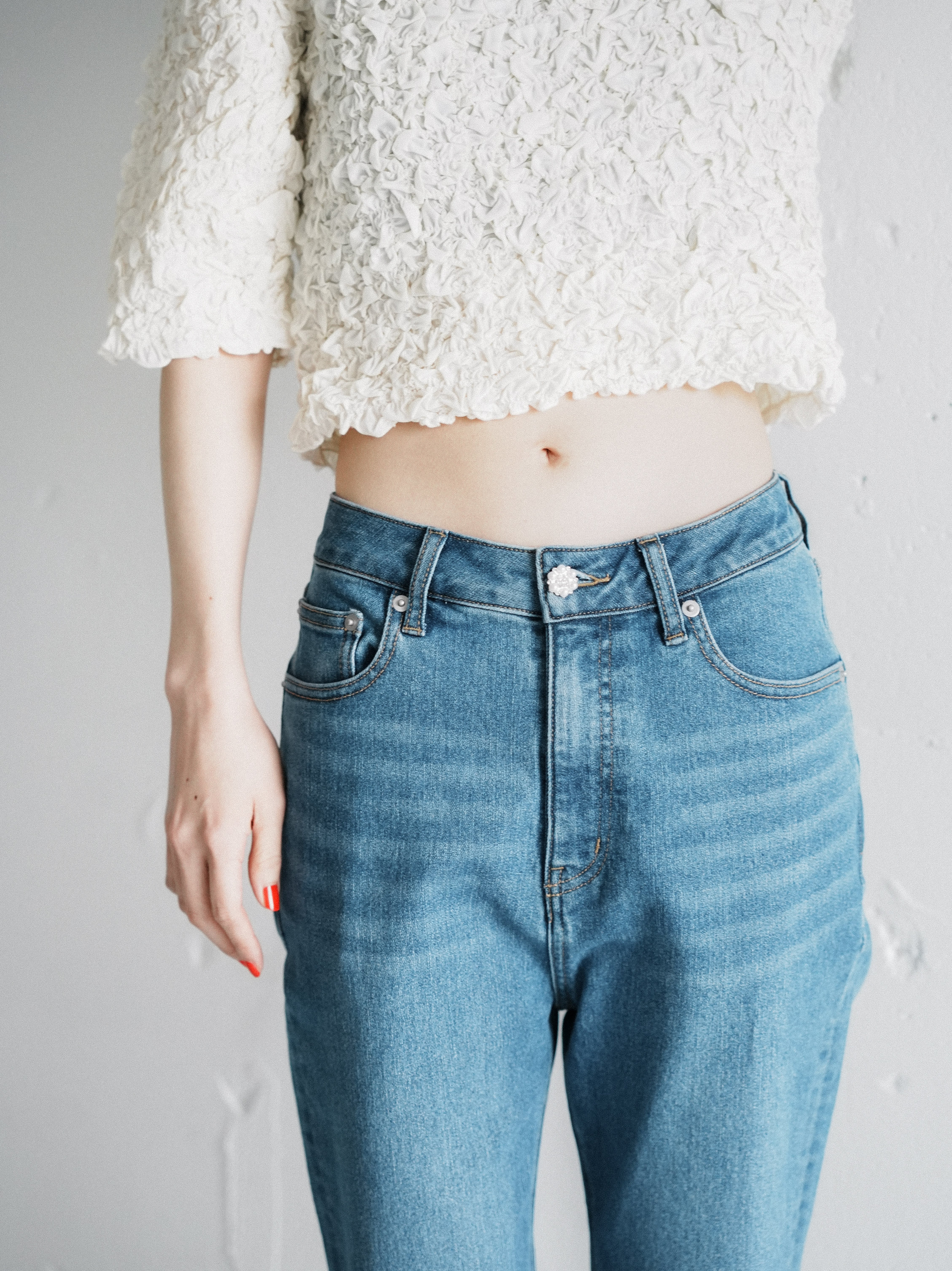 bijou button capri denim