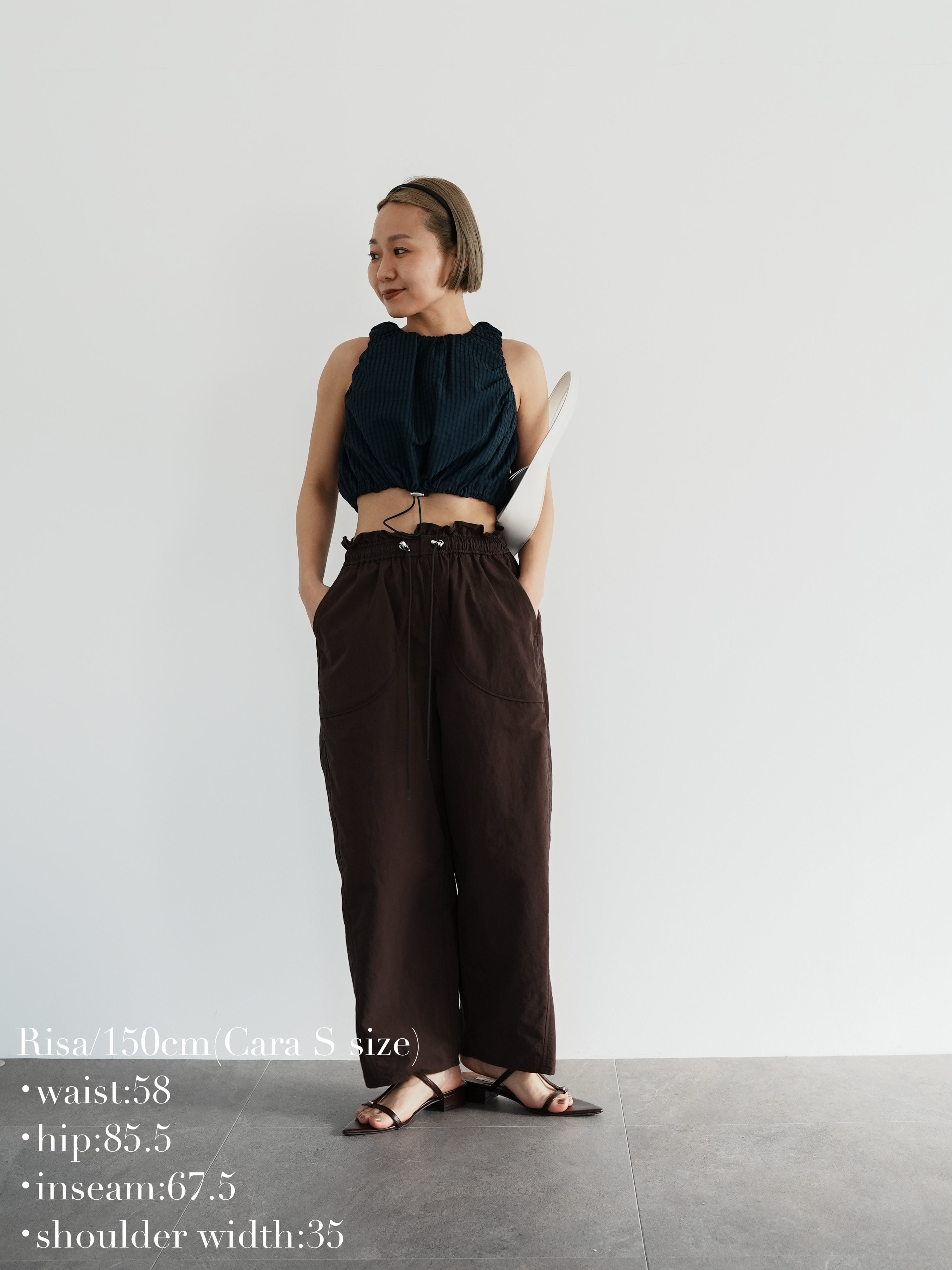 ※ウエストゴム仕様のため、最大97cmまで伸びます