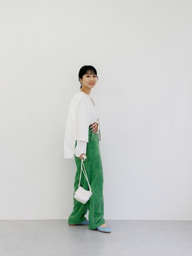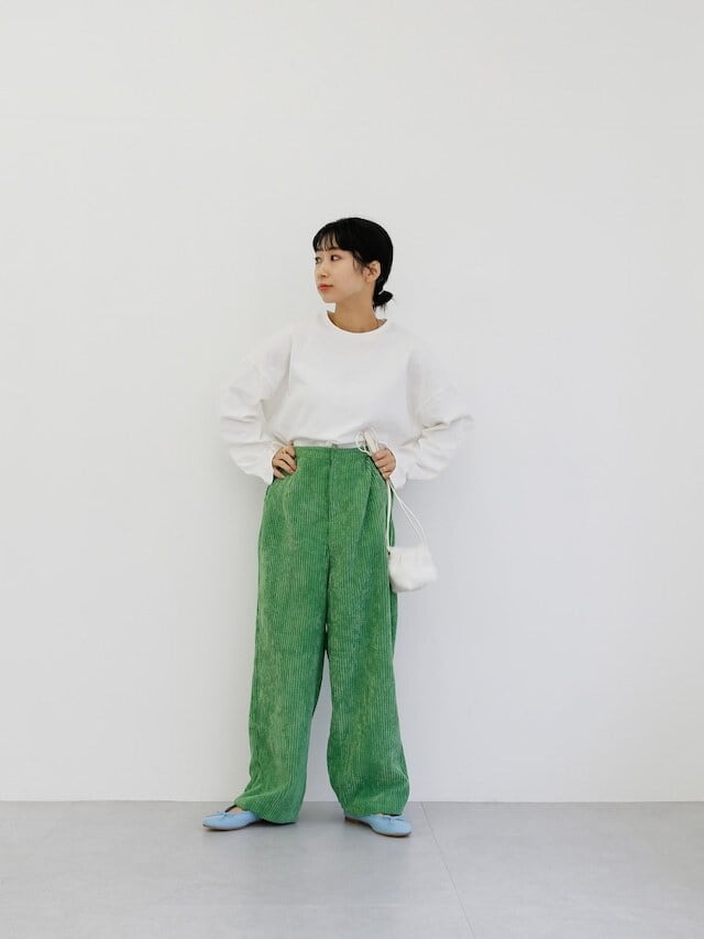 コーデユロイのもつ柔らかさが、普段は挑戦しないようなカラーも