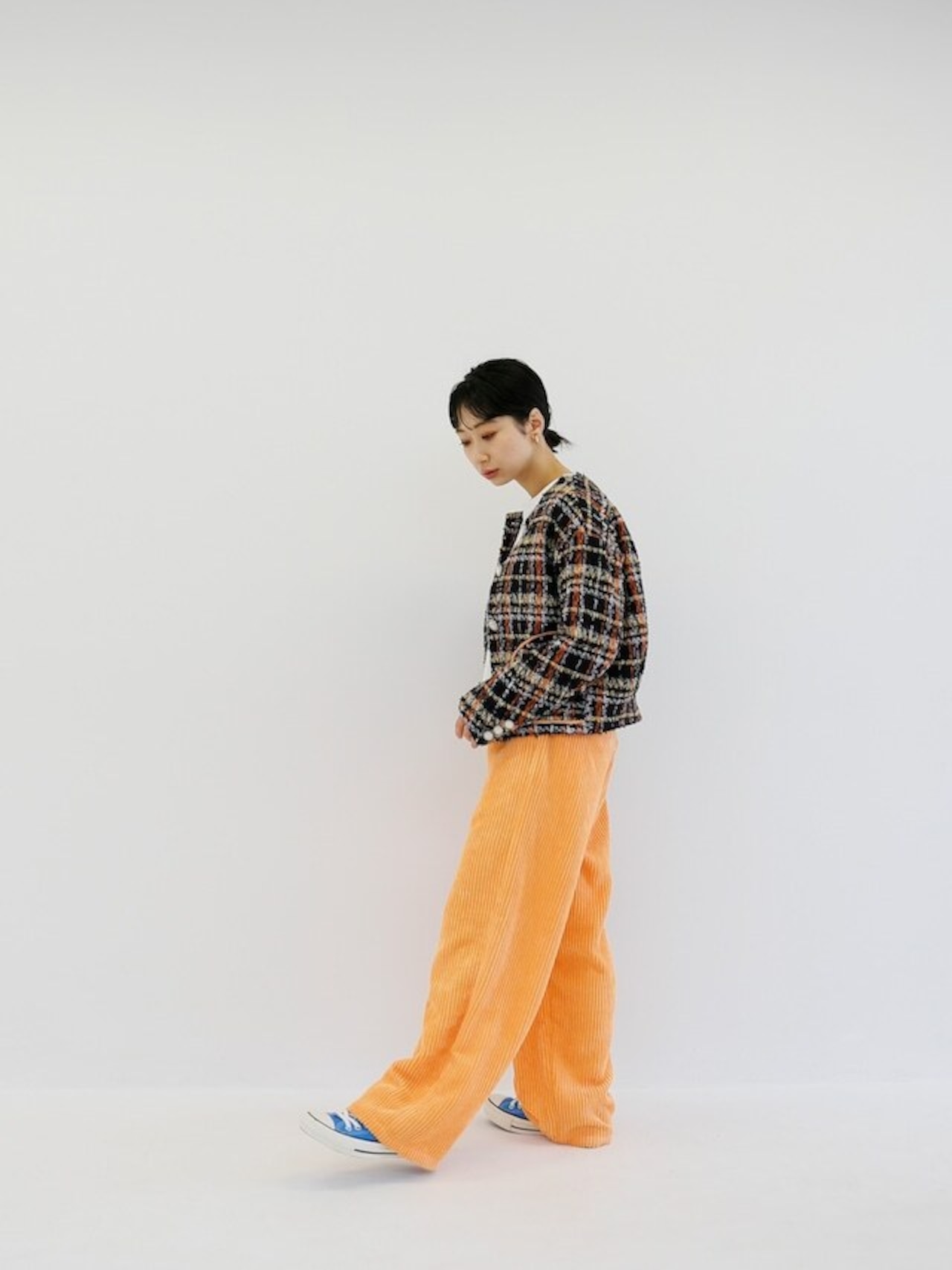 ・orange sorbet:名前の通りソルベのような爽やかさと白っぽさを持つorange sorbet。ヴィヴィッドな中にもある柔らかさのあるカラーはコーデュロイならでは。プレイフルな冬のスタイリングを楽しんで