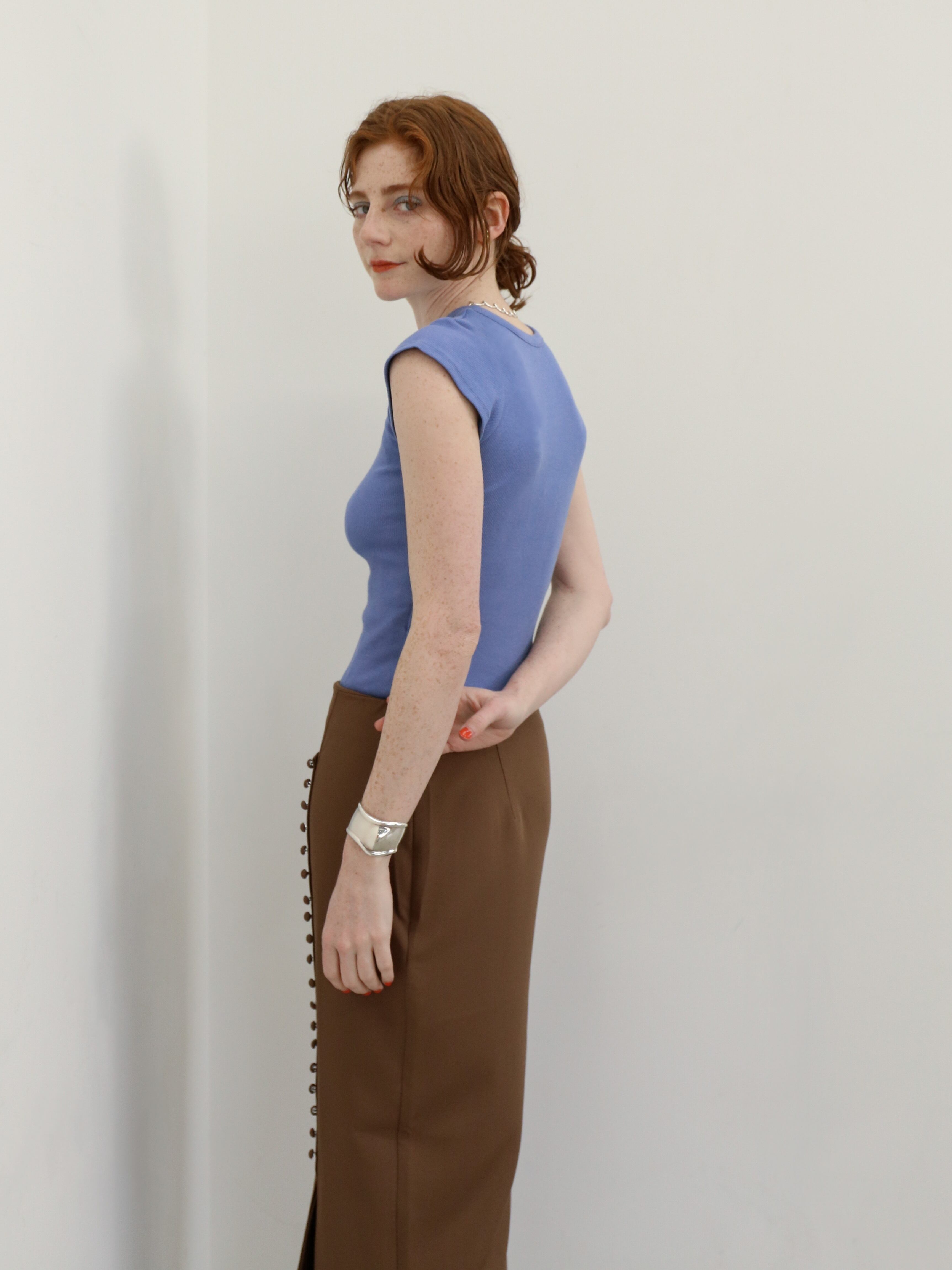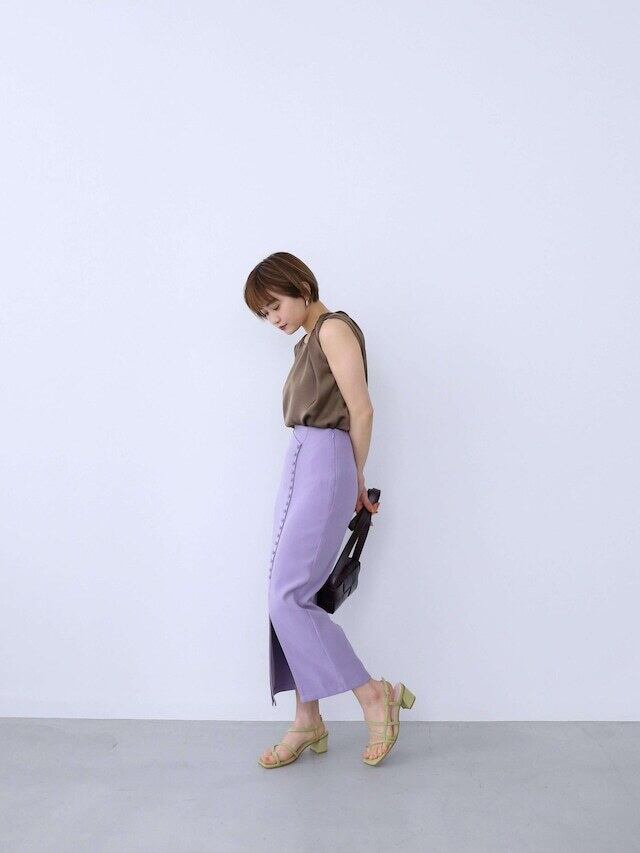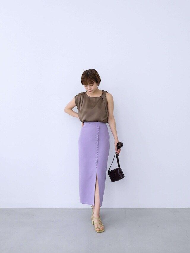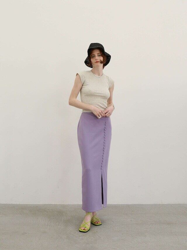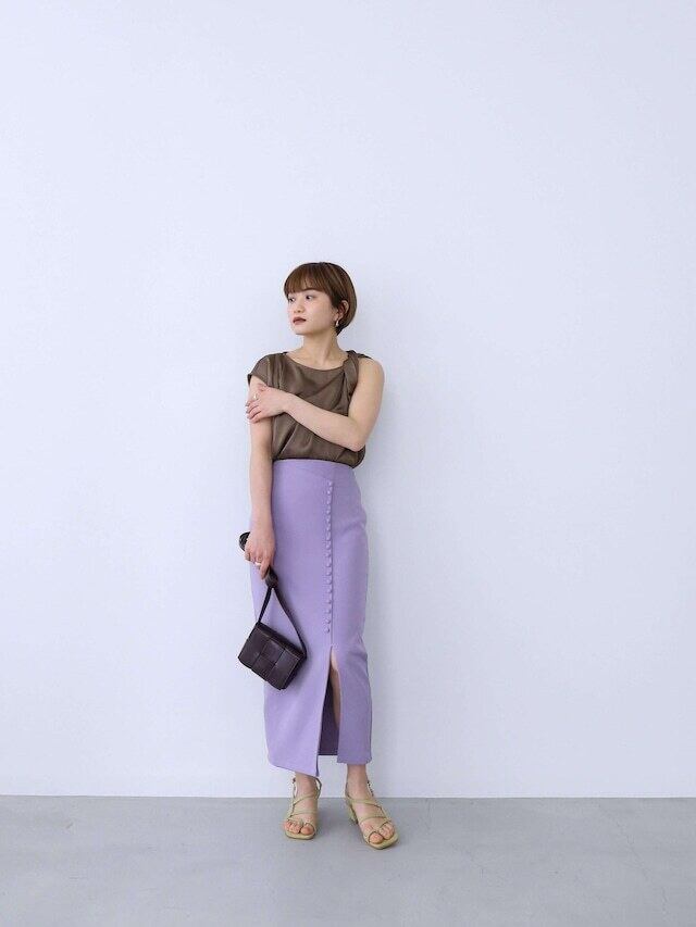 ・purple:パステルでもビビッドでもない絶妙パープルで、甘さも地味さも無いお洒落カラー◎ベーシックカラーでこのスカートを主役に据えるのは勿論、色遊びもしやすいトーンだからぜひ春夏らしいカラーコーデも楽しんで