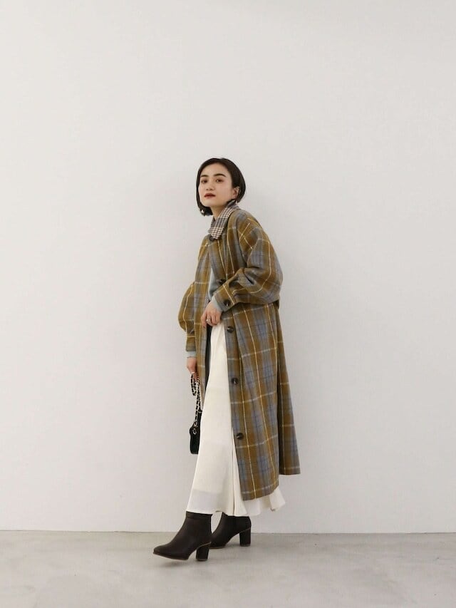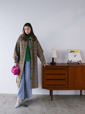 実は色味を合わせたチェックを選んでいるので意外とどんな着こなしに羽織ってもしっくり◎