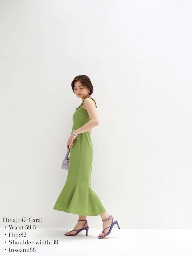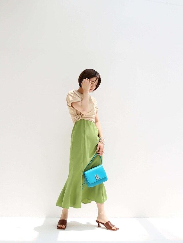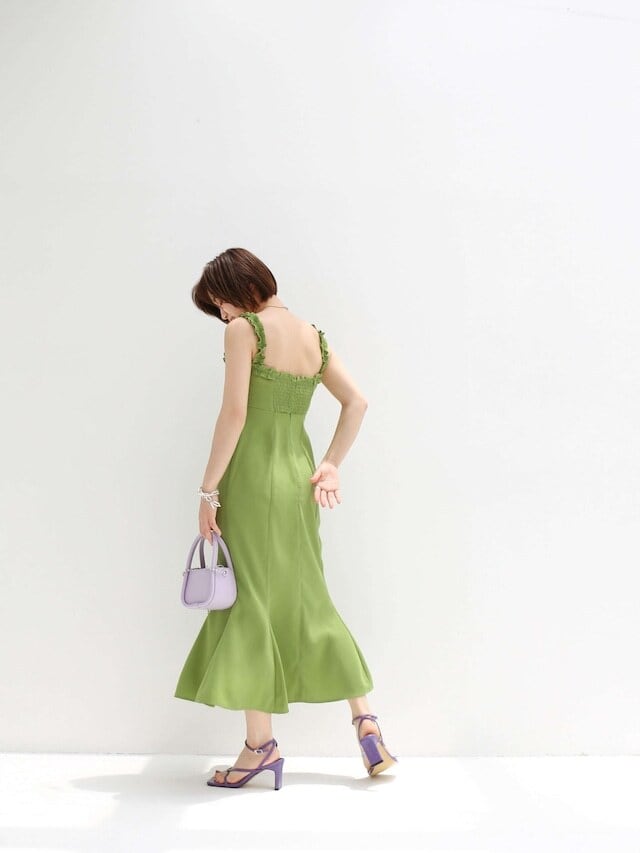 裾にかけて綺麗なマーメイドラインを作りながらも腰まわりはタイトすぎないIラインを感じさせるシルエット