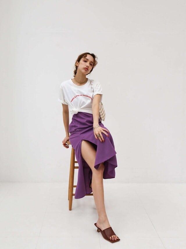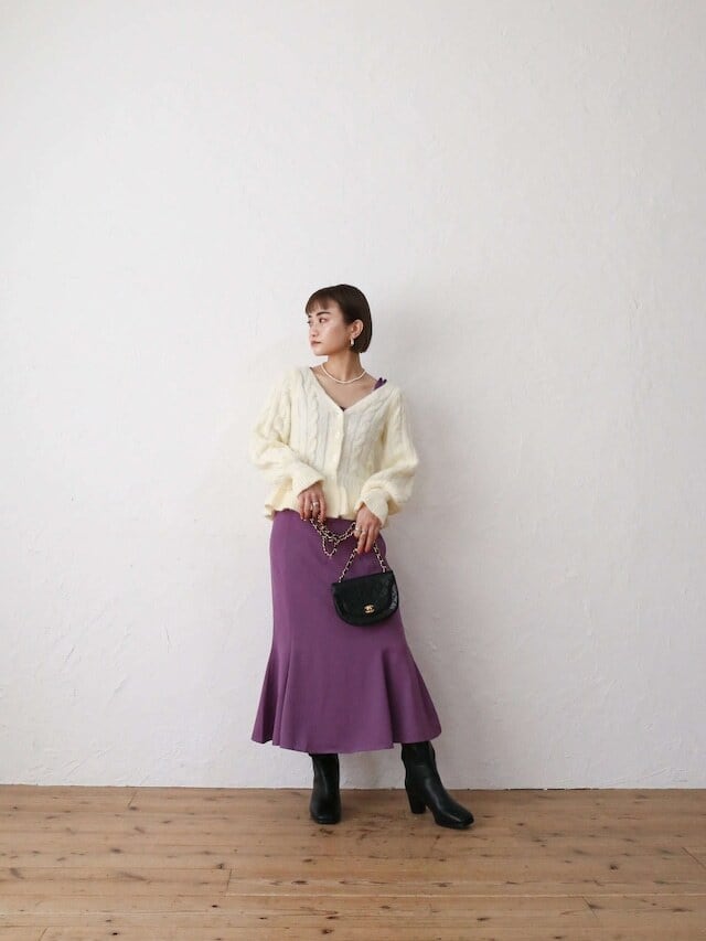 ・purple:肌の透明感が上がるような特別感のあるpurple。秋冬はvintageのホワイトニットなどとのレイヤードも楽しみなカラー