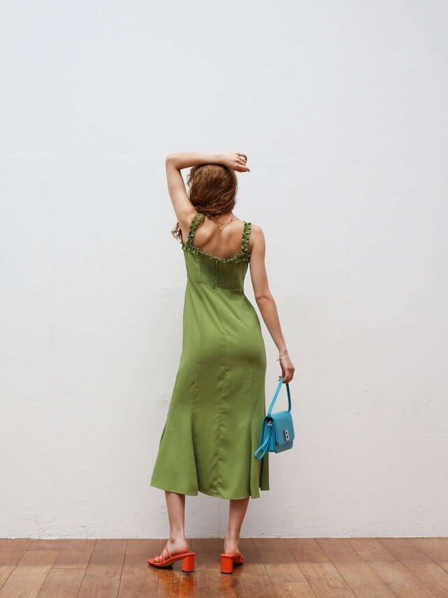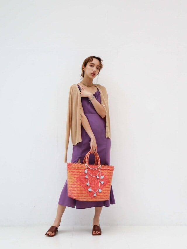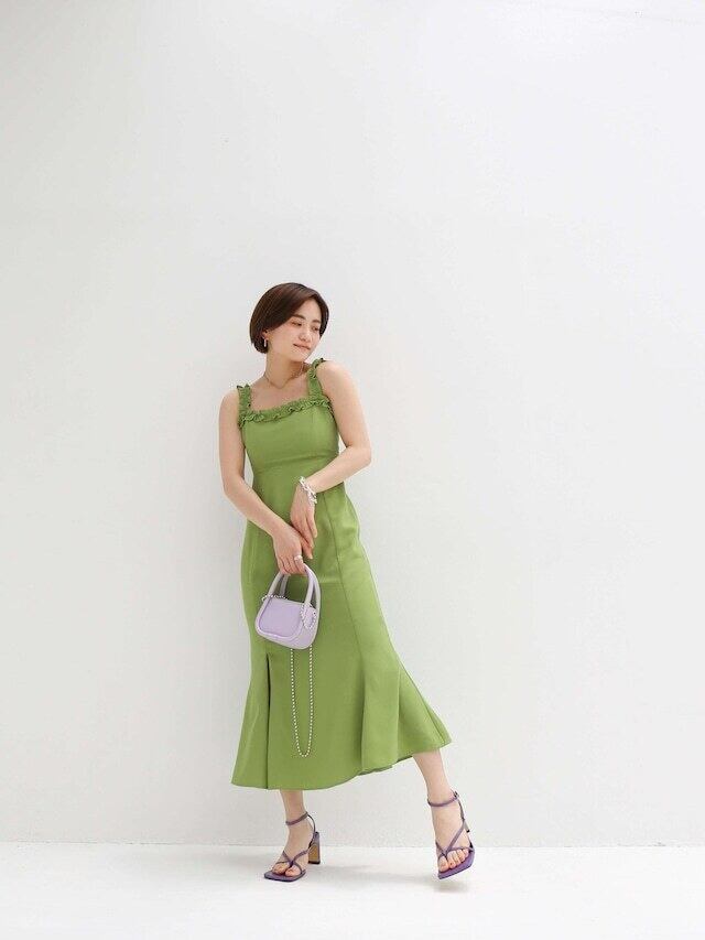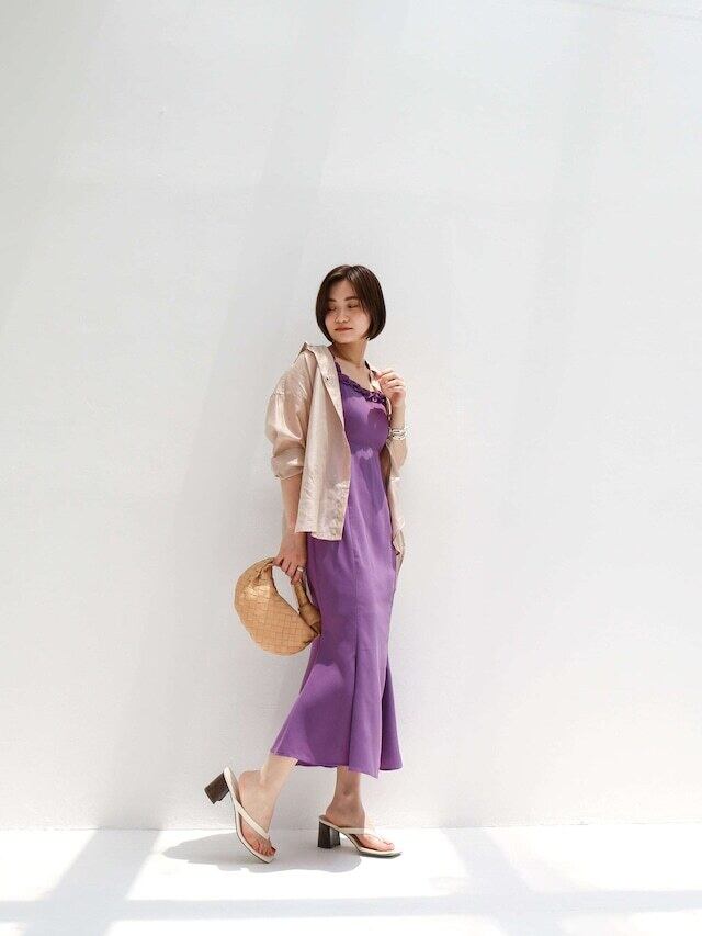 細いストラップのキャミソールドレスよりも肌を隠す面積が大きいので一枚でも挑戦しやすいです