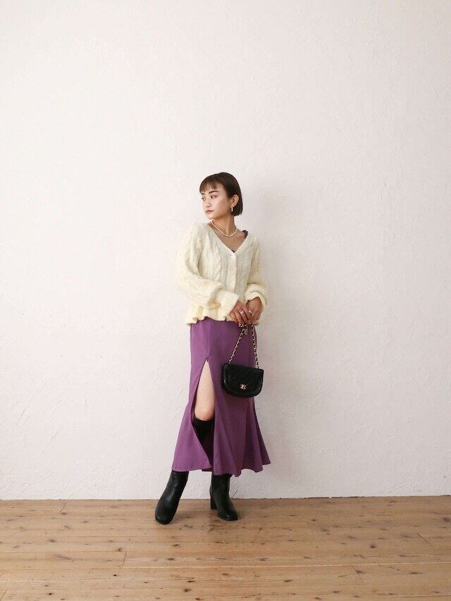 スリットを深めに開けてロングブーツと合わせるようなスタイリングもおすすめです