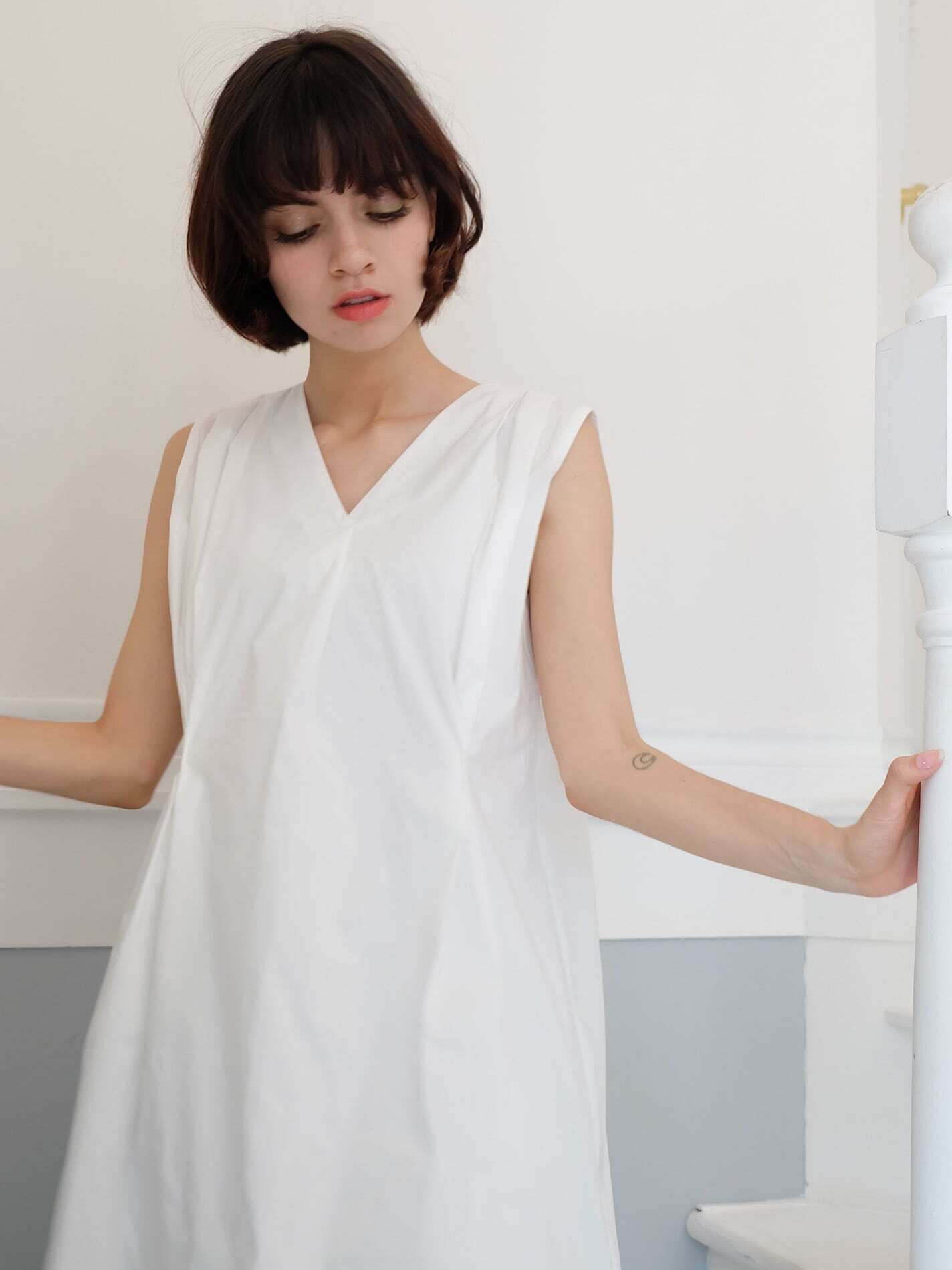 開きすぎていないVネックは鎖骨を綺麗に魅せてくれる強い味方
