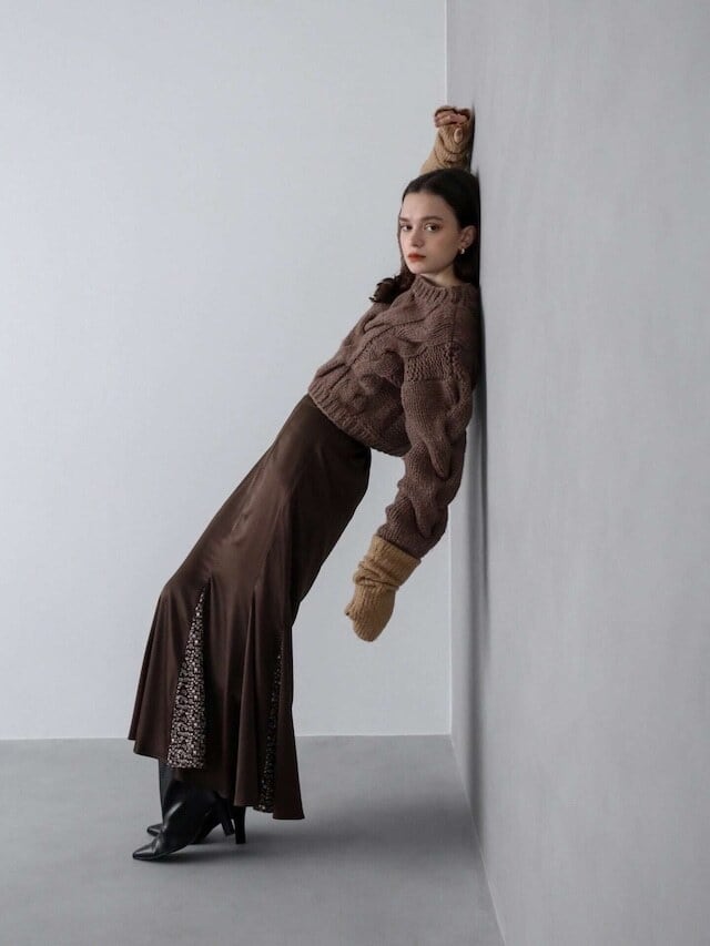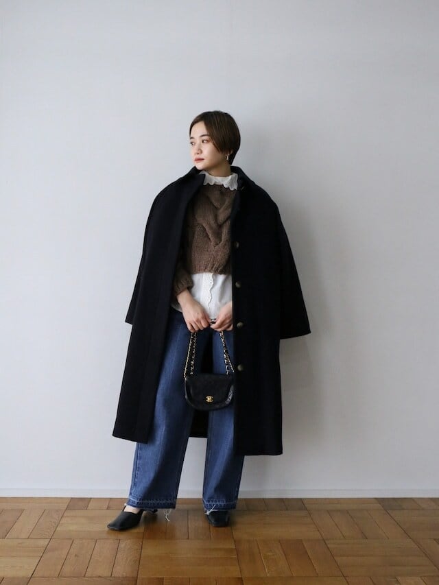 甘くなりがちなケーブルニットを程よく辛口で着られる絶妙さが嬉しい