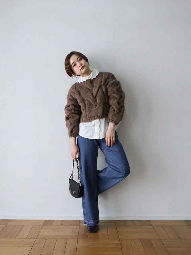 編み柄と肉厚ニットの可愛さに頼って、デザイン自体はシンプルに