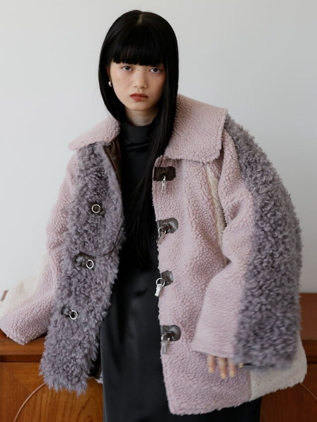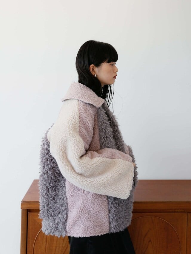 [サンプル品]reversible patchwork mouton coat