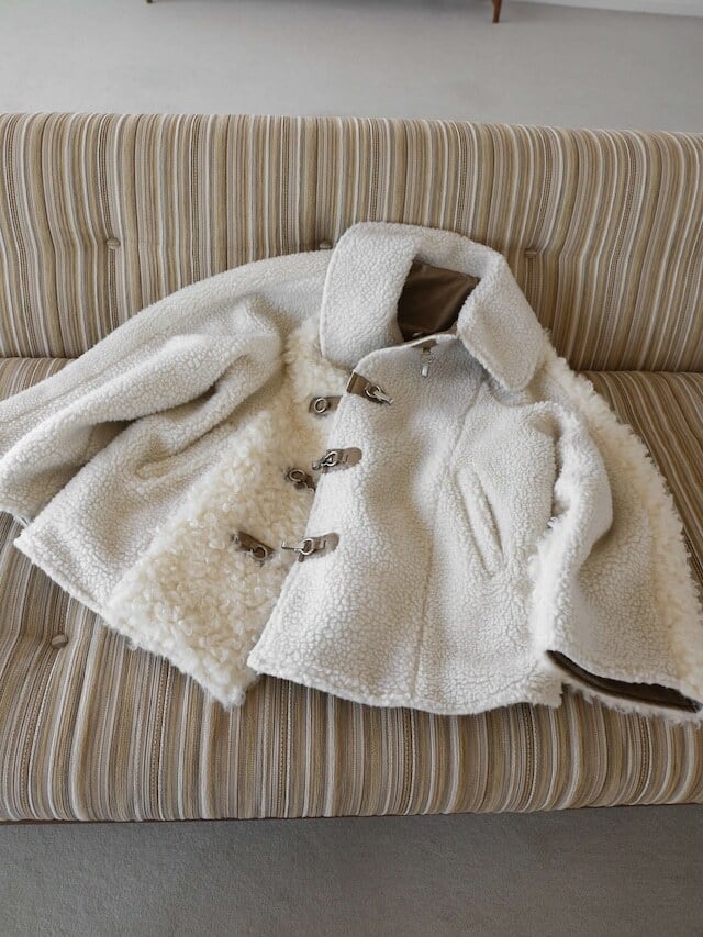 ボアでも着膨れせずに着られるのはパッチワークのおかげ