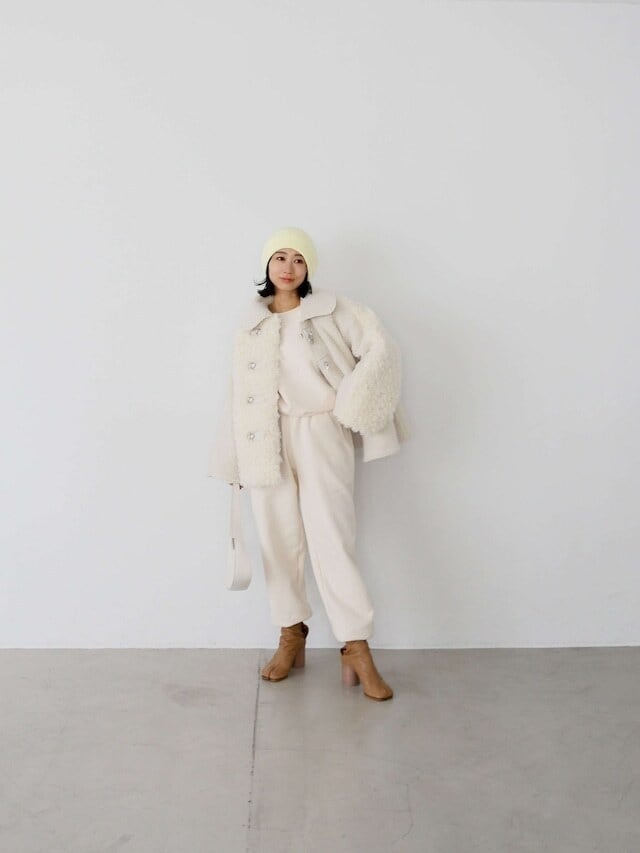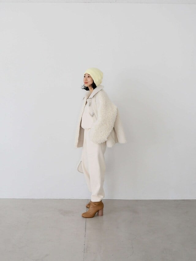 ・ivory:冬のアイボリーワントーンをとことん楽しみたいならivoryがおすすめ。グレイッシュなアイボリーのレザーのおかげでアイボリーも可愛くなりすぎず、モードな印象で着られます。