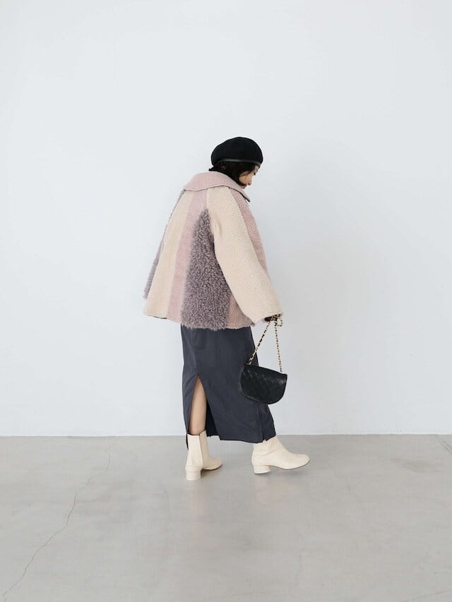 ・beige:ミルクティーのようなbeigeとアイボリーのボアのコントラストが心ときめく組み合わせ。デニムとの組み合わせが抜群のため、カジュアルなスタイリングがお好みの方にも◎