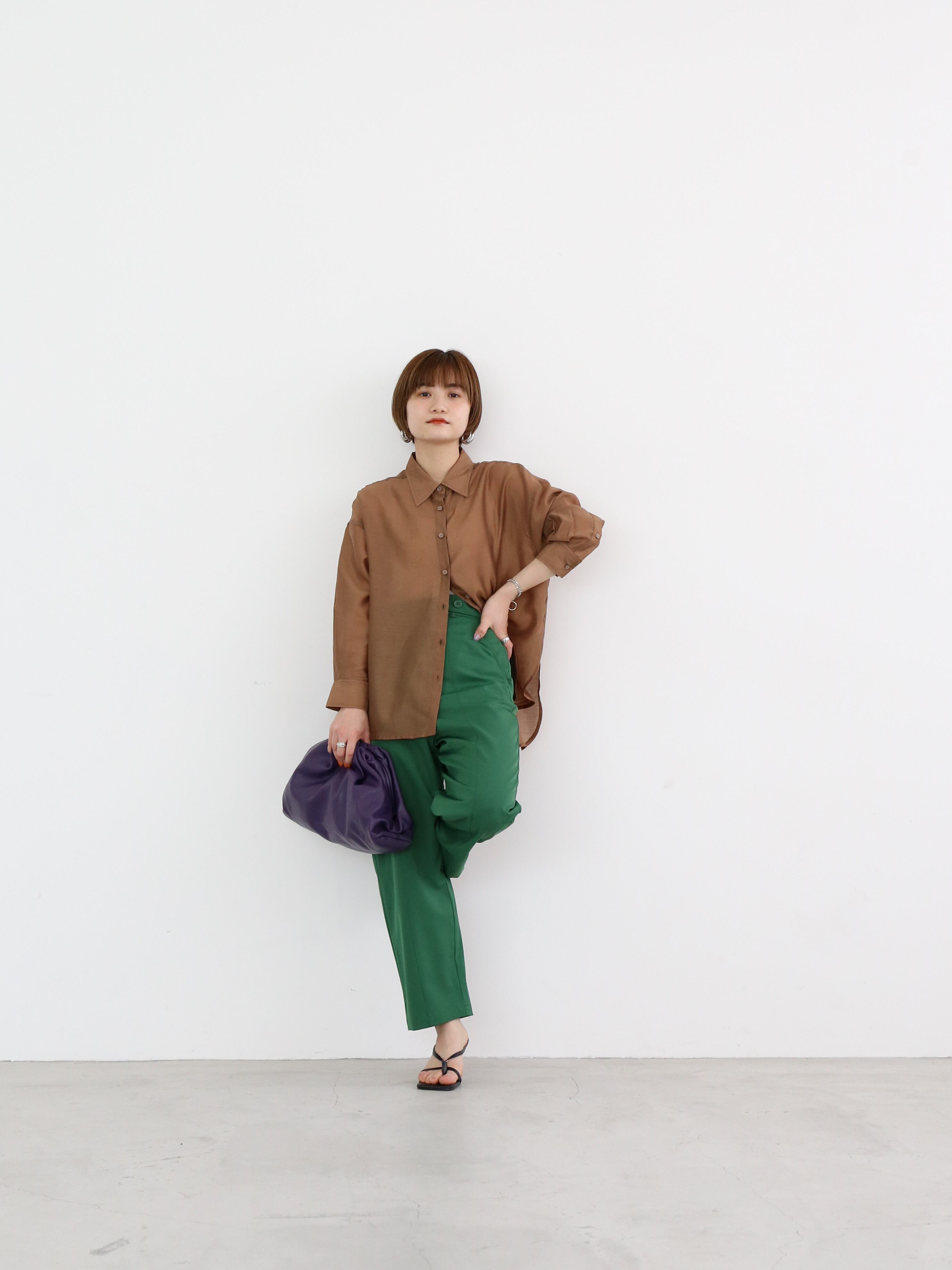 スラックスの品の良さと、カジュアルにも使えるパンツのデザインをさりげなくmixしているので、着こなし次第で幅広いスタイリングにフィット