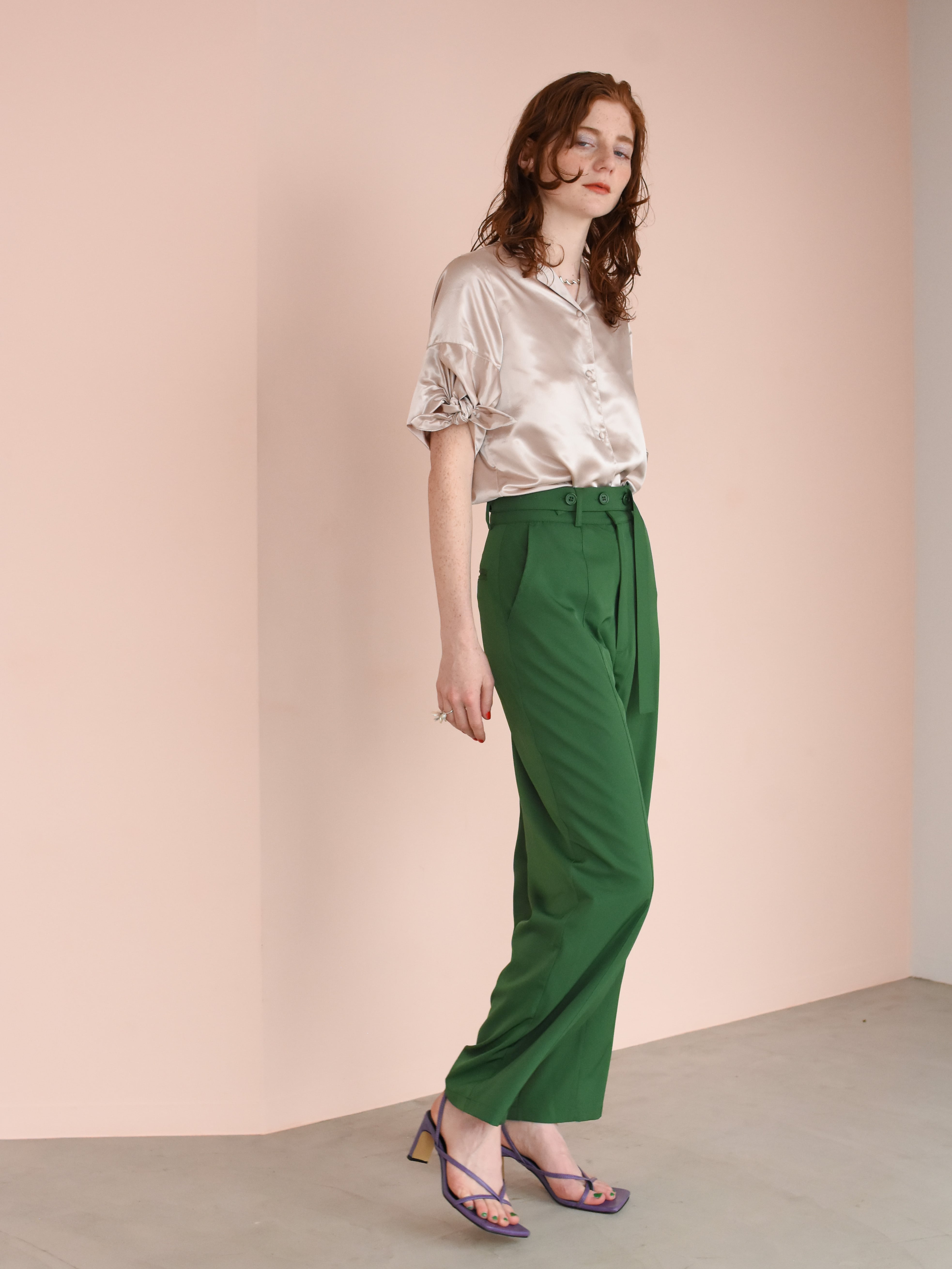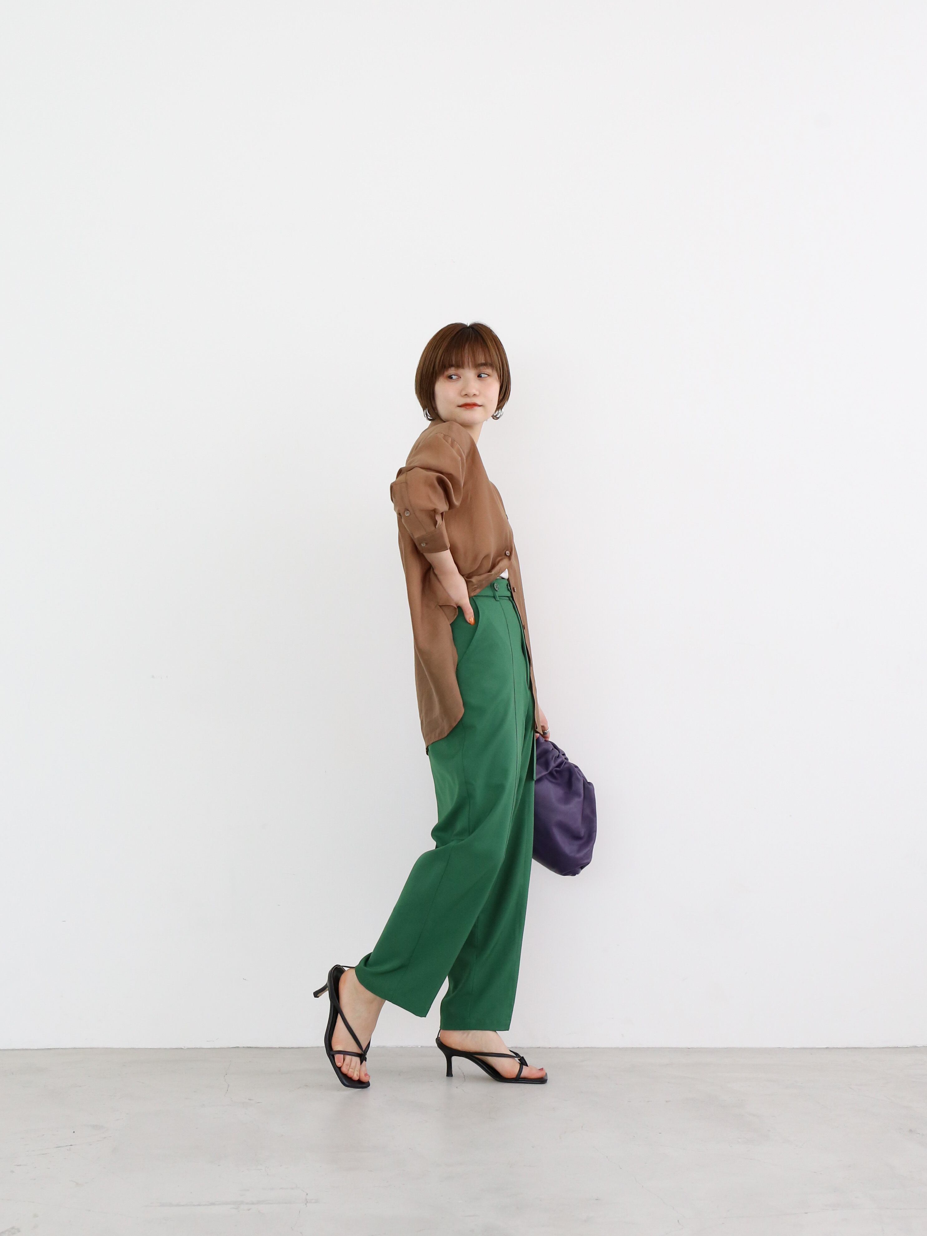 [B品]color pin tuck straight pants(green)
