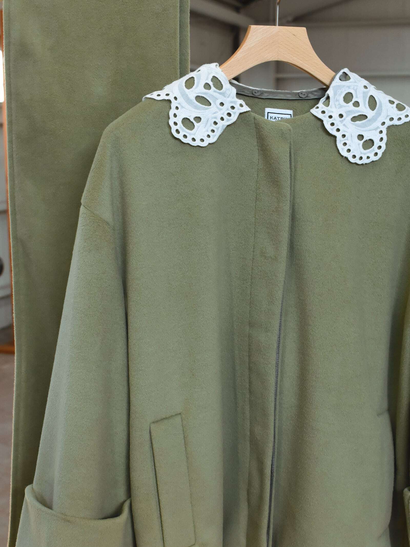 ・ivory:杢カラーでほどよくベージュも混ざっており、ニュアンスのあるivory。白系統でも表情があるからほどよい抜け感が出て、大人っぽくお召しいただけます。レース襟もさりげなく馴染むので、旬のデザインに初めてチャレンジしてみたい方にも