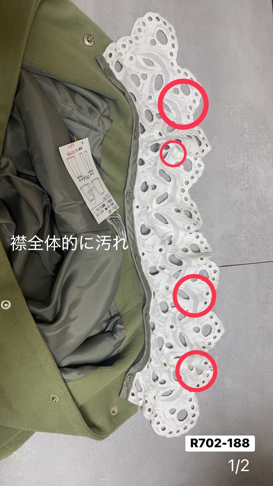 ・襟に数か所小さな汚れあり